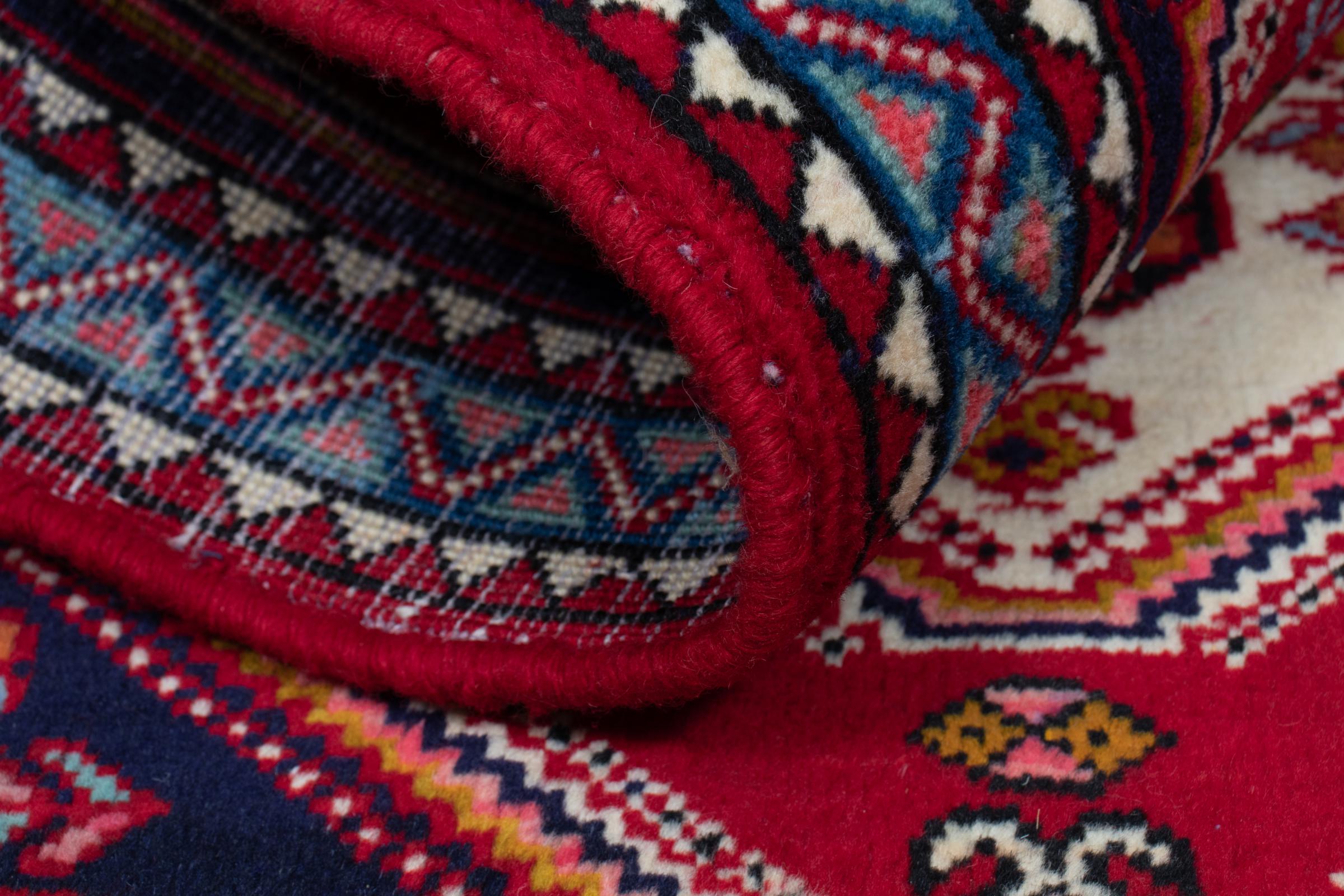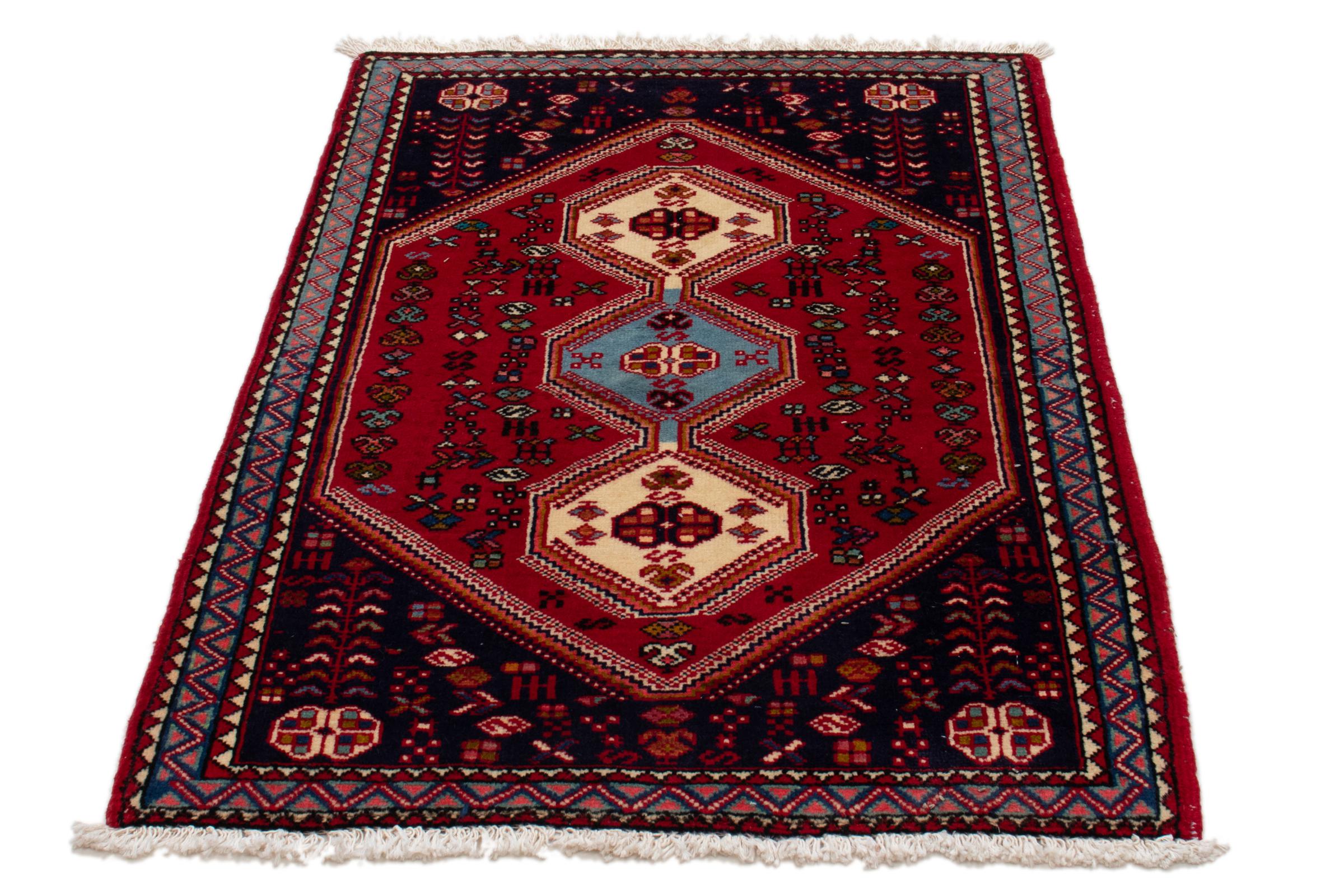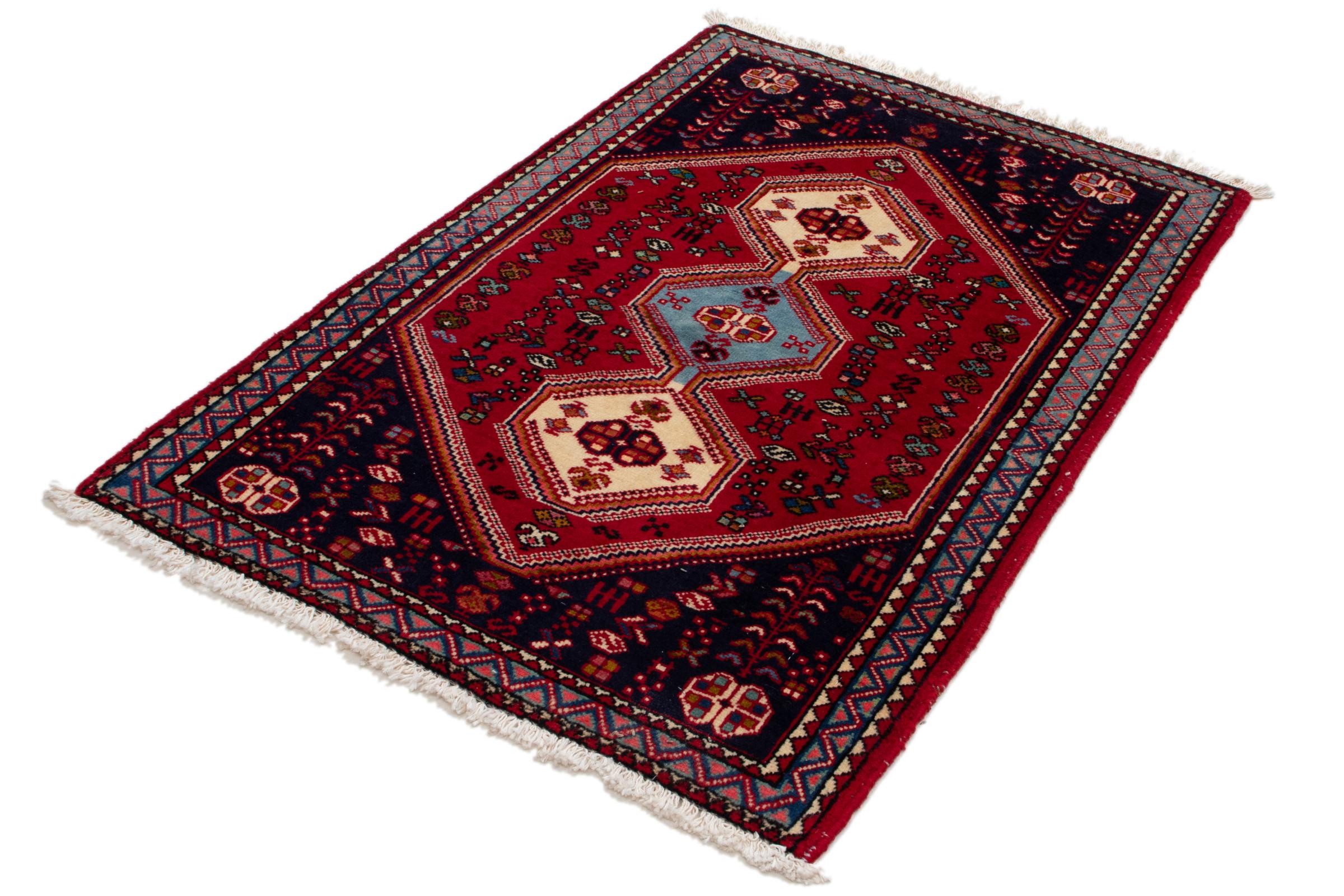Dieser Teppich gehört zu Dorf- und Nomadenteppichen aus dem Iran, ehemals Persien. Diese Art von Teppich wird in kleineren Städten und Dörfern von Hand in alter Tradition geknüpft. Auch Nomaden knüpfen noch Perserteppiche unter freiem Himmel. Die Teppiche werden ohne Vorlage und komplett aus dem Kopf geknüpft. Sie sind gekennzeichnet durch klassische Ornamente, die in geradlinigen und geometrischen Mustern angelegt sind. Dank ihrer kulturell-traditionellen Herkunft, haben diese Teppiche einen einzigartigen Charakter, der das alte Persien verkörpert.