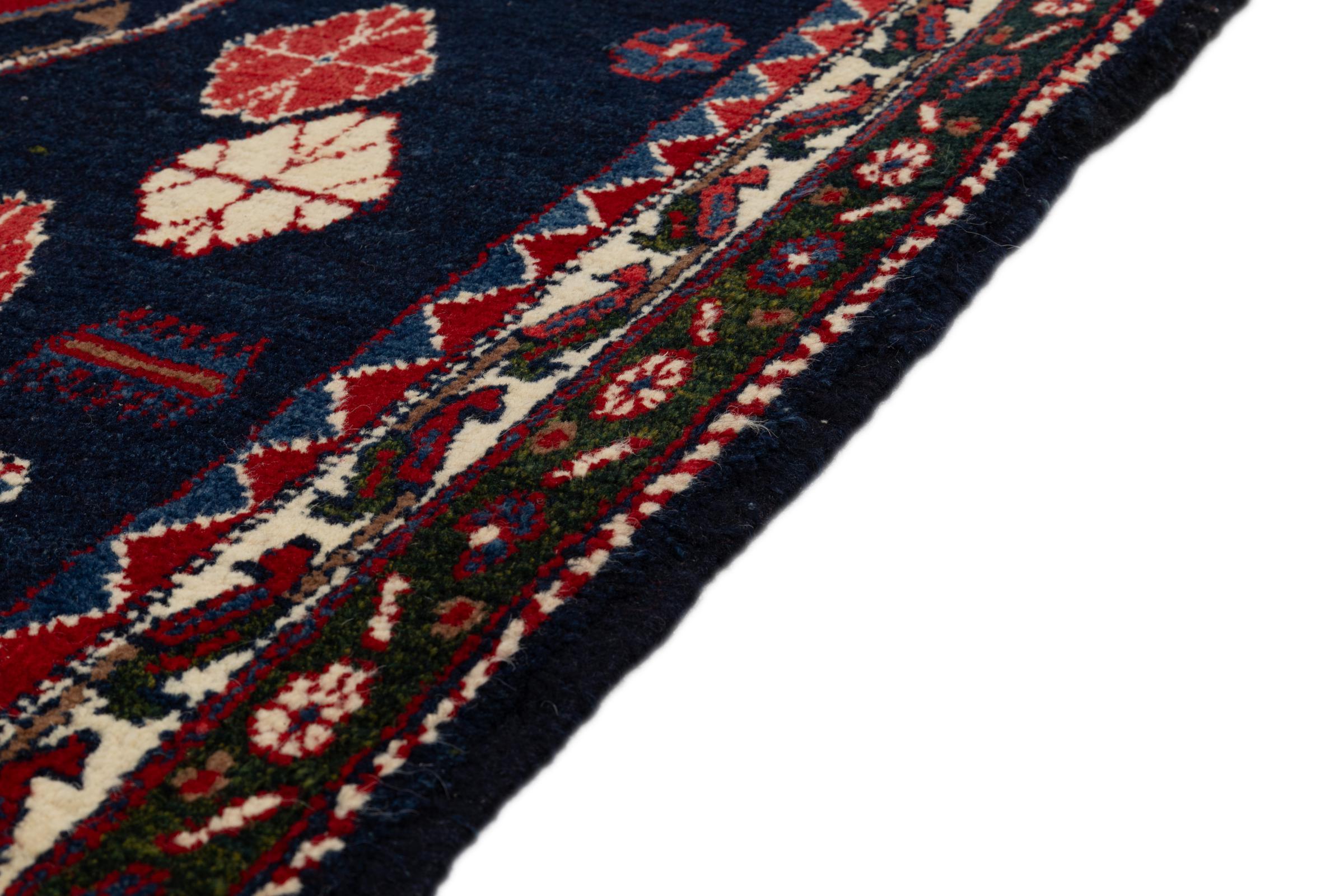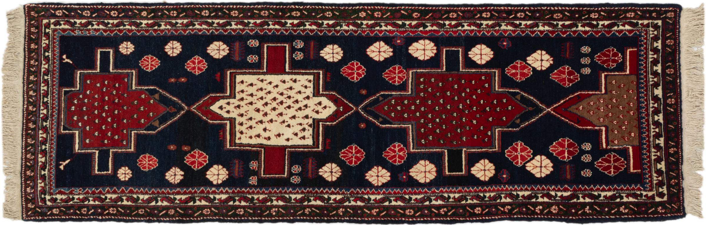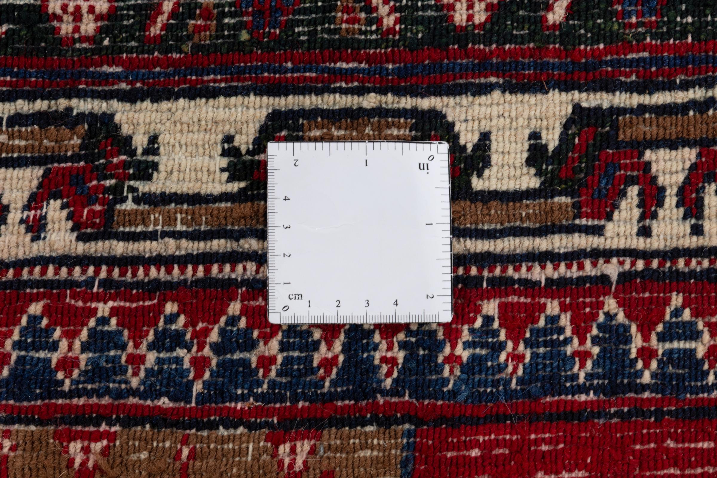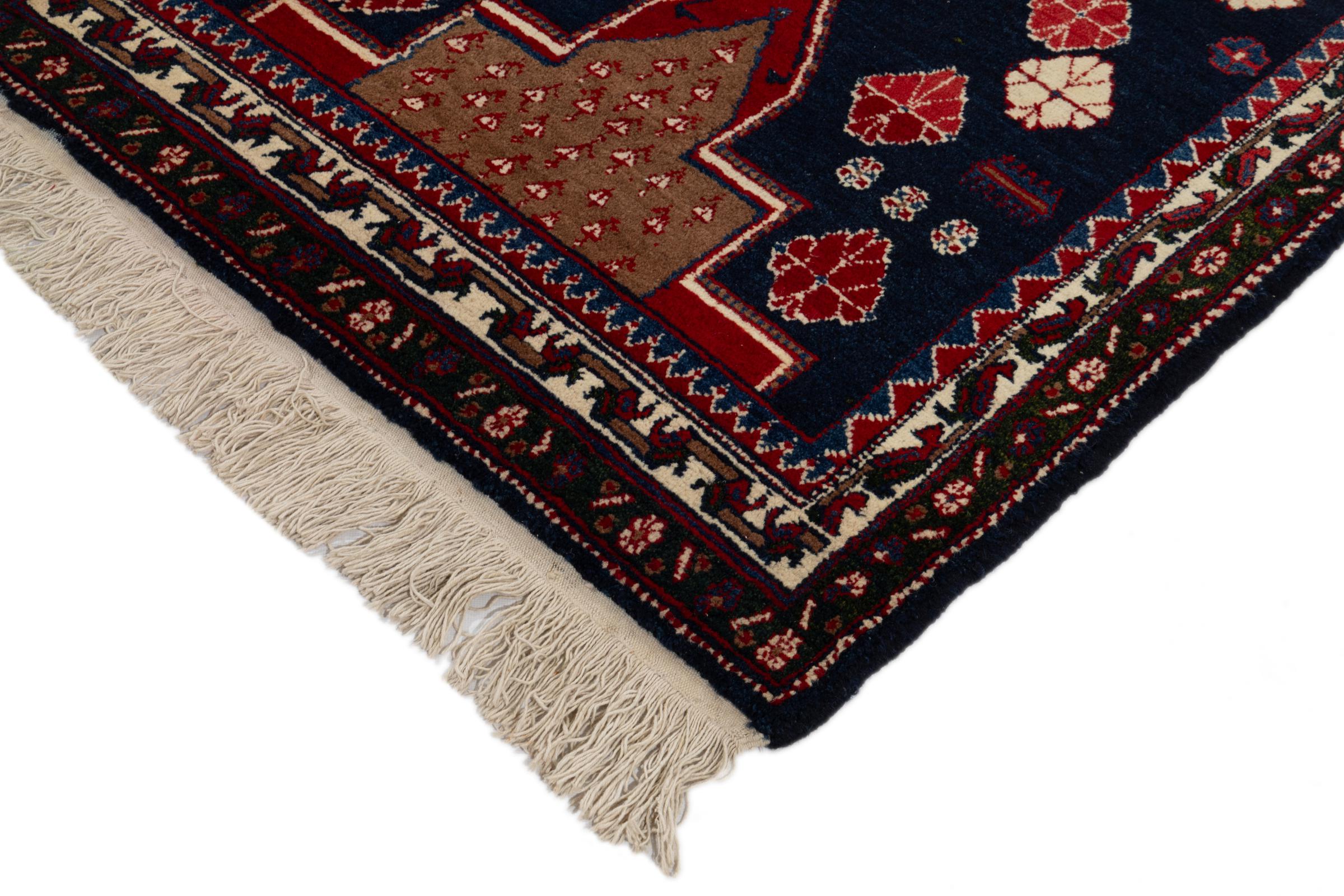 Dieser Teppich gehört zu Dorf- und Nomadenteppichen aus dem Iran, ehemals Persien. Diese Art von Teppich wird in kleineren Städten und Dörfern von Hand in alter Tradition geknüpft. Auch Nomaden knüpfen noch Perserteppiche unter freiem Himmel. Die Teppiche werden ohne Vorlage und komplett aus dem Kopf geknüpft. Sie sind gekennzeichnet durch klassische Ornamente, die in geradlinigen und geometrischen Mustern angelegt sind. Dank ihrer kulturell-traditionellen Herkunft, haben diese Teppiche einen einzigartigen Charakter, der das alte Persien verkörpert.
