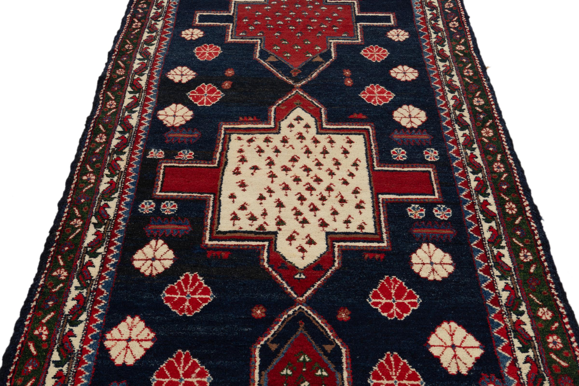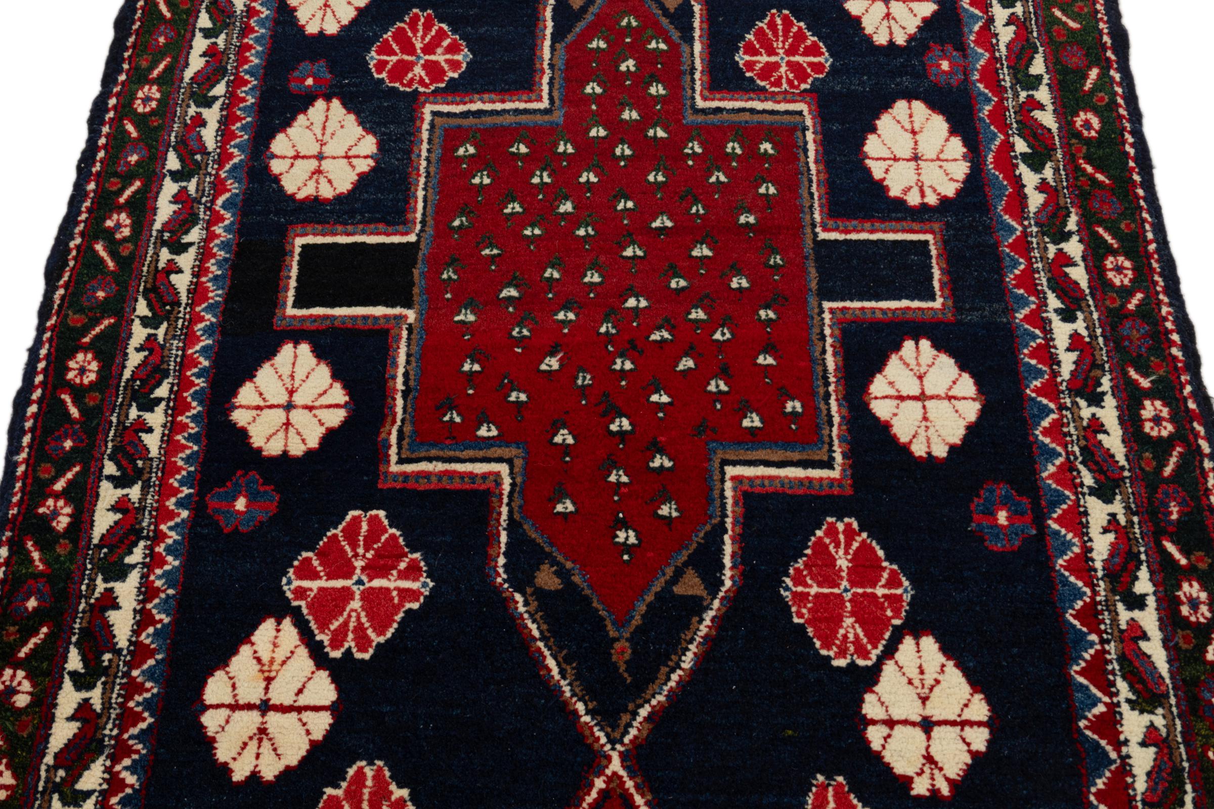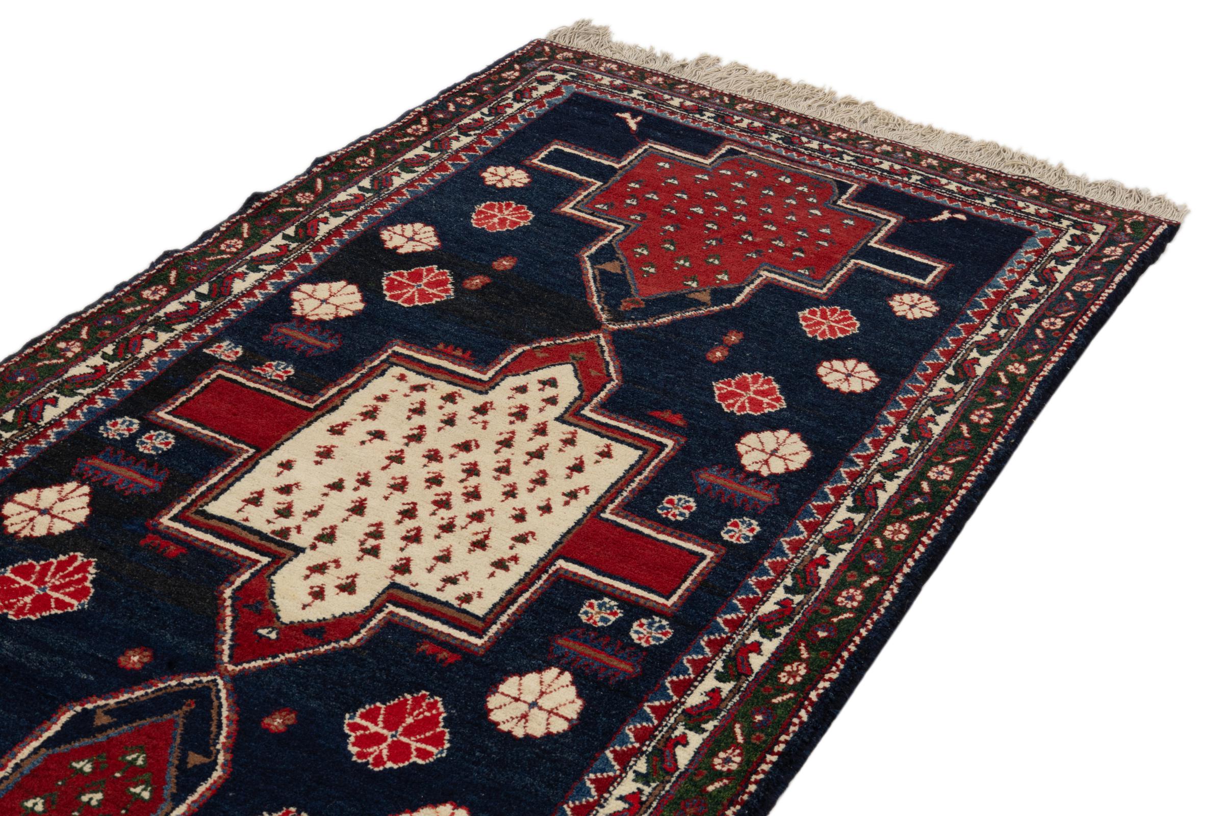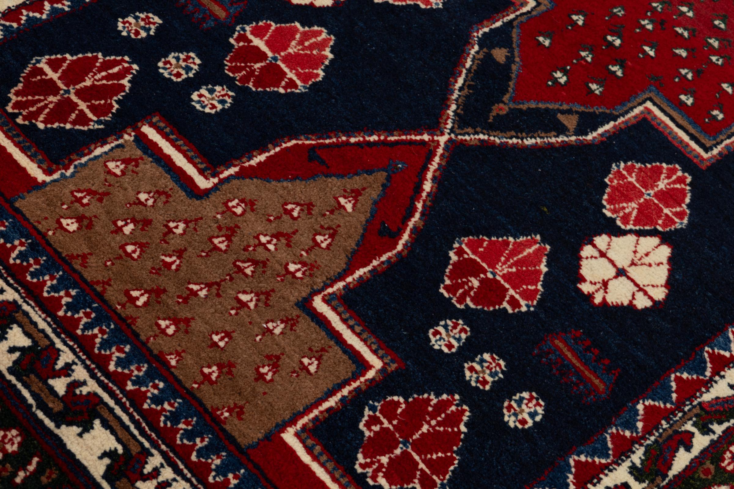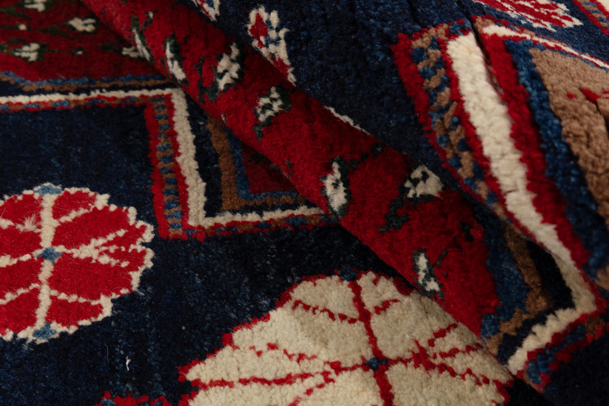 Dieser Teppich gehört zu Dorf- und Nomadenteppichen aus dem Iran, ehemals Persien. Diese Art von Teppich wird in kleineren Städten und Dörfern von Hand in alter Tradition geknüpft. Auch Nomaden knüpfen noch Perserteppiche unter freiem Himmel. Die Teppiche werden ohne Vorlage und komplett aus dem Kopf geknüpft. Sie sind gekennzeichnet durch klassische Ornamente, die in geradlinigen und geometrischen Mustern angelegt sind. Dank ihrer kulturell-traditionellen Herkunft, haben diese Teppiche einen einzigartigen Charakter, der das alte Persien verkörpert.