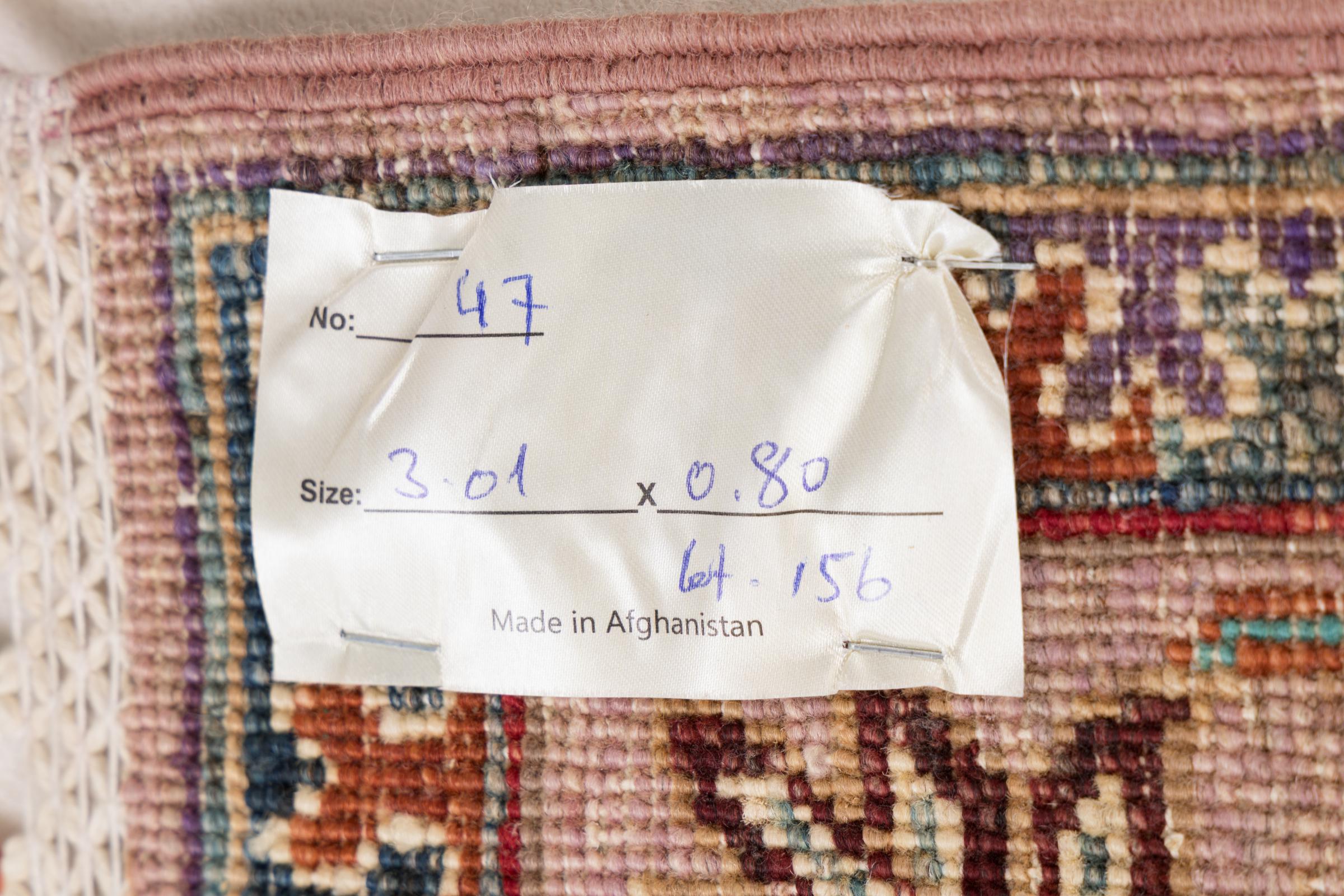 Teppich-Nr.: 280228007506852 Größe: 300x79 cm Dicke: ca. 5 mm Knoten: 128 000 - 160 000 / m² Verarbeitung: Handgeknüpft Flor: Handgesponnene Wolle Kette: Baumwolle Ursprung: Afghanistan Alter: Neu Gewicht: ca. 8 kg Anzahl auf Lager: Unikat - Nur 1 auf Lager