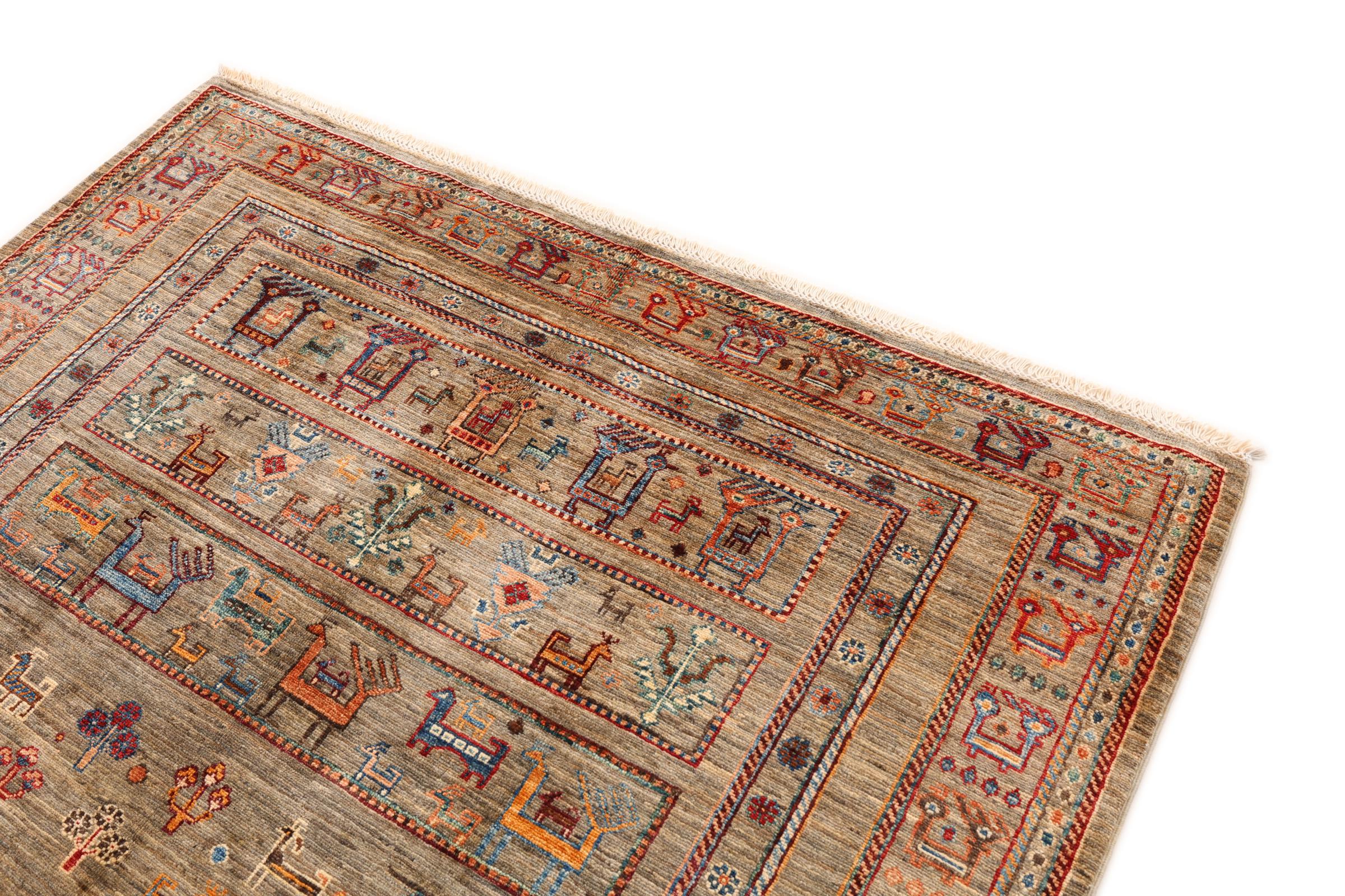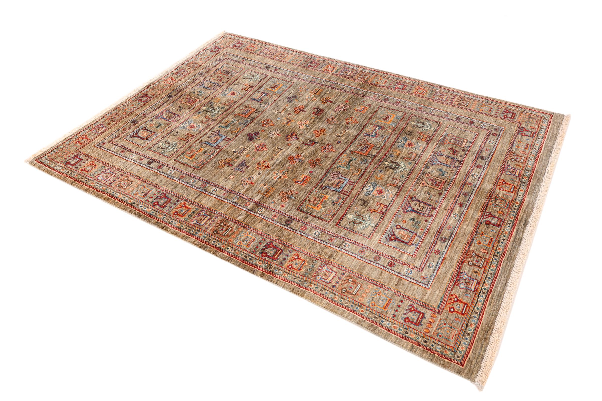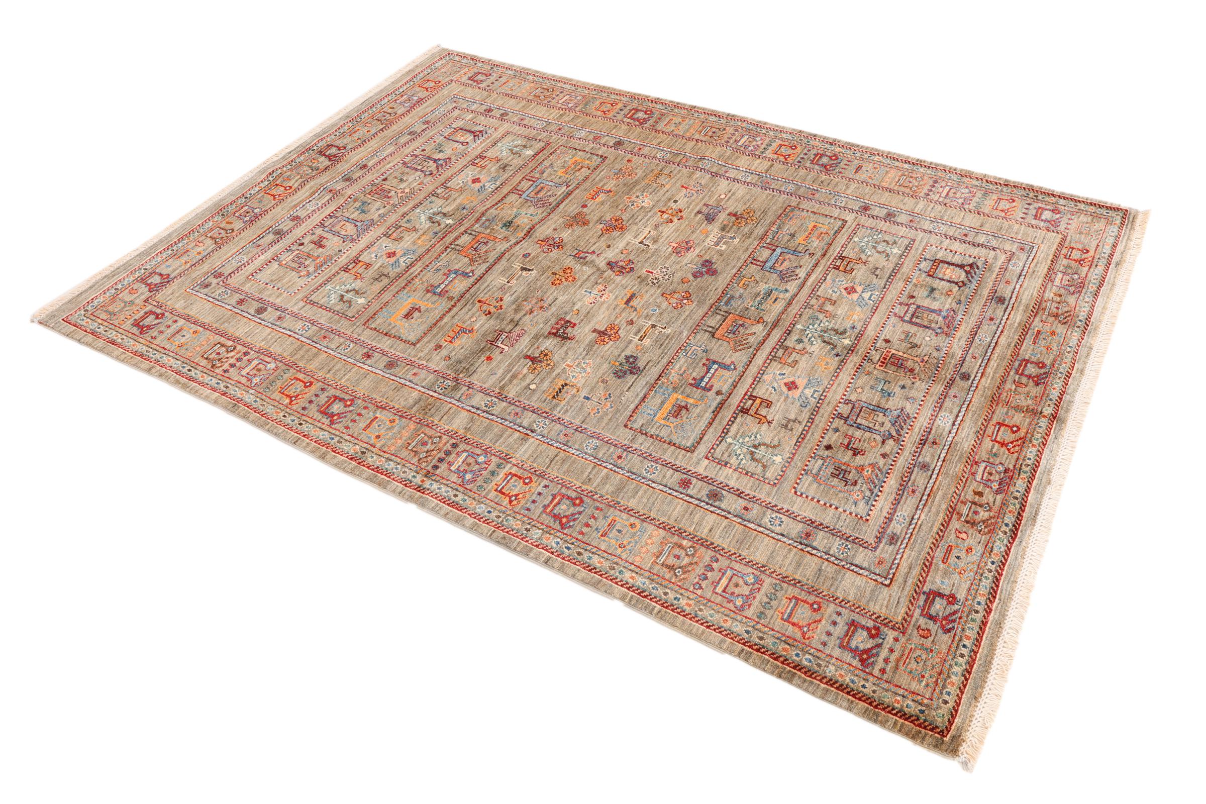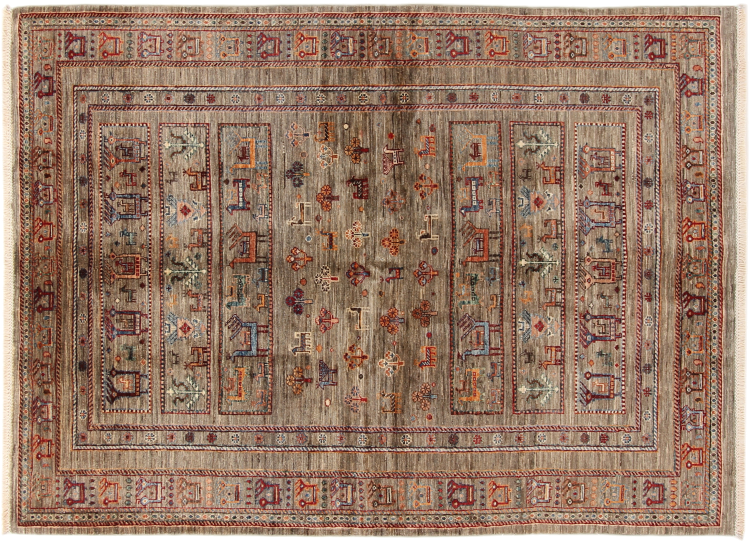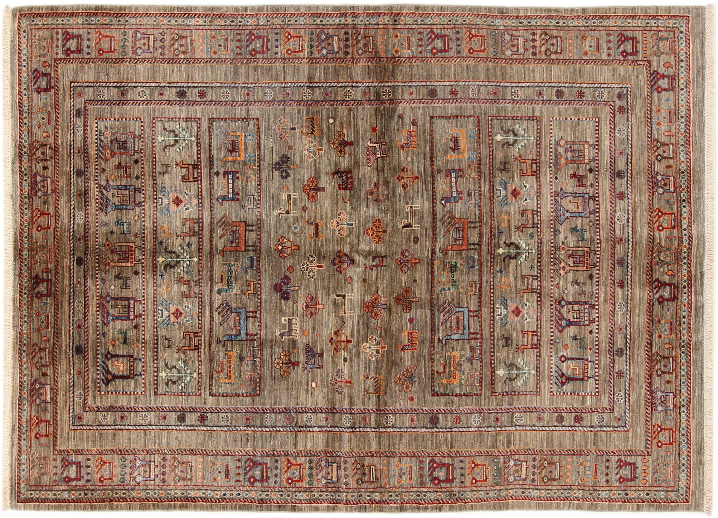 Teppich-Nr.: 204399005698994 Größe: 6'11"x5'2" ft Dicke: ca. 0.2 in Knoten: 82 - 103 / Quadratzoll Verarbeitung: Handgeknüpft Flor: Handgesponnene Wolle Kette: Baumwolle Ursprung: Pakistan Alter: Neu Gewicht: ca. 26 lb Anzahl auf Lager: Unikat - Nur 1 auf Lager