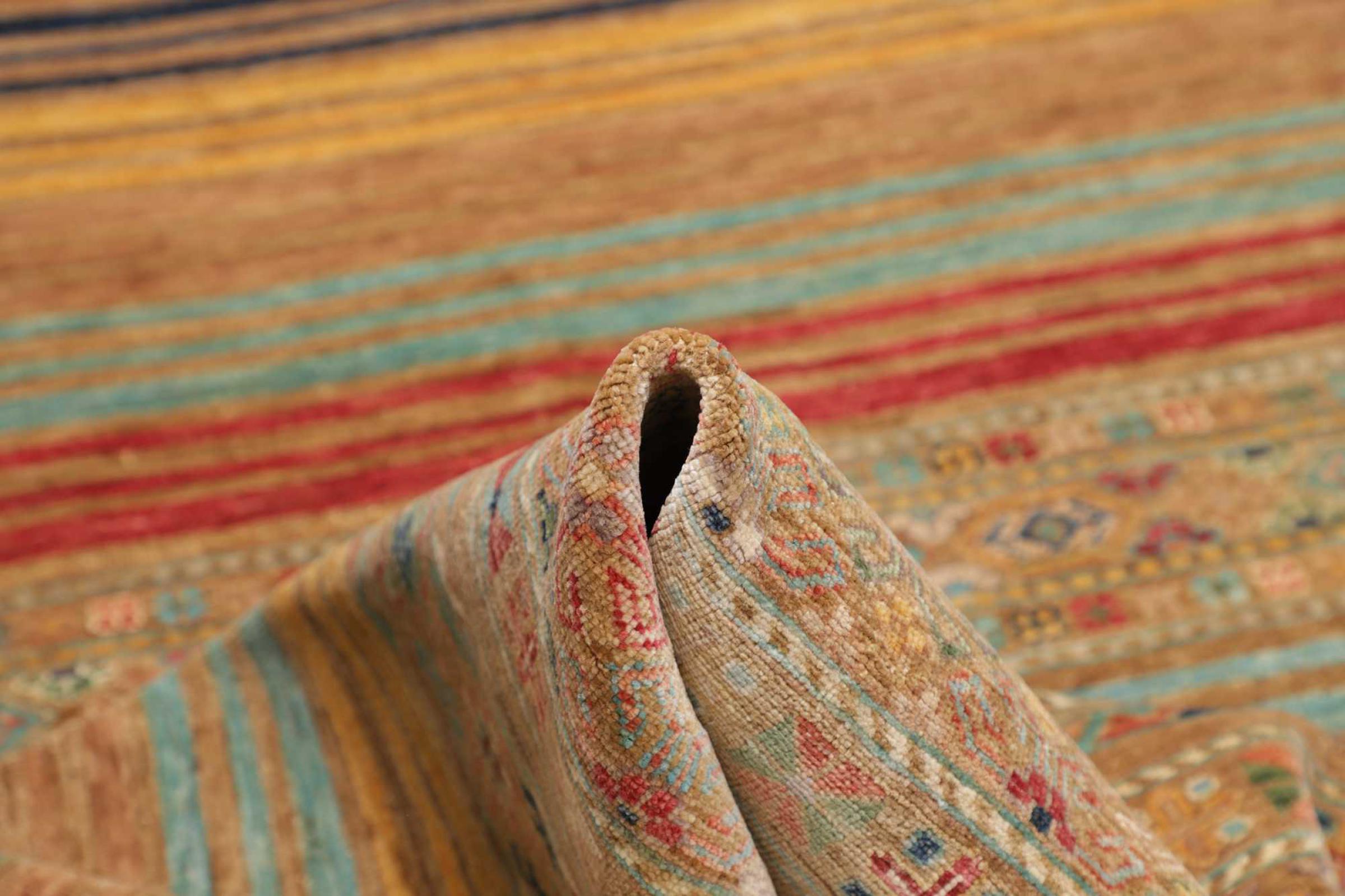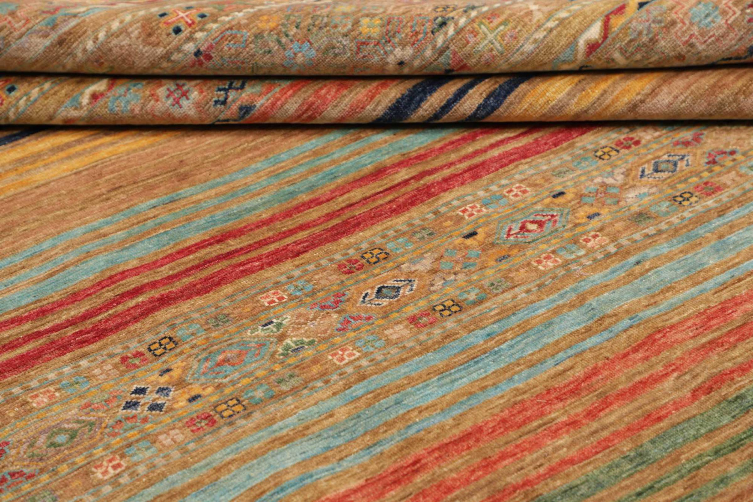 Dieser Arijana Shaal Teppich wurde in feinster Handarbeit in Pakistan geknüpft. Er verspricht eine sehr hohe Qualität und bietet somit lange Freude. Das in Streifen gehaltene Muster ist abwechslungsreich und spannend. Inspiriert wurde er dabei vom bekannten Moharamati-Dessin. Wem monochrom gehaltene Teppiche zu langweilig sind, wird von diesem Arijana Shaal mit Sicherheit begeistert sein.