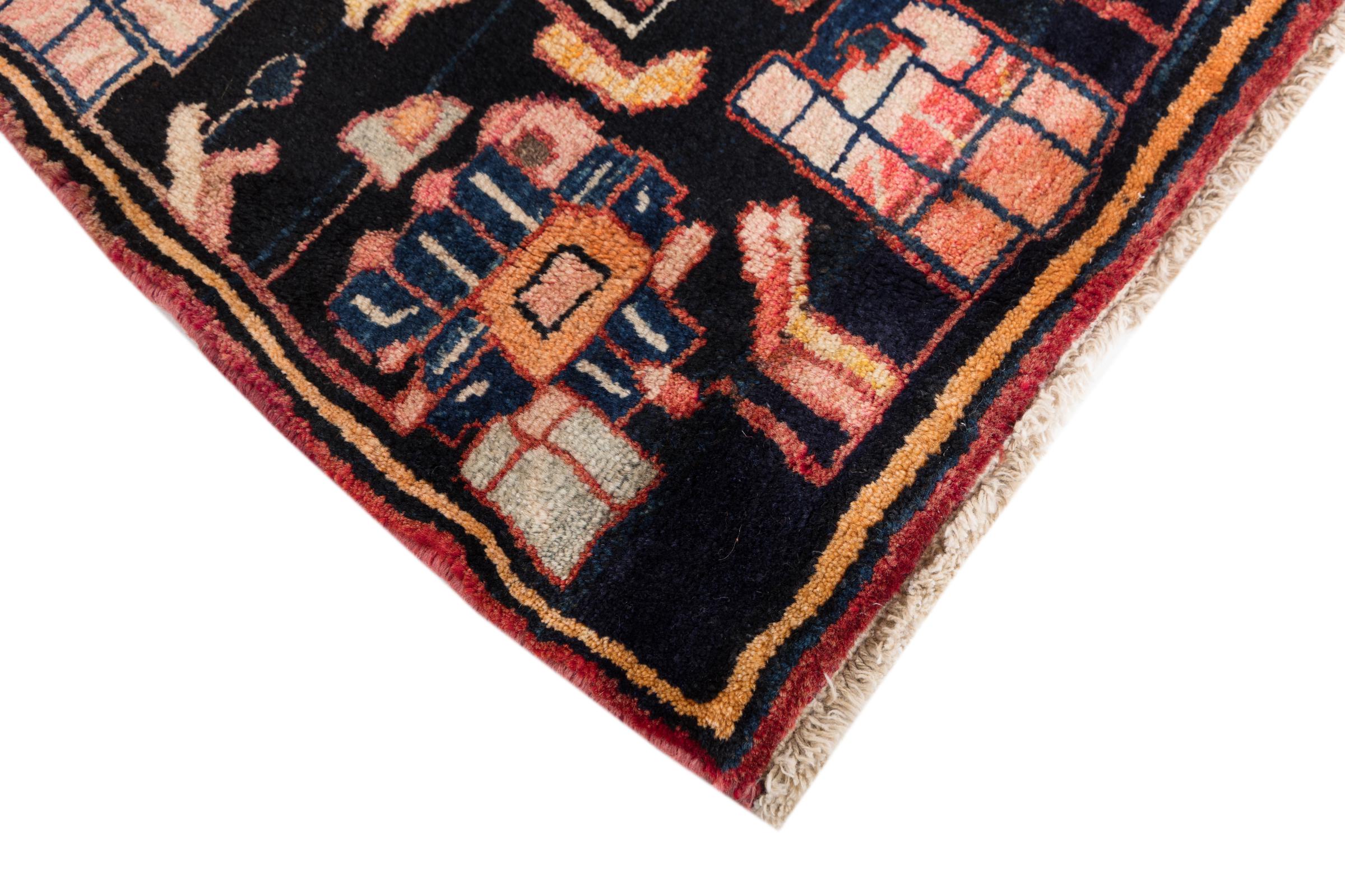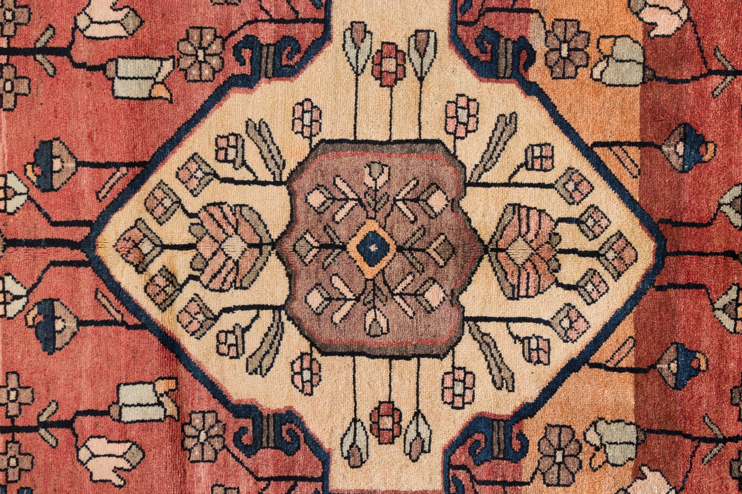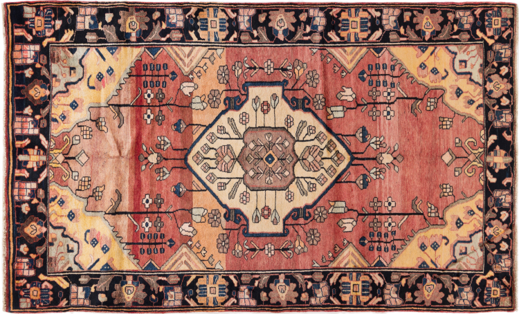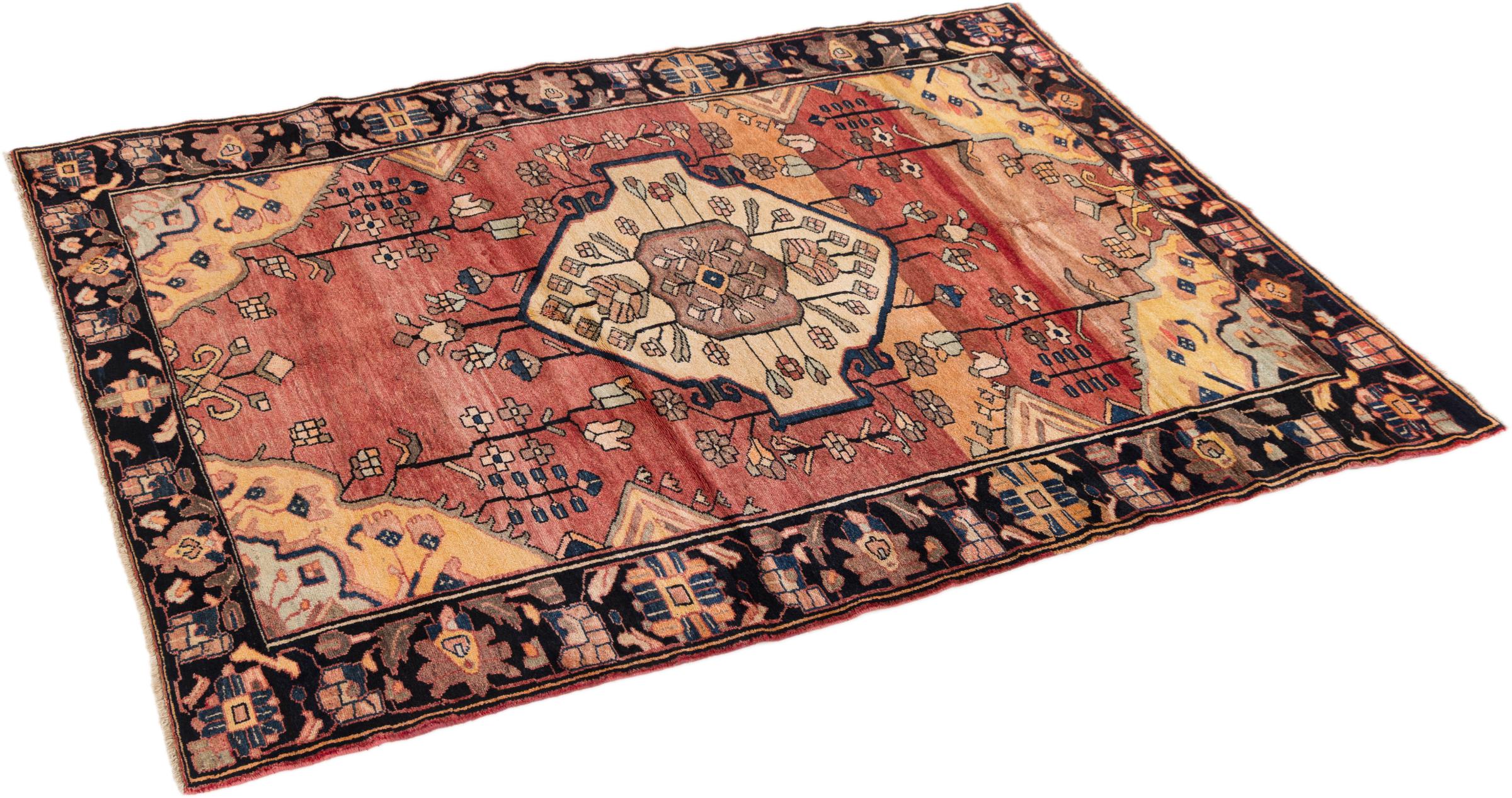Dieser Teppich gehört zu Dorf- und Nomadenteppichen aus dem Iran, ehemals Persien. Diese Art von Teppich wird in kleineren Städten und Dörfern von Hand in alter Tradition geknüpft. Auch Nomaden knüpfen noch Perserteppiche unter freiem Himmel. Die Teppiche werden ohne Vorlage und komplett aus dem Kopf geknüpft. Sie sind gekennzeichnet durch klassische Ornamente, die in geradlinigen und geometrischen Mustern angelegt sind. Dank ihrer kulturell-traditionellen Herkunft, haben diese Teppiche einen einzigartigen Charakter, der das alte Persien verkörpert.