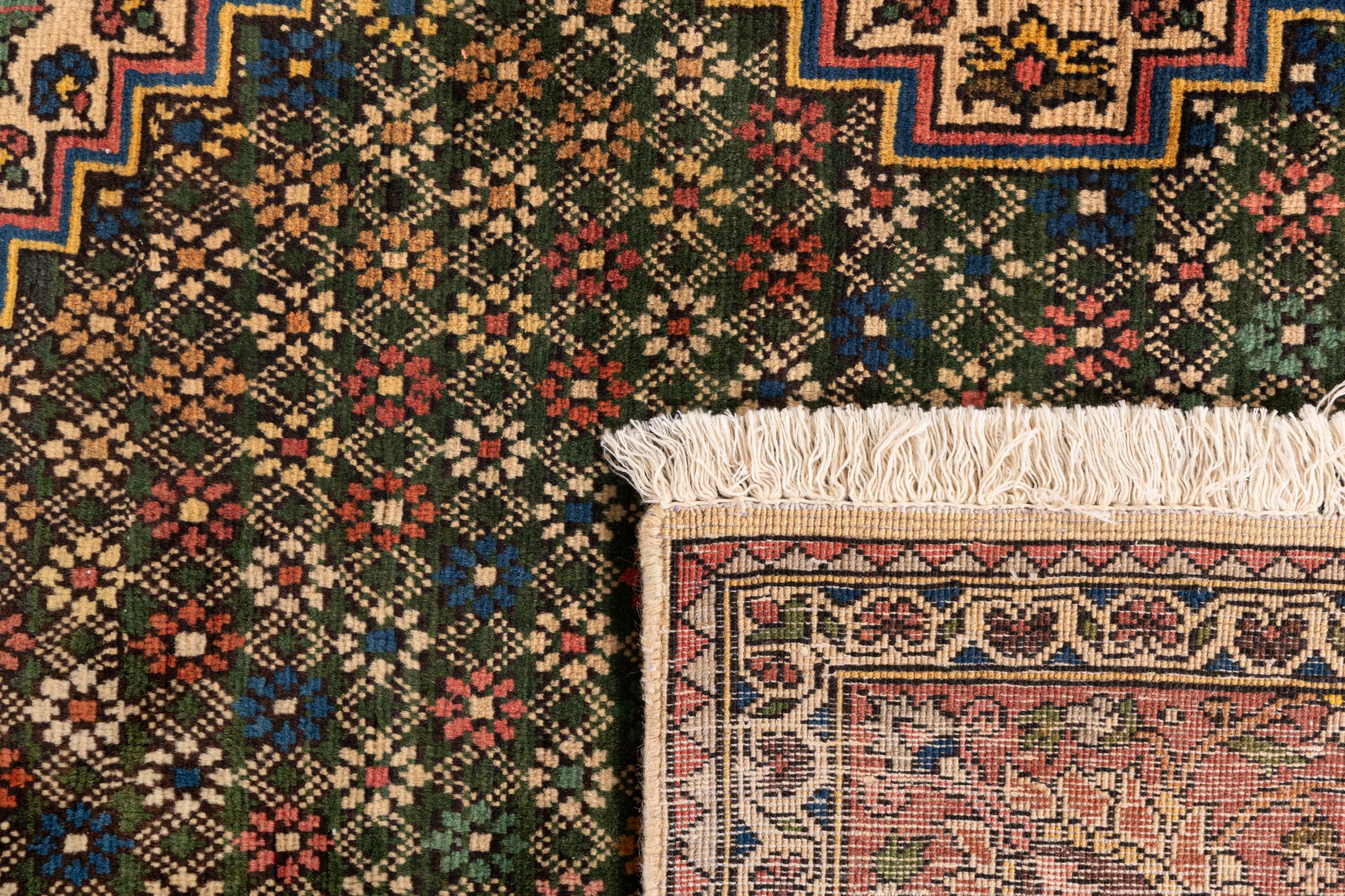 Dieser Teppich gehört zu Dorf- und Nomadenteppichen aus dem Iran, ehemals Persien. Diese Art von Teppich wird in kleineren Städten und Dörfern von Hand in alter Tradition geknüpft. Auch Nomaden knüpfen noch Perserteppiche unter freiem Himmel. Die Teppiche werden ohne Vorlage und komplett aus dem Kopf geknüpft. Sie sind gekennzeichnet durch klassische Ornamente, die in geradlinigen und geometrischen Mustern angelegt sind. Dank ihrer kulturell-traditionellen Herkunft, haben diese Teppiche einen einzigartigen Charakter, der das alte Persien verkörpert.