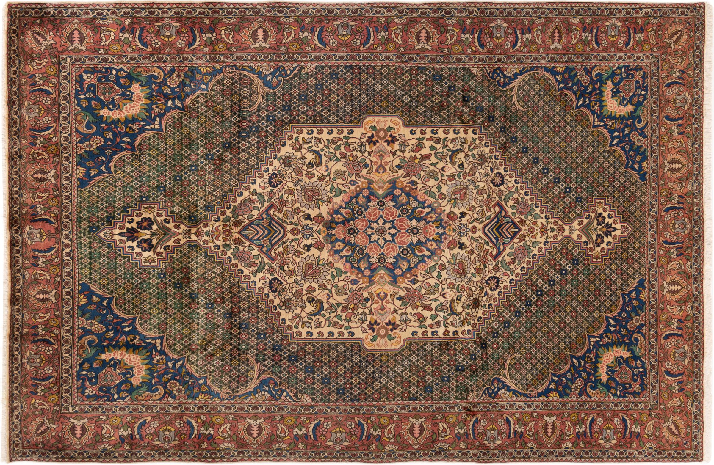 Handgeknüpft wurde dieser Perser-Bakhtiar von Nomaden des Stammes der Bachtiari. Mit den Farben des Orients spielt dieser Perserteppich in schönsten Mustern. Das Design seiner Ornamente ist von persischen Gärten inspiriert. Das sogenannte traditionelle Garden-Design hat über die Jahre hinweg eine hohe Beliebtheit in der westlichen Welt errungen. Seine hohe Knüpfdichte verspricht im Zusammenspiel mit dem kräftigen Garn einen langanhaltenden Genuss persischer Teppichkunst.
