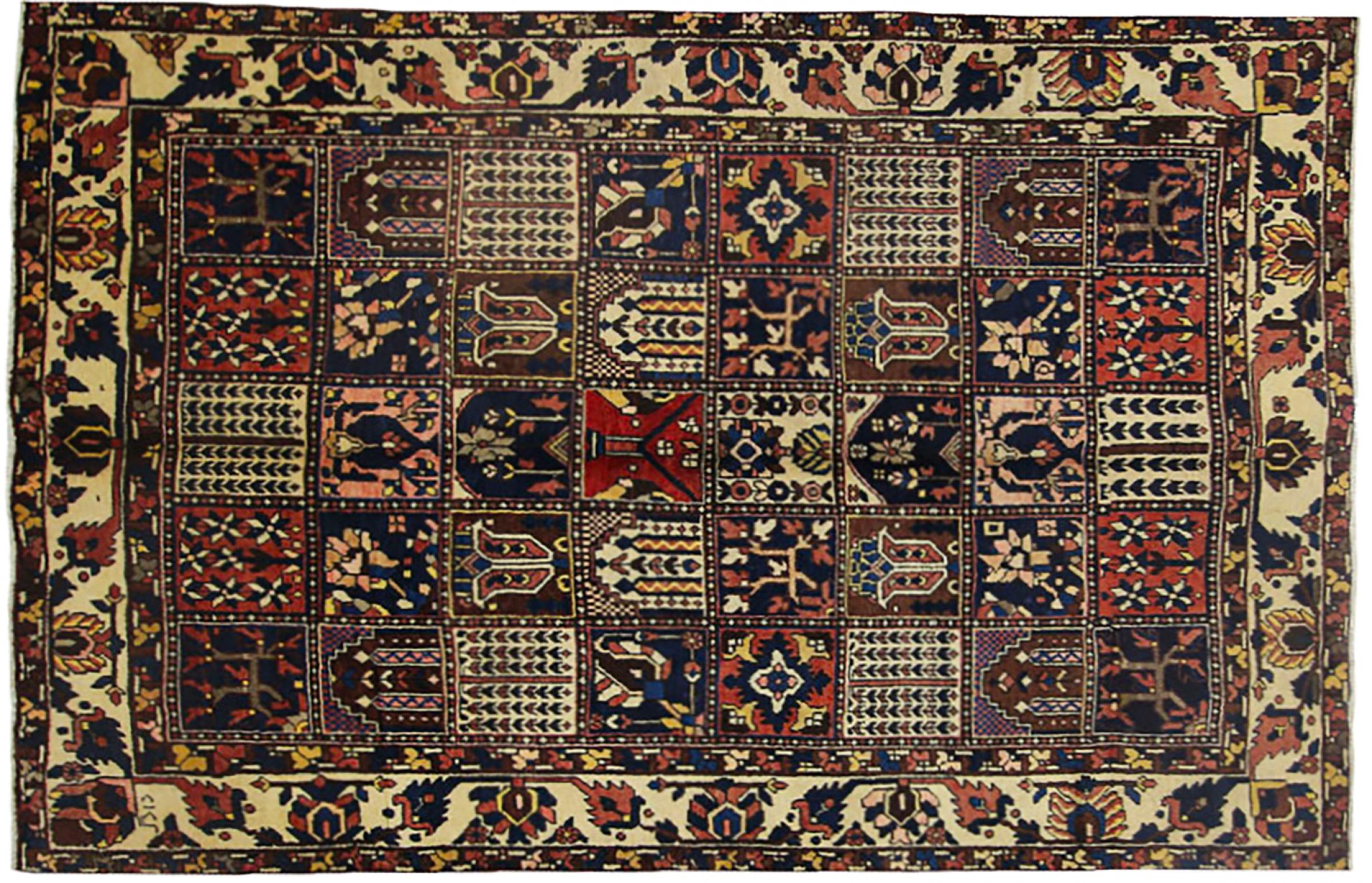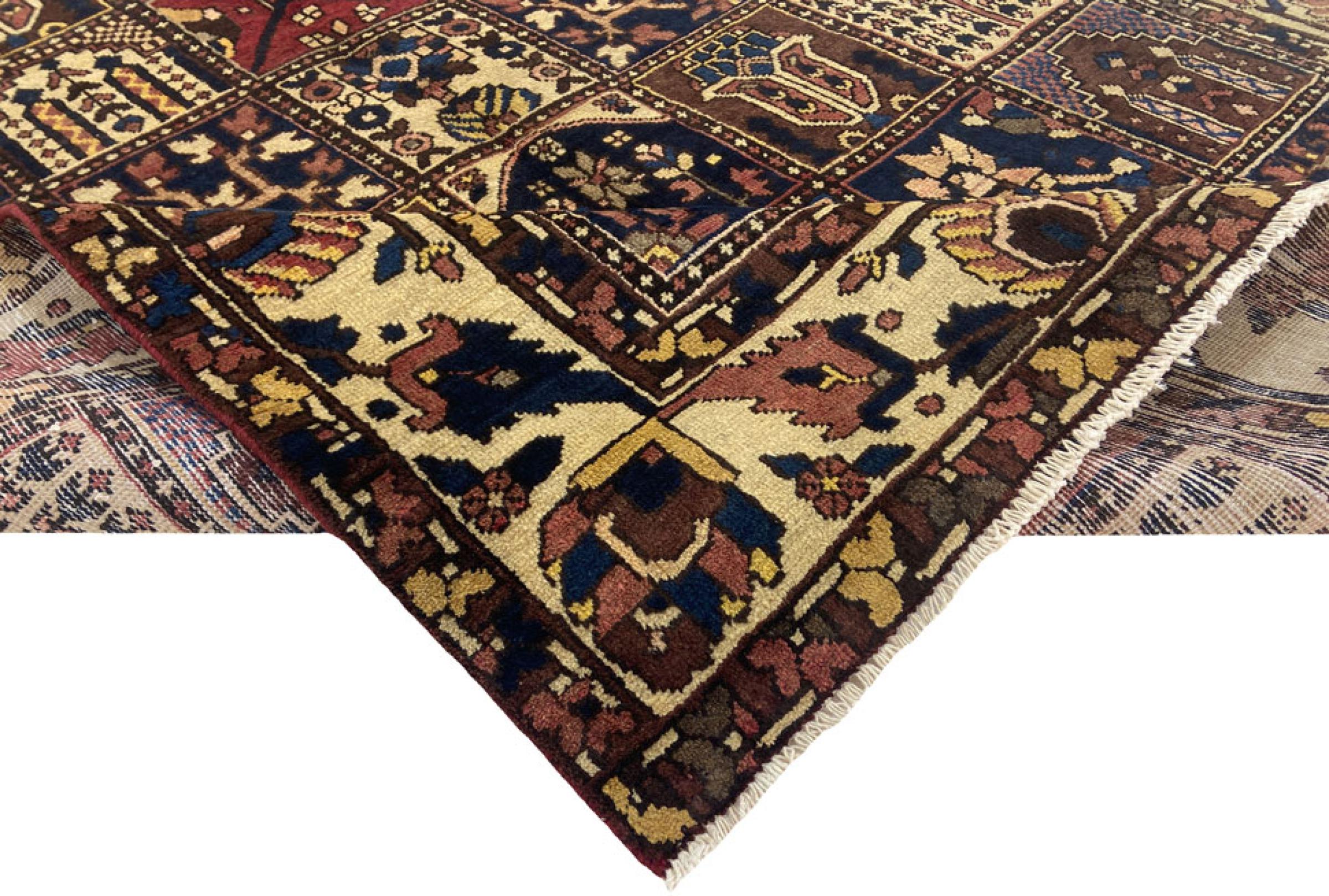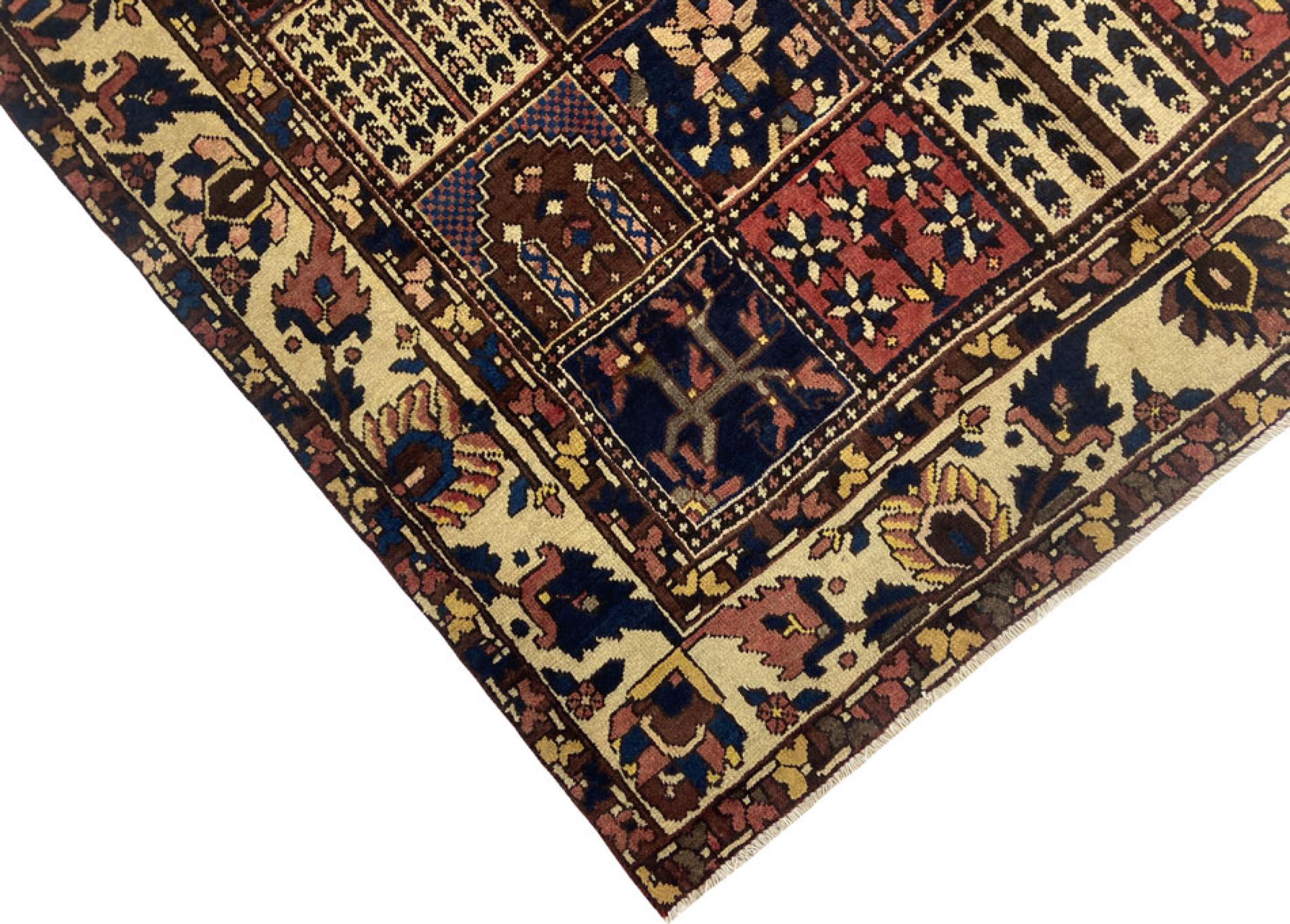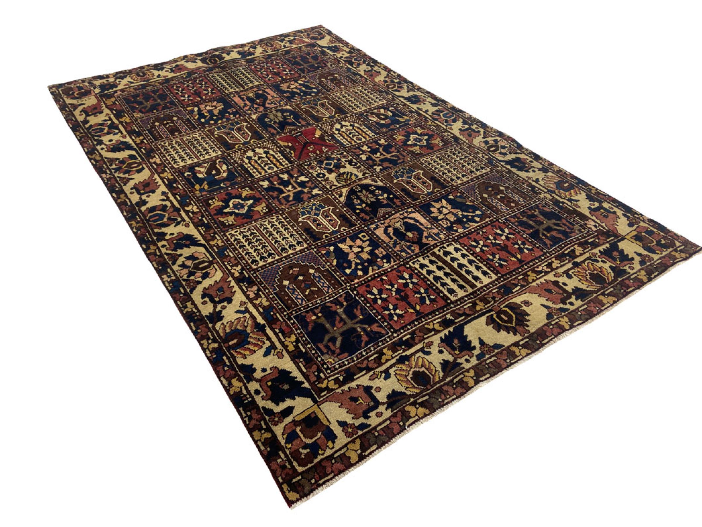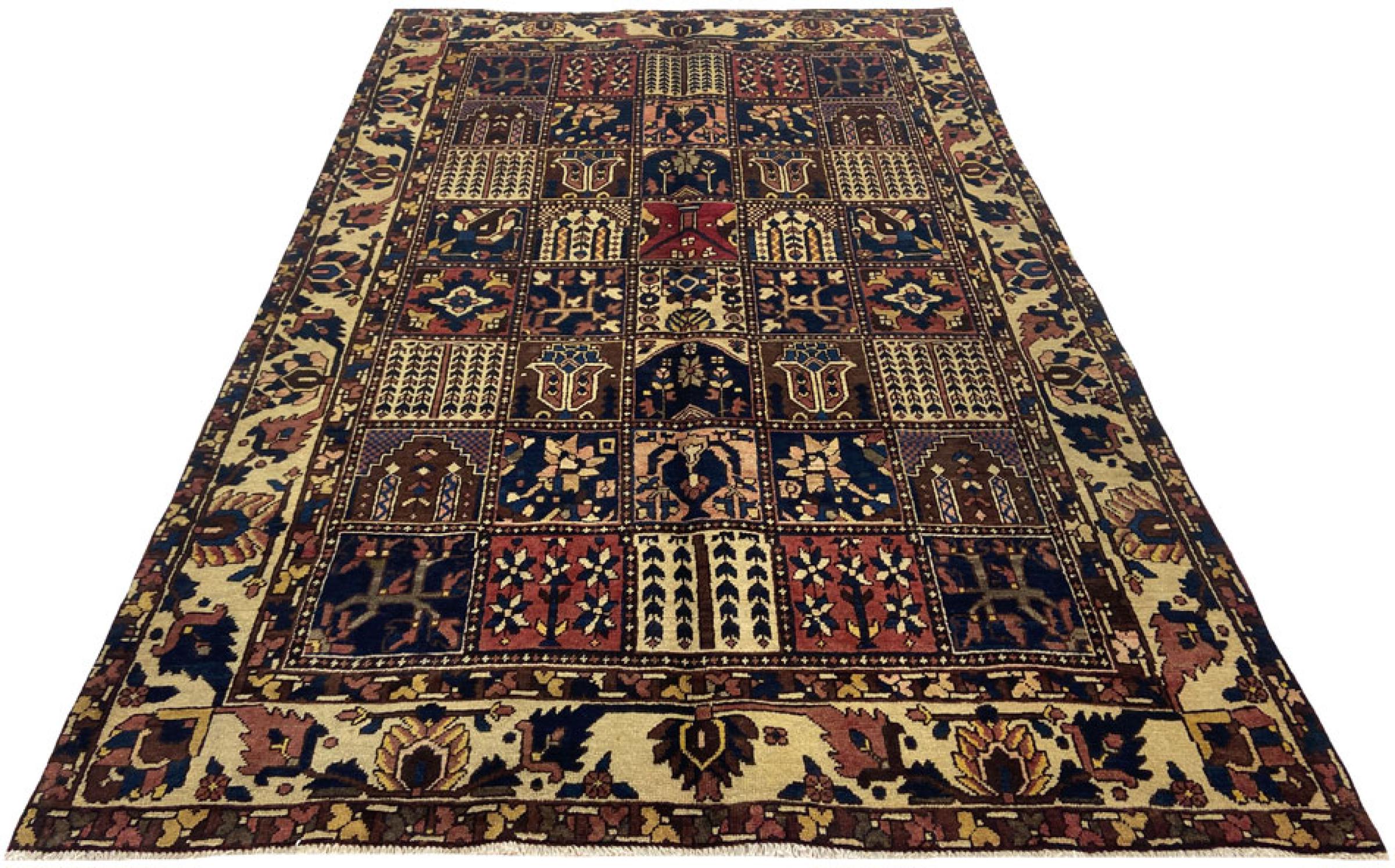 Handgeknüpft wurde dieser Perser-Bakhtiar von Nomaden des Stammes der Bachtiari. Mit den Farben des Orients spielt dieser Perserteppich in schönsten Mustern. Das Design seiner Ornamente ist von persischen Gärten inspiriert. Das sogenannte traditionelle Garden-Design hat über die Jahre hinweg eine hohe Beliebtheit in der westlichen Welt errungen. Seine hohe Knüpfdichte verspricht im Zusammenspiel mit dem kräftigen Garn einen langanhaltenden Genuss persischer Teppichkunst.