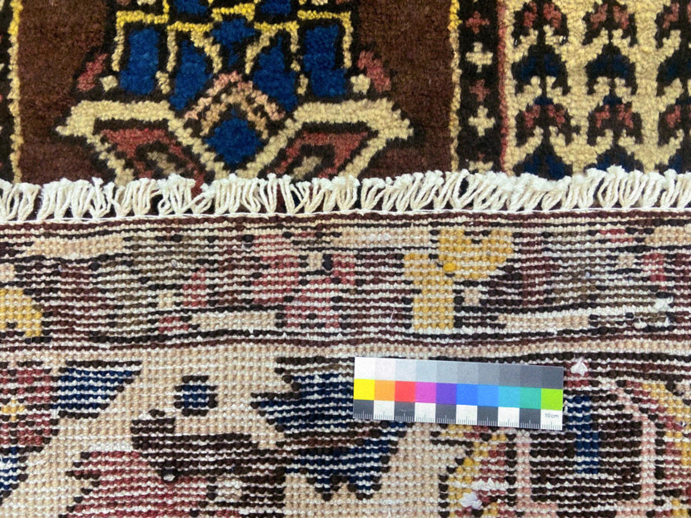 Dieser Teppich gehört zu Dorf- und Nomadenteppichen aus dem Iran, ehemals Persien. Diese Art von Teppich wird in kleineren Städten und Dörfern von Hand in alter Tradition geknüpft. Auch Nomaden knüpfen noch Perserteppiche unter freiem Himmel. Die Teppiche werden ohne Vorlage und komplett aus dem Kopf geknüpft. Sie sind gekennzeichnet durch klassische Ornamente, die in geradlinigen und geometrischen Mustern angelegt sind. Dank ihrer kulturell-traditionellen Herkunft, haben diese Teppiche einen einzigartigen Charakter, der das alte Persien verkörpert.