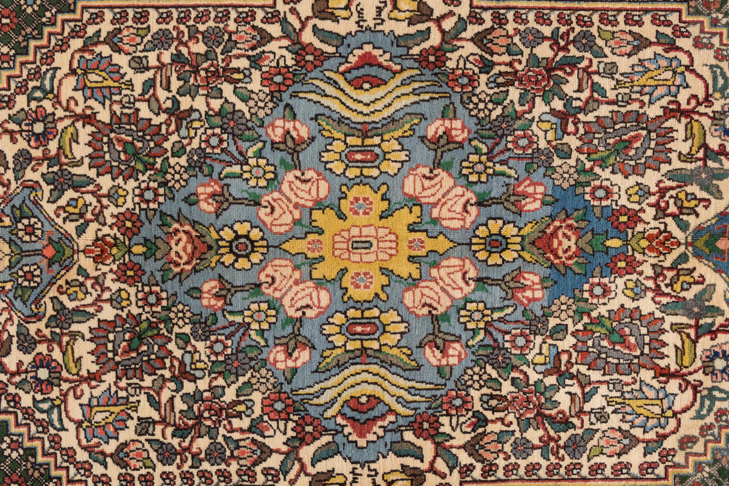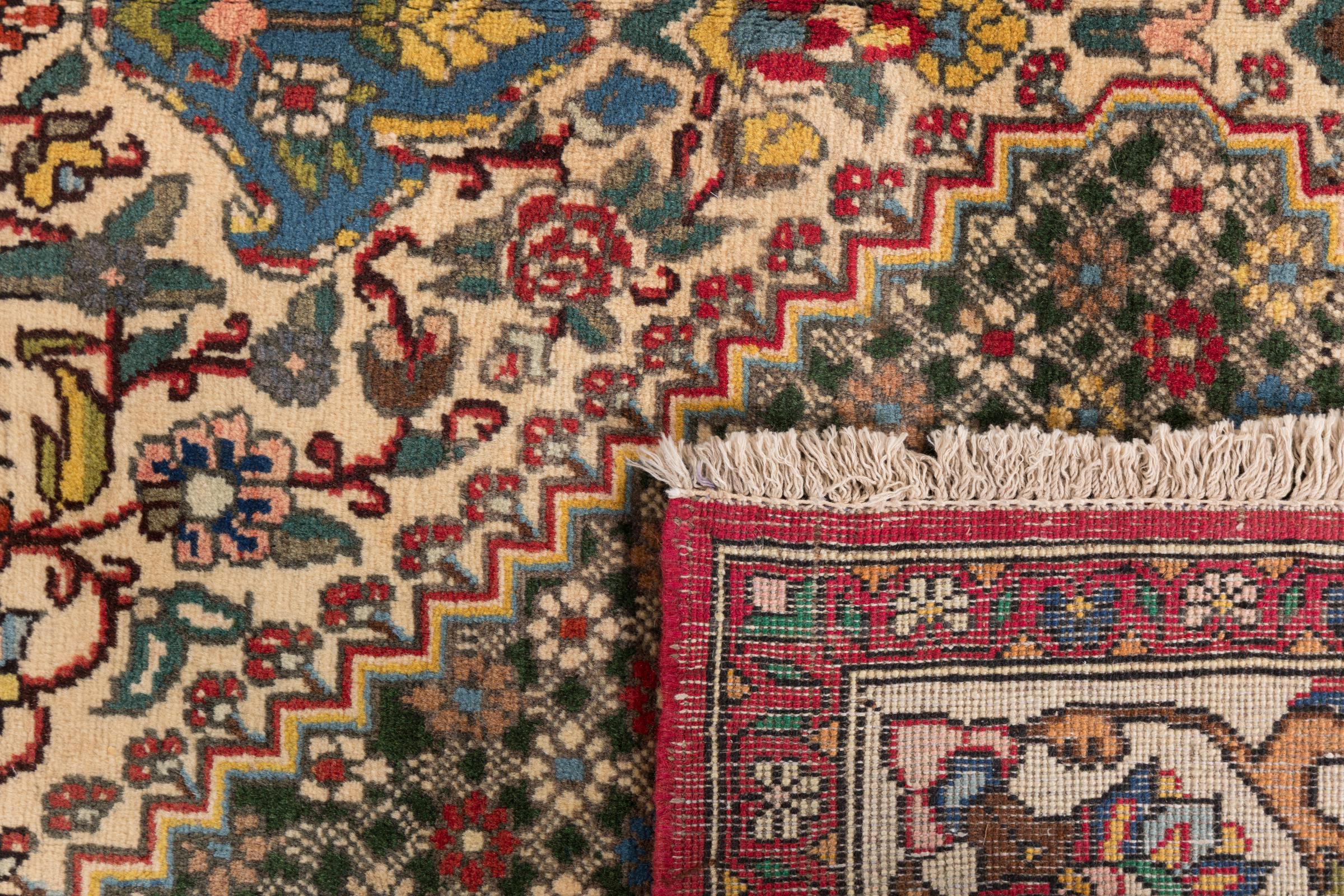 Handgeknüpft wurde dieser Perser-Bakhtiar von Nomaden des Stammes der Bachtiari. Mit den Farben des Orients spielt dieser Perserteppich in schönsten Mustern. Das Design seiner Ornamente ist von persischen Gärten inspiriert. Das sogenannte traditionelle Garden-Design hat über die Jahre hinweg eine hohe Beliebtheit in der westlichen Welt errungen. Seine hohe Knüpfdichte verspricht im Zusammenspiel mit dem kräftigen Garn einen langanhaltenden Genuss persischer Teppichkunst.
