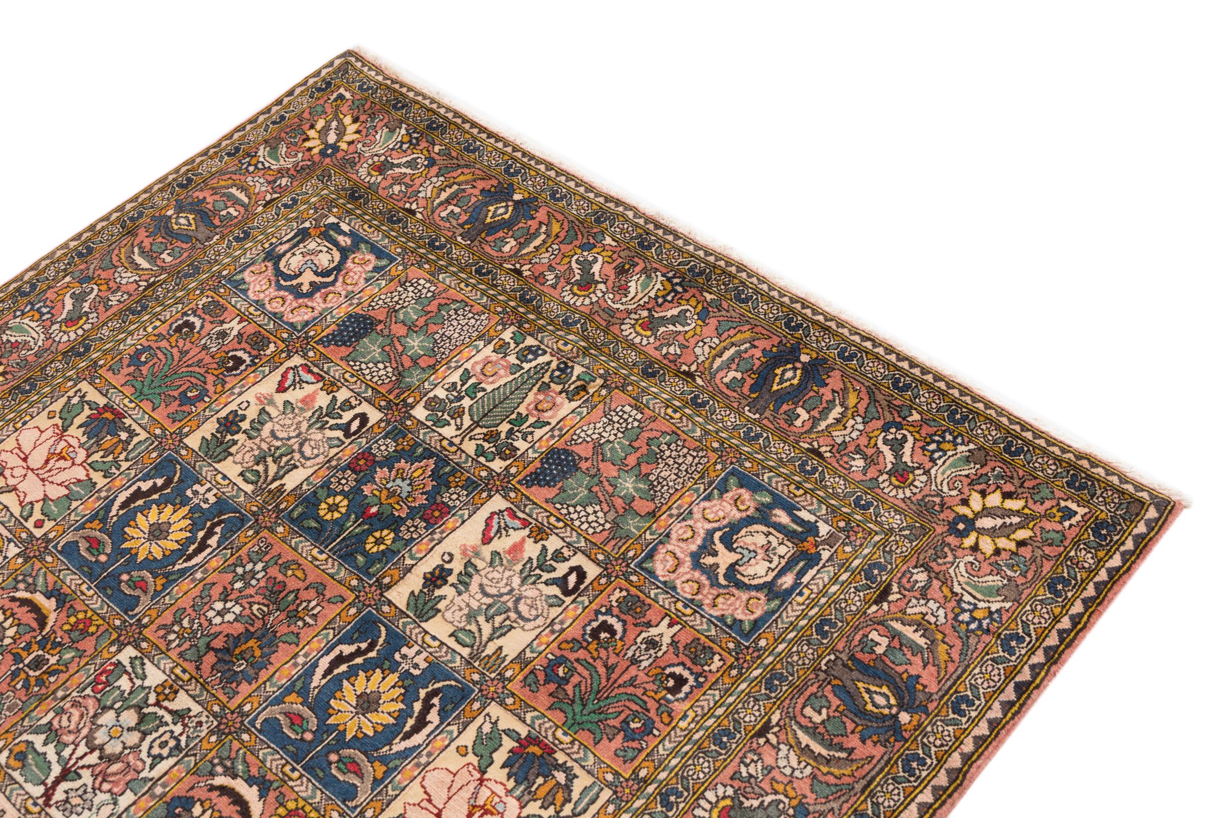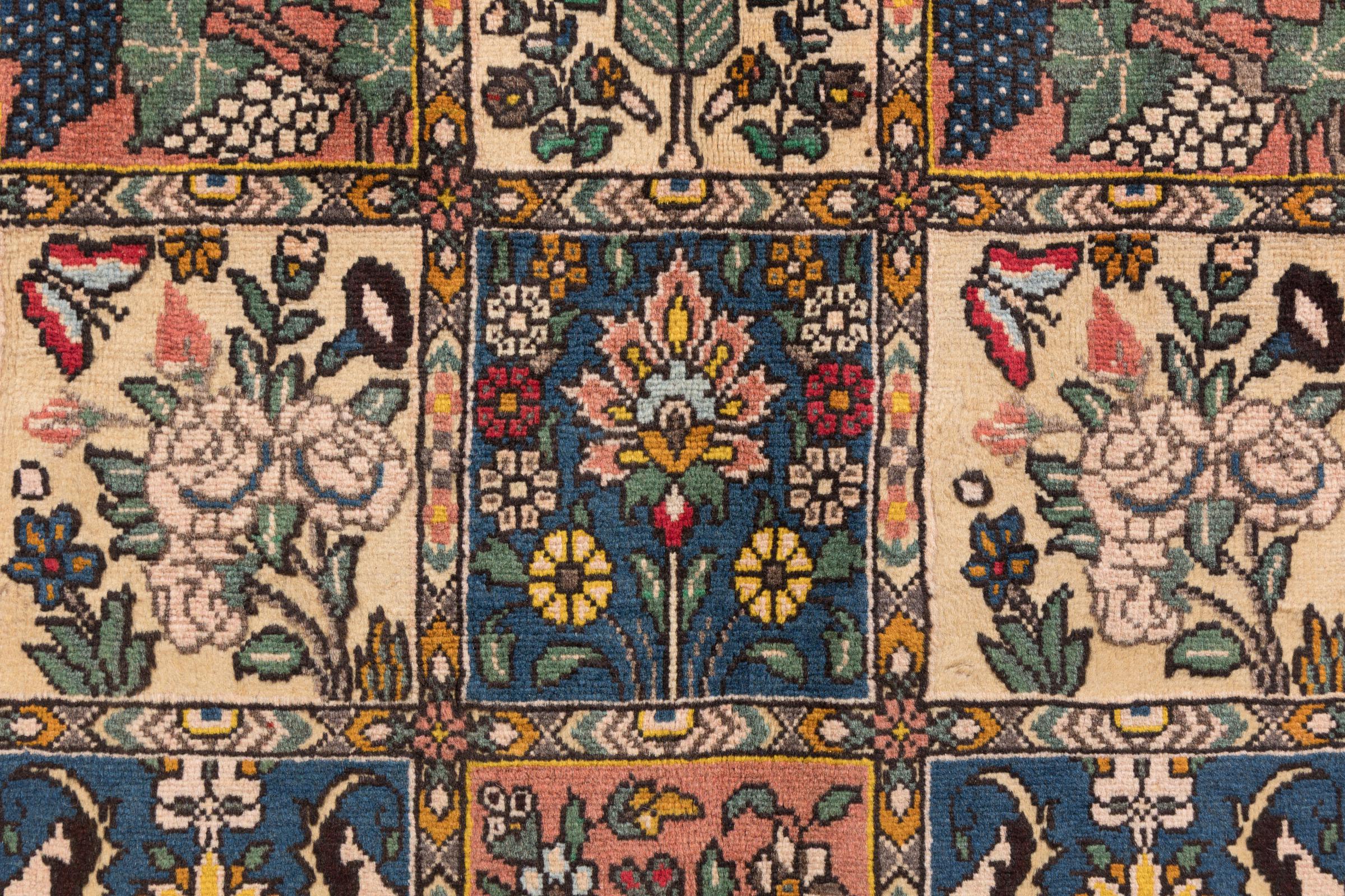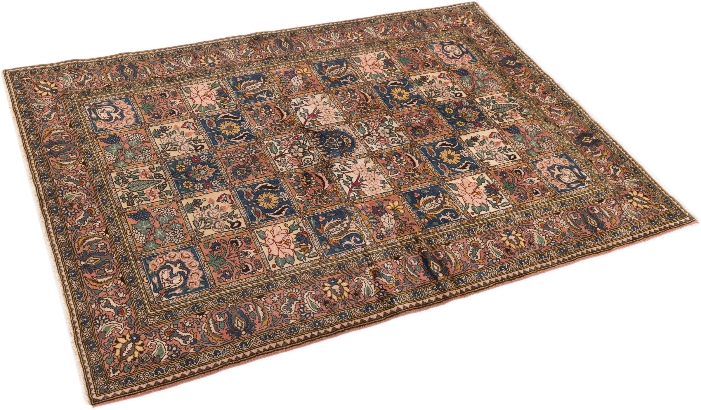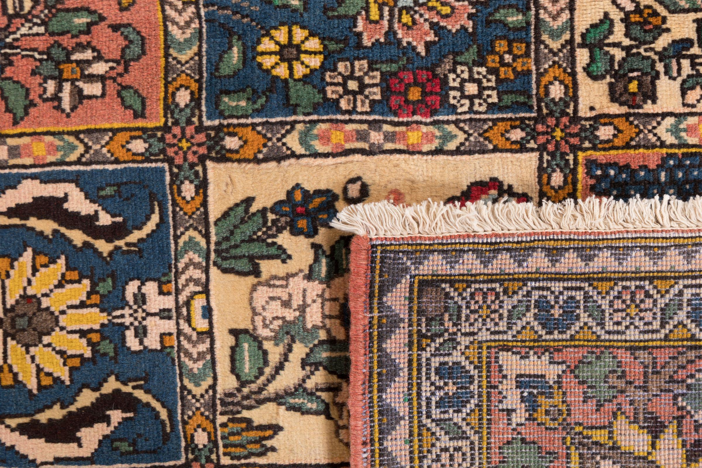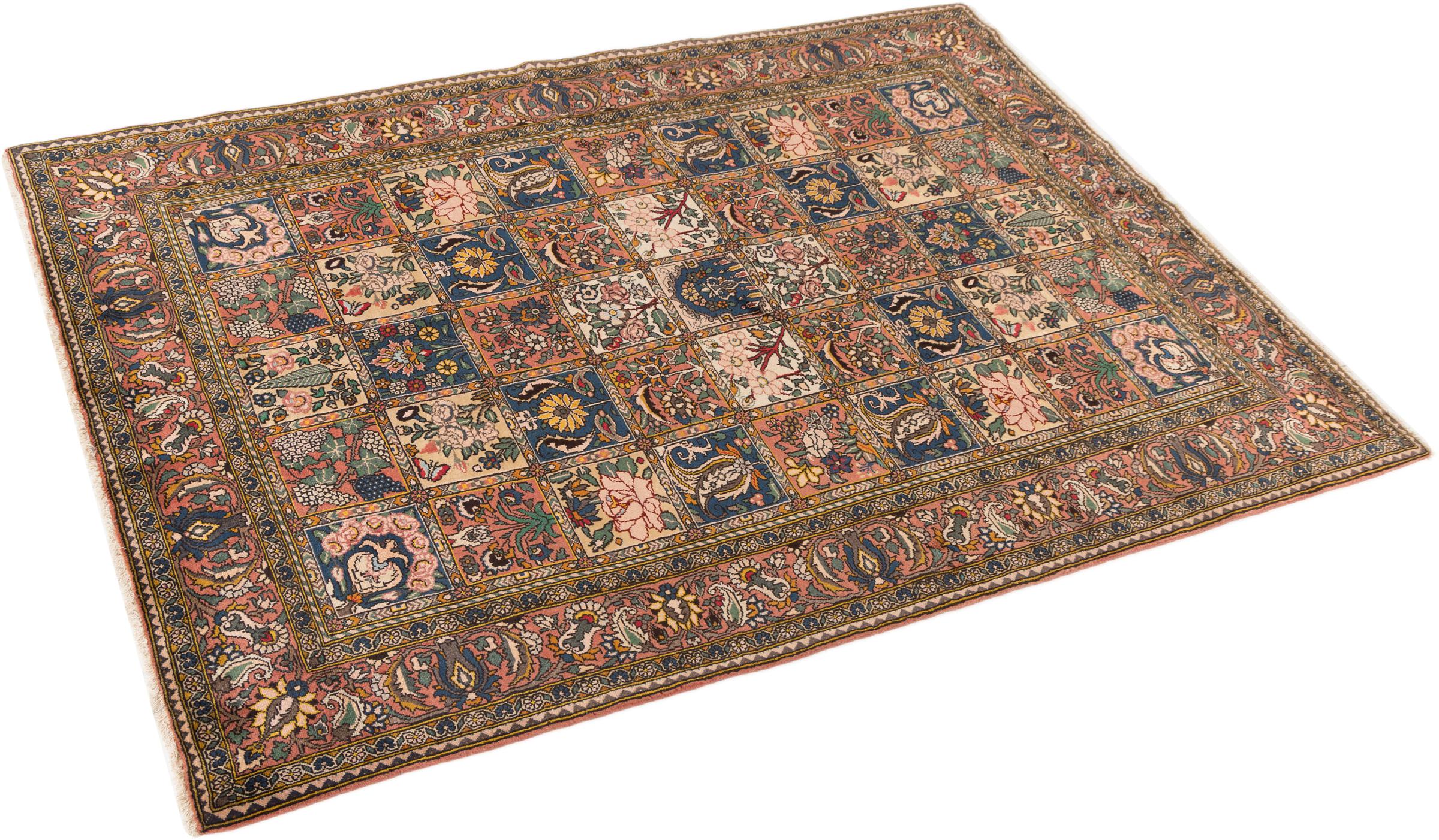 Handgeknüpft wurde dieser Perser-Bakhtiar von Nomaden des Stammes der Bachtiari. Mit den Farben des Orients spielt dieser Perserteppich in schönsten Mustern. Das Design seiner Ornamente ist von persischen Gärten inspiriert. Das sogenannte traditionelle Garden-Design hat über die Jahre hinweg eine hohe Beliebtheit in der westlichen Welt errungen. Seine hohe Knüpfdichte verspricht im Zusammenspiel mit dem kräftigen Garn einen langanhaltenden Genuss persischer Teppichkunst.