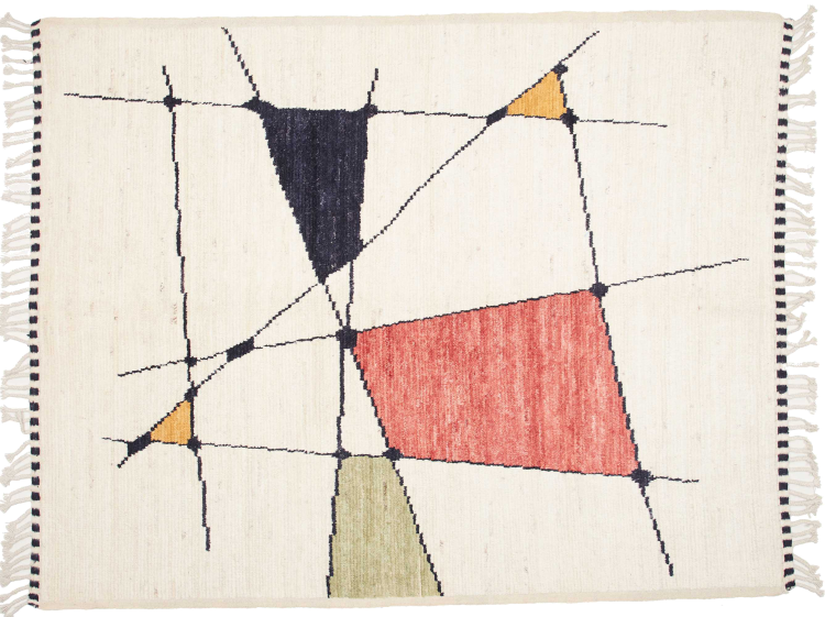 Teppich-Nr.: 286503008863090 Größe: 230x179 cm Dicke: ca. 25 mm Knoten: 80 000 - 100 000 / m² Verarbeitung: Handgeknüpft Flor: Handgesponnene Wolle Kette: Baumwolle Ursprung: Pakistan Alter: Neu Gewicht: ca. 16 kg Auch bekannt als Beni Ourain, Beni Ouarain, Boucherouite Anzahl auf Lager: Unikat - Nur 1 auf Lager