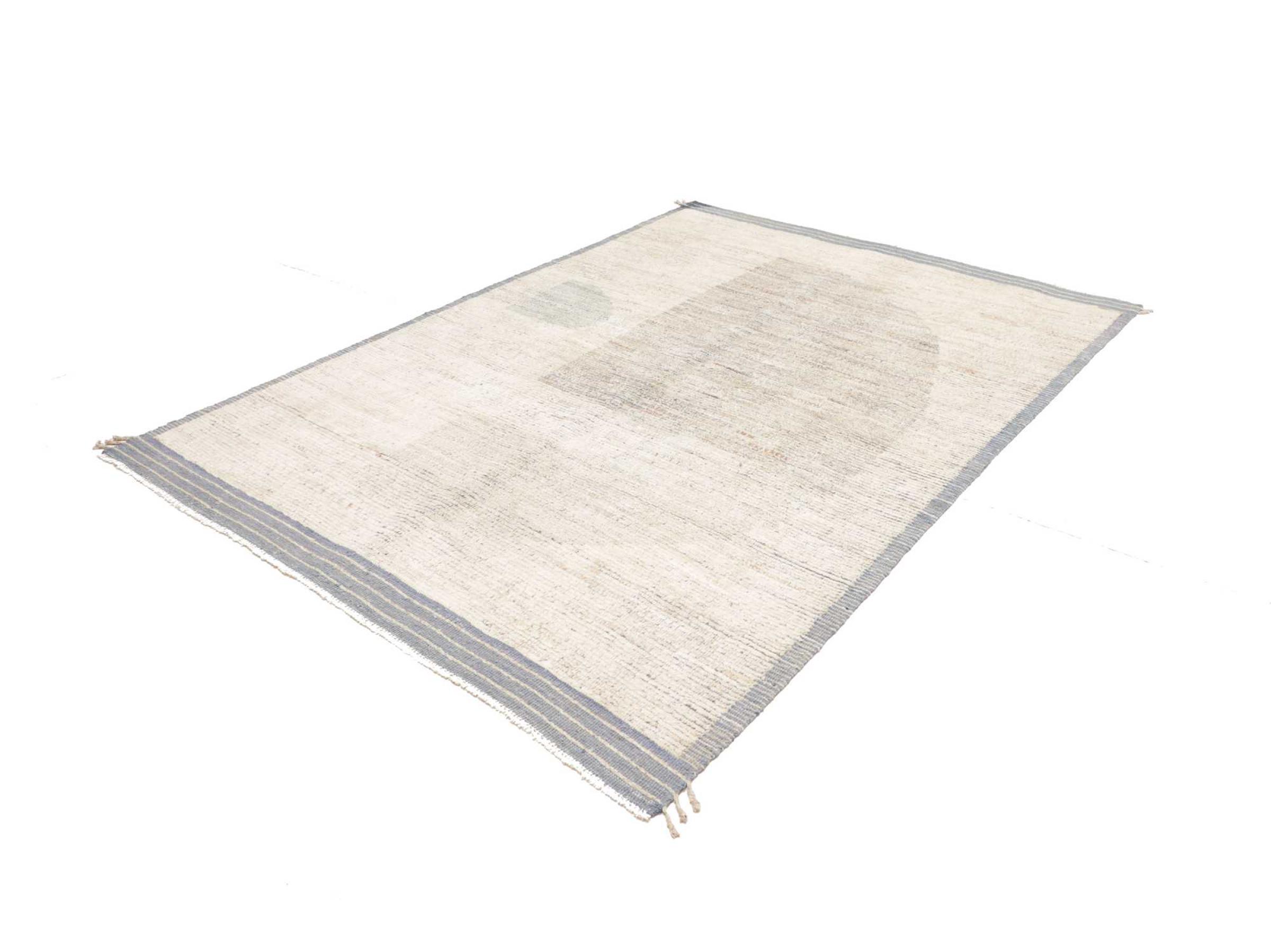 Dieser Teppich besteht aus von Hand gesponnener Schafwolle in höchster Qualitätsstufe. Vor allem im Iran (ehem. Persien), Afghanistan und Pakistan wird Wolle noch von Hand gesponnen, bevor die eigentliche Knüpfung des Teppichs beginnt. Wolle hat sich als natürliches und extrem strapazierfähiges Material über Jahrhunderte hinweg bewährt. Sie besitzt unter Anderem schmutzabweisende und wärmedämmende Eigenschaften. Zugleich ist Wolle unvergleichlich weich und bringt einen natürlichen Glanz mit sich.