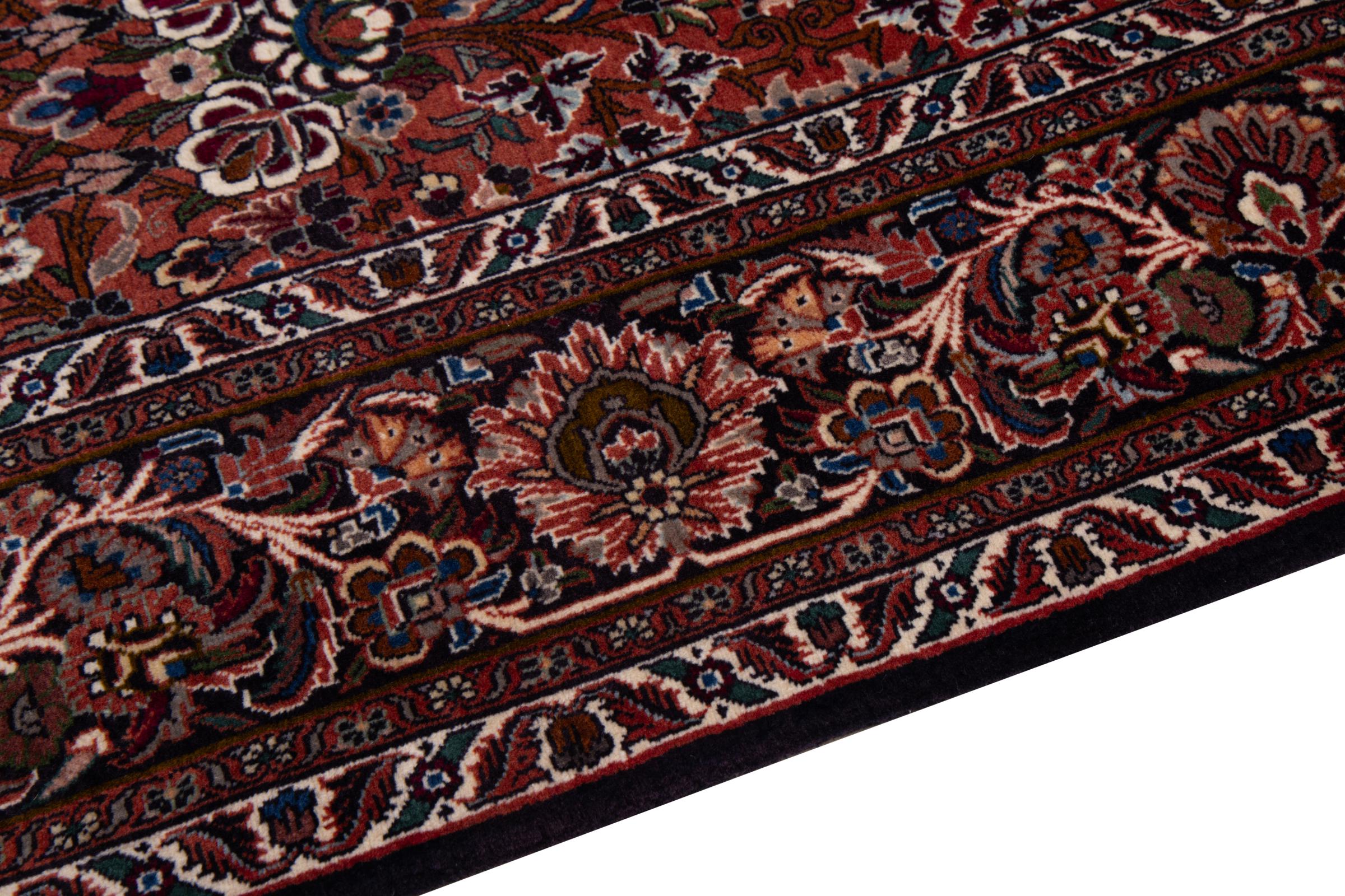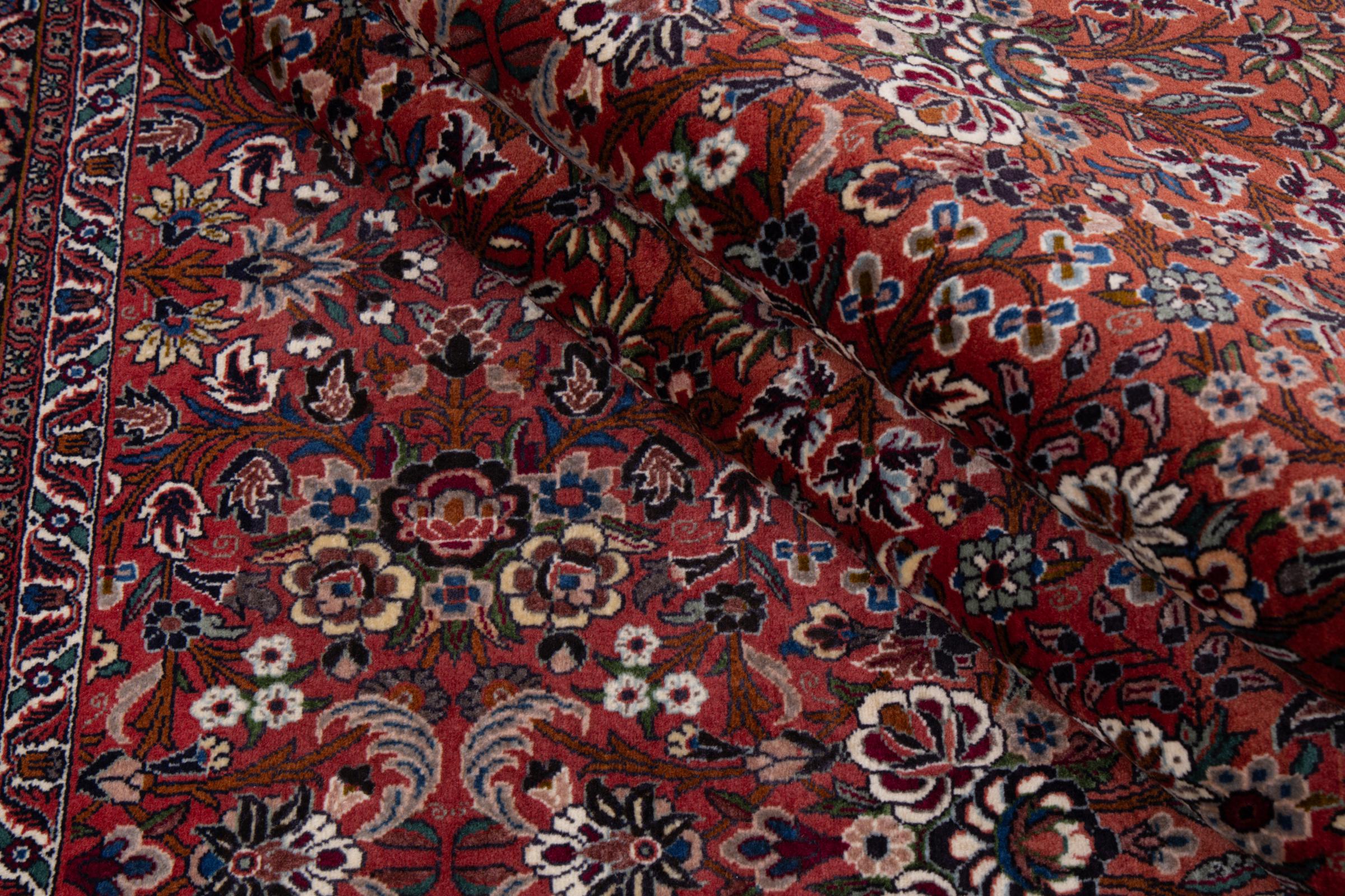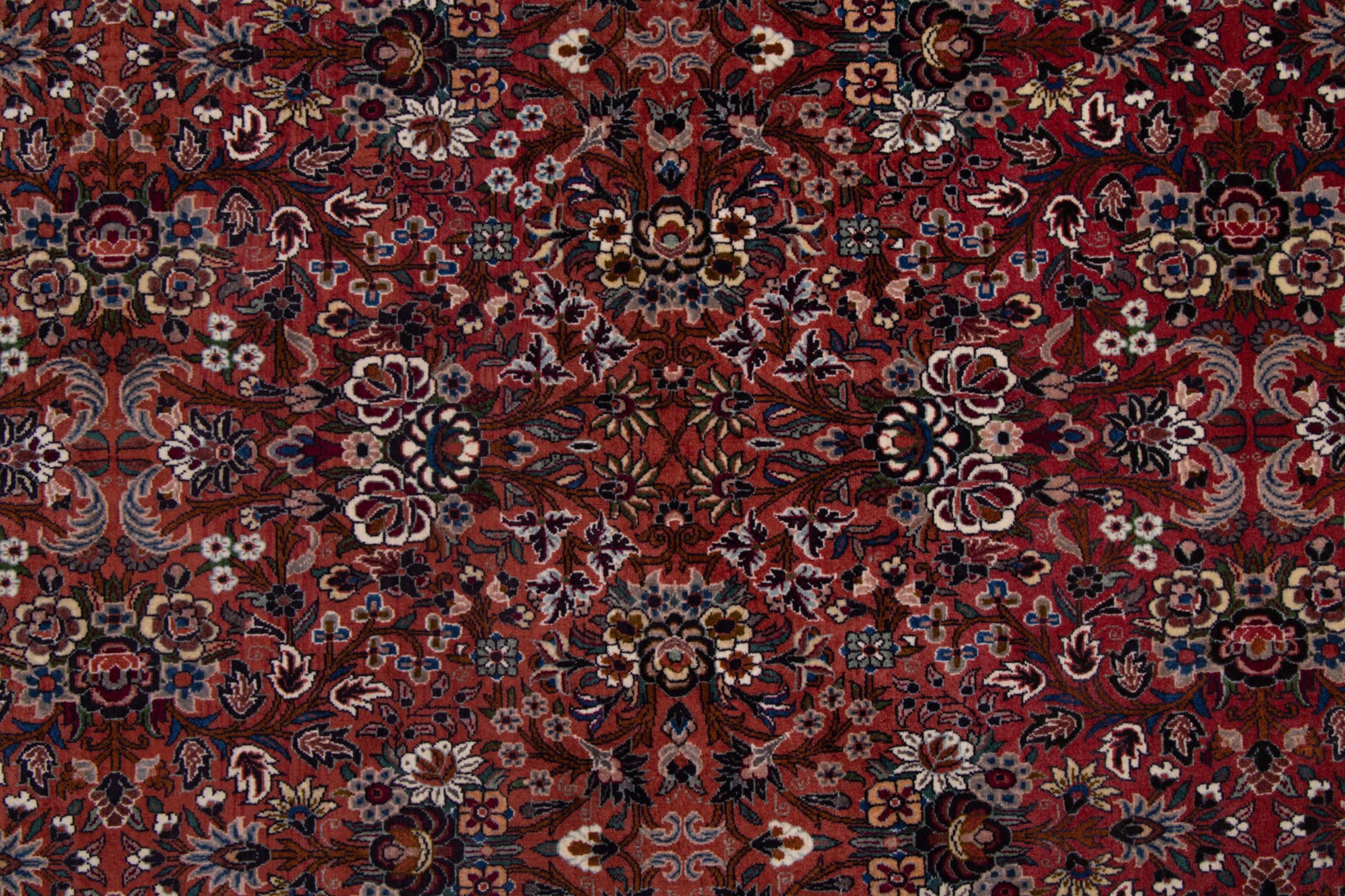 Dieser Perserteppich wurde in einer kurdischen Kleinstadt im westlichen Iran handgeknüpft. Der Bidjar-Teppich steht für hervorragende Qualität. Sein fester Flor besticht durch seine Kompaktheit und damit Verschleißfestigkeit. So wird die Wolle mit einem Kamm so fest zusammengedrückt, dass der Flor nahezu senkrecht nach oben steht. Gröbere Schmutzpartikel haben so kaum eine Chance einzudringen.