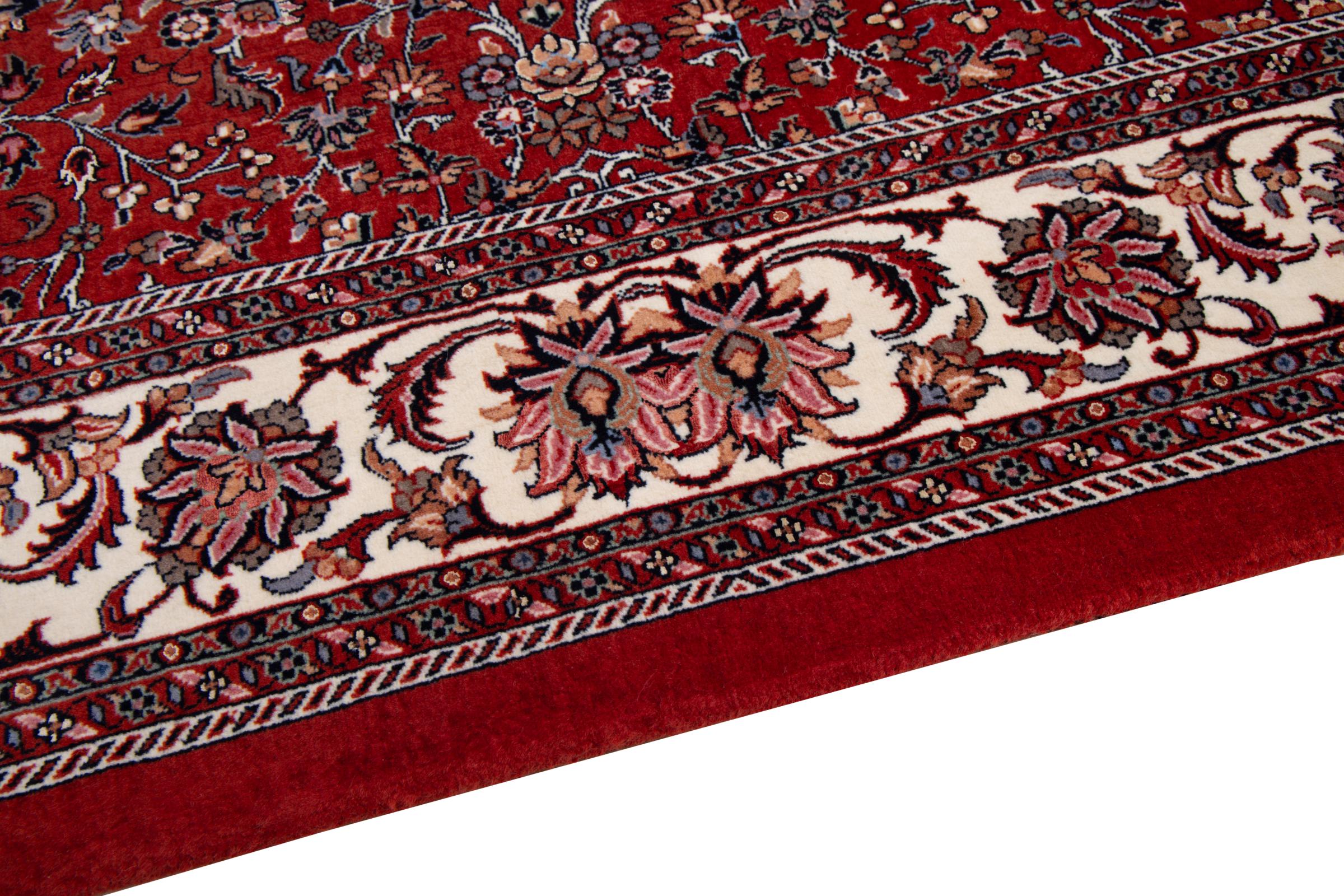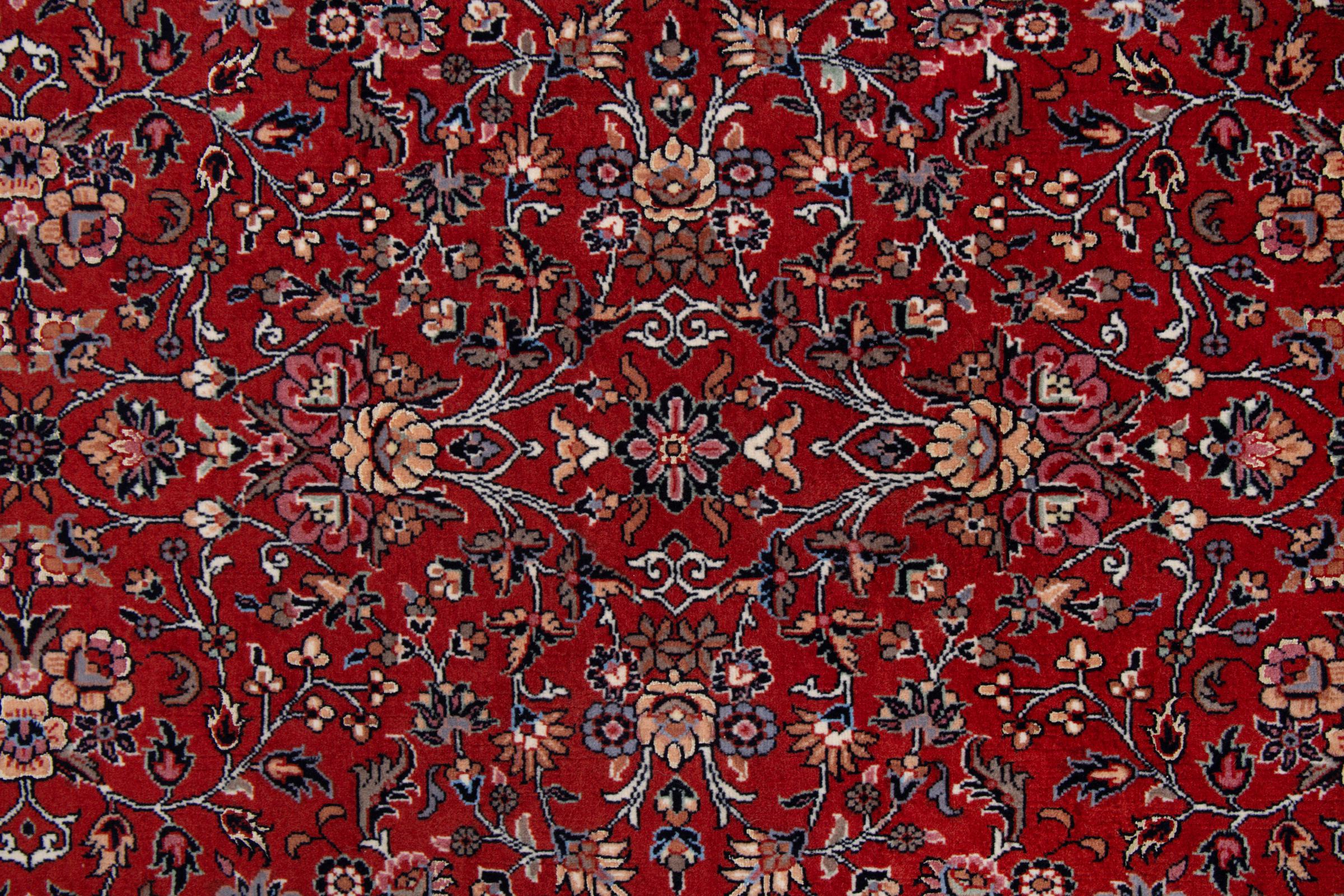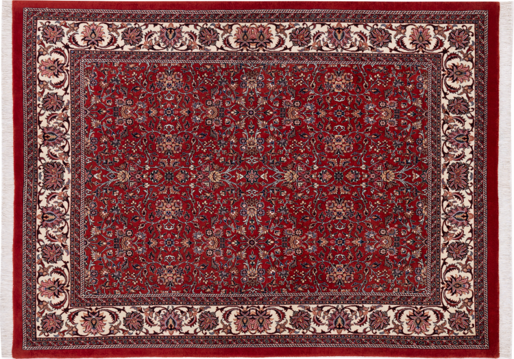 Dieser Perserteppich wurde in einer kurdischen Kleinstadt im westlichen Iran handgeknüpft. Der Bidjar-Teppich steht für hervorragende Qualität. Sein fester Flor besticht durch seine Kompaktheit und damit Verschleißfestigkeit. So wird die Wolle mit einem Kamm so fest zusammengedrückt, dass der Flor nahezu senkrecht nach oben steht. Gröbere Schmutzpartikel haben so kaum eine Chance einzudringen.