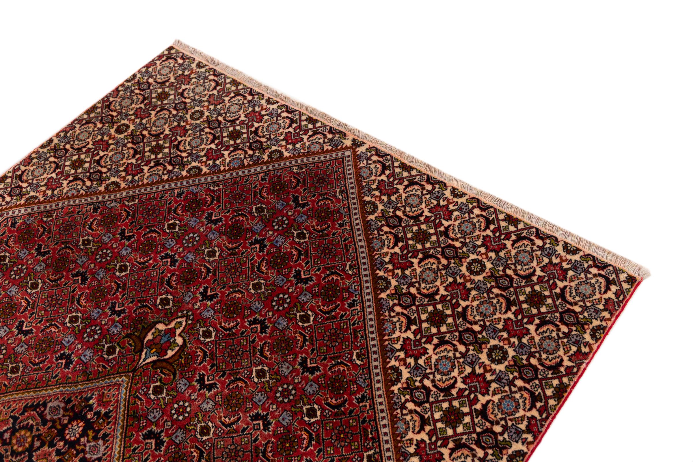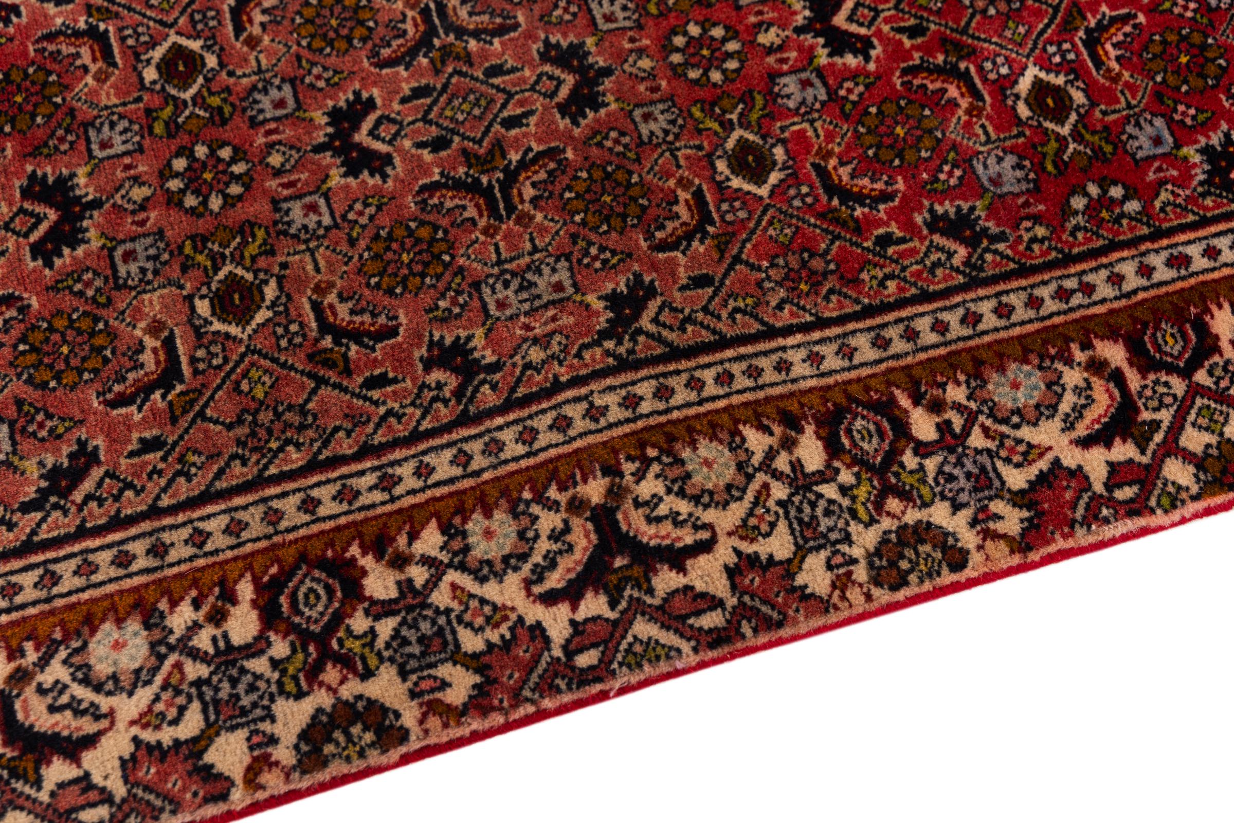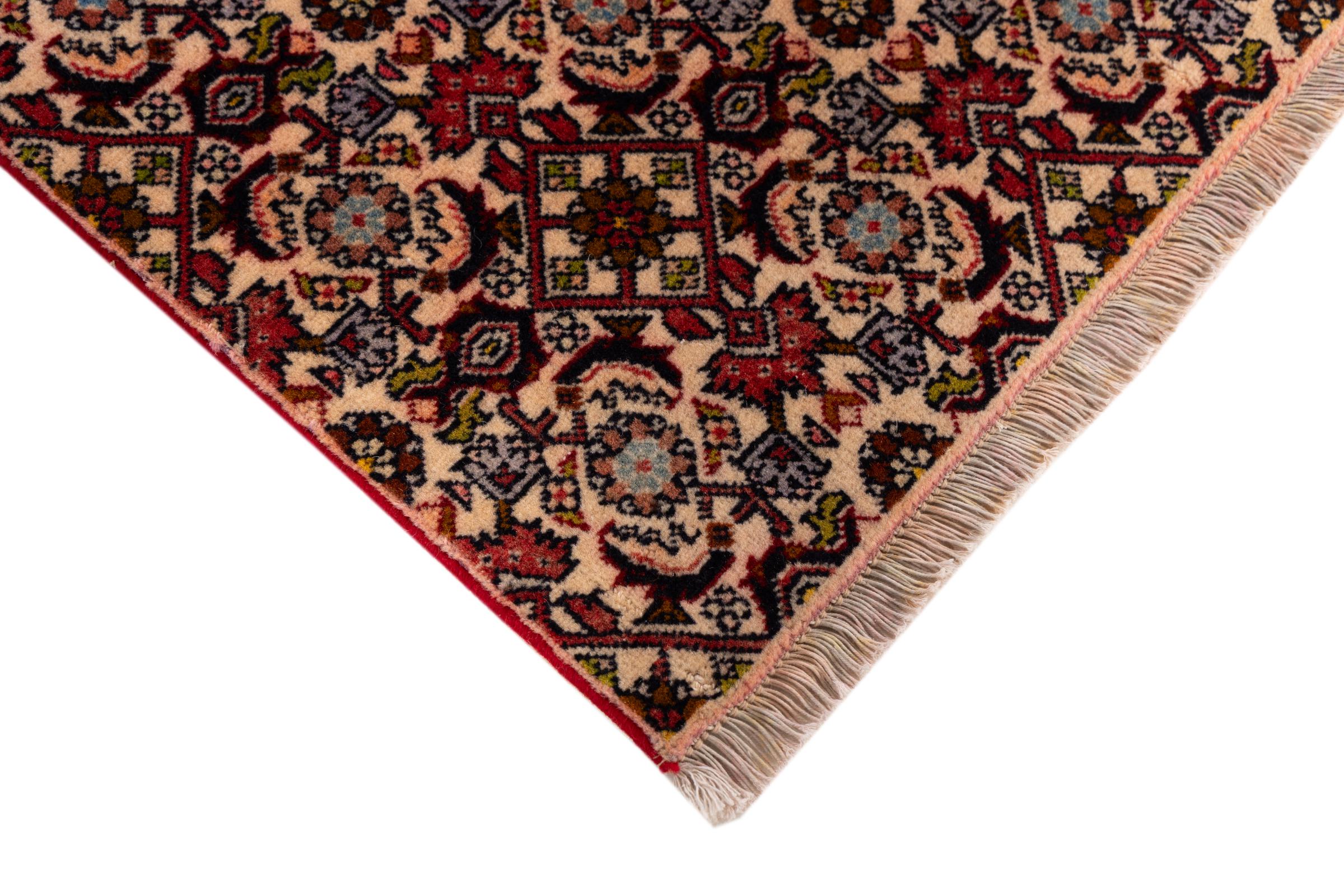 Dieser Perserteppich wurde in einer kurdischen Kleinstadt im westlichen Iran handgeknüpft. Der Bidjar-Teppich steht für hervorragende Qualität. Sein fester Flor besticht durch seine Kompaktheit und damit Verschleißfestigkeit. So wird die Wolle mit einem Kamm so fest zusammengedrückt, dass der Flor nahezu senkrecht nach oben steht. Gröbere Schmutzpartikel haben so kaum eine Chance einzudringen.