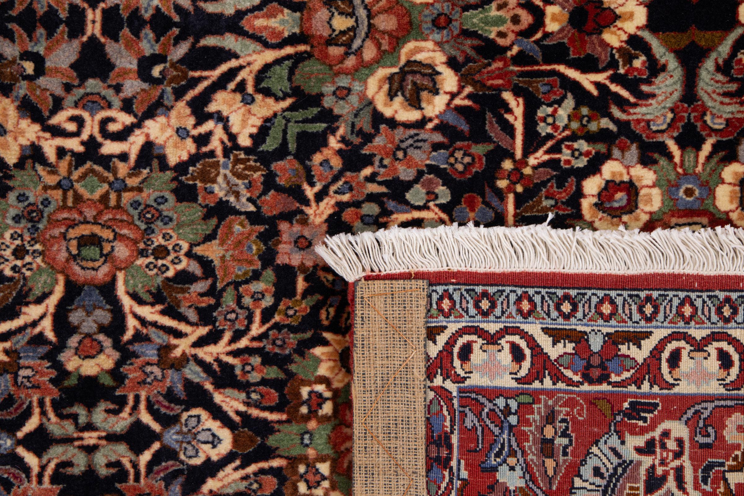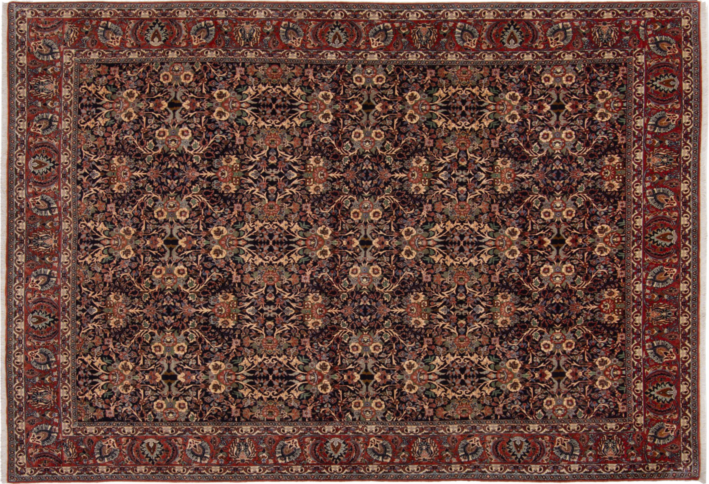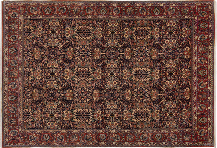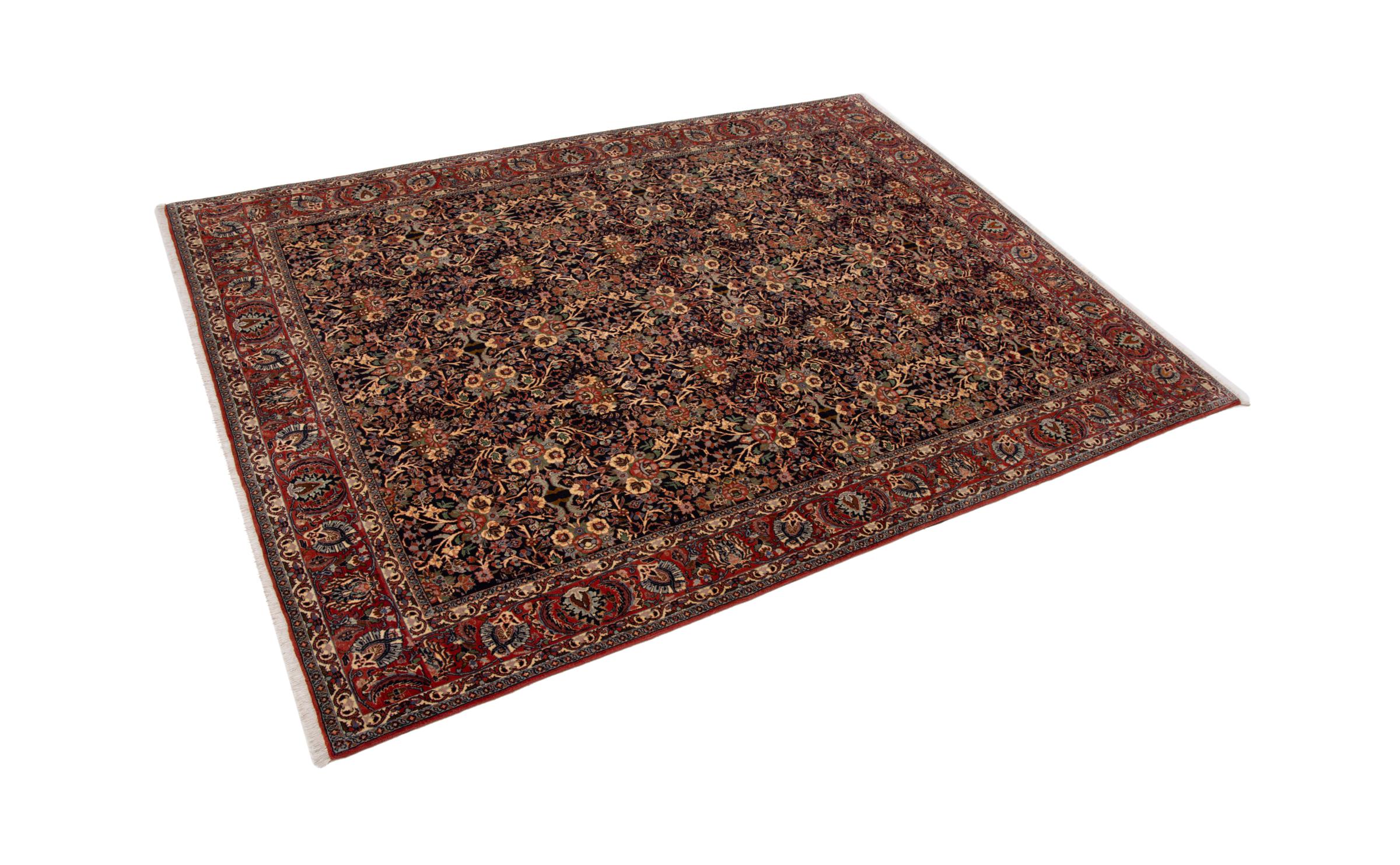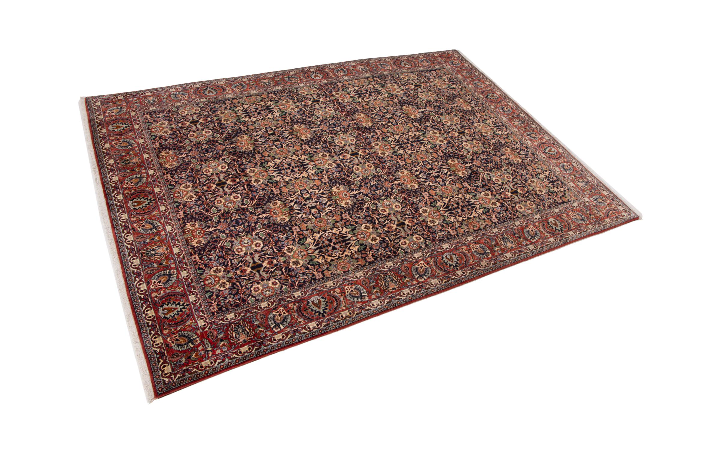 Dieser Perserteppich wurde in einer kurdischen Kleinstadt im westlichen Iran handgeknüpft. Der Bidjar-Teppich steht für hervorragende Qualität. Sein fester Flor besticht durch seine Kompaktheit und damit Verschleißfestigkeit. So wird die Wolle mit einem Kamm so fest zusammengedrückt, dass der Flor nahezu senkrecht nach oben steht. Gröbere Schmutzpartikel haben so kaum eine Chance einzudringen.