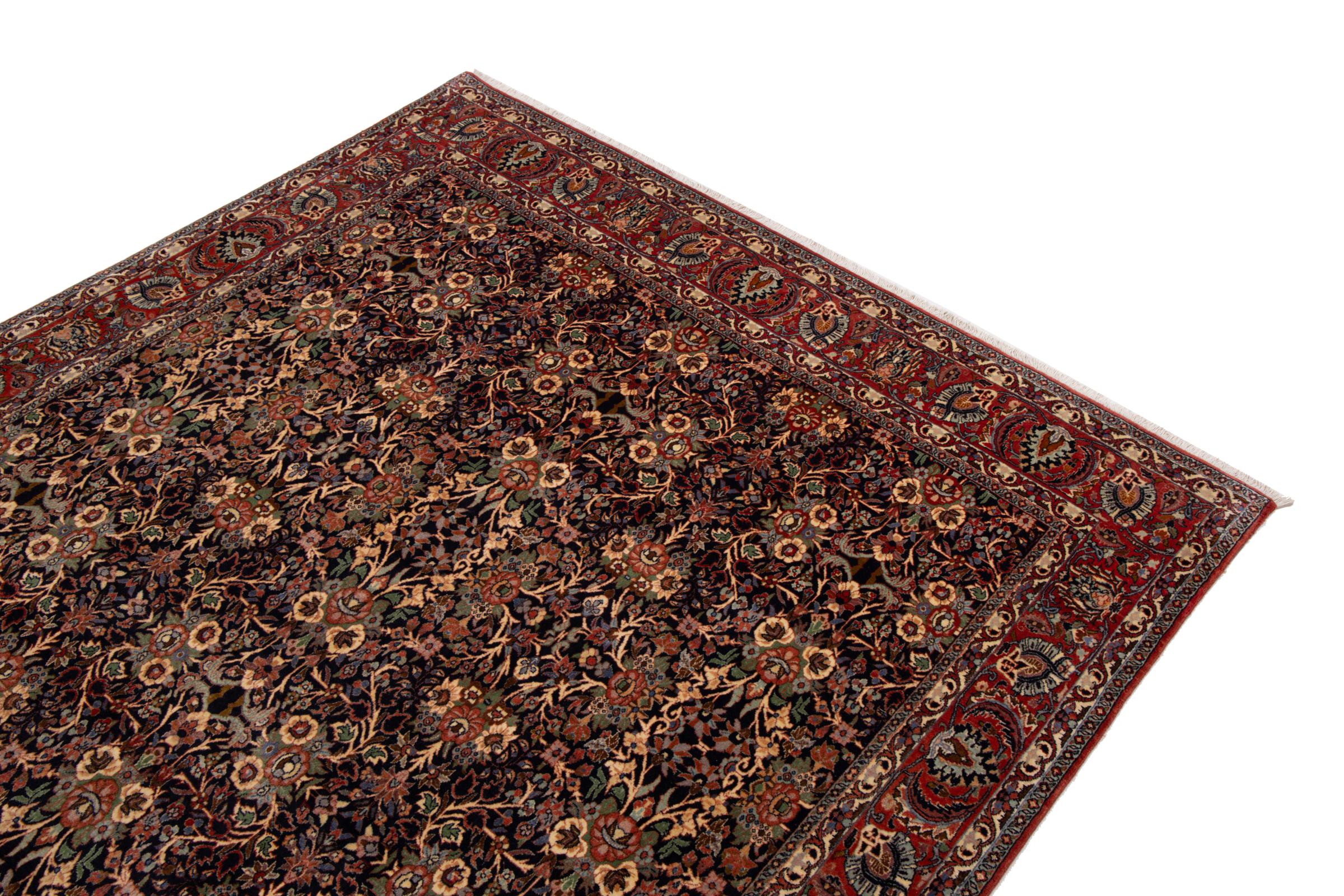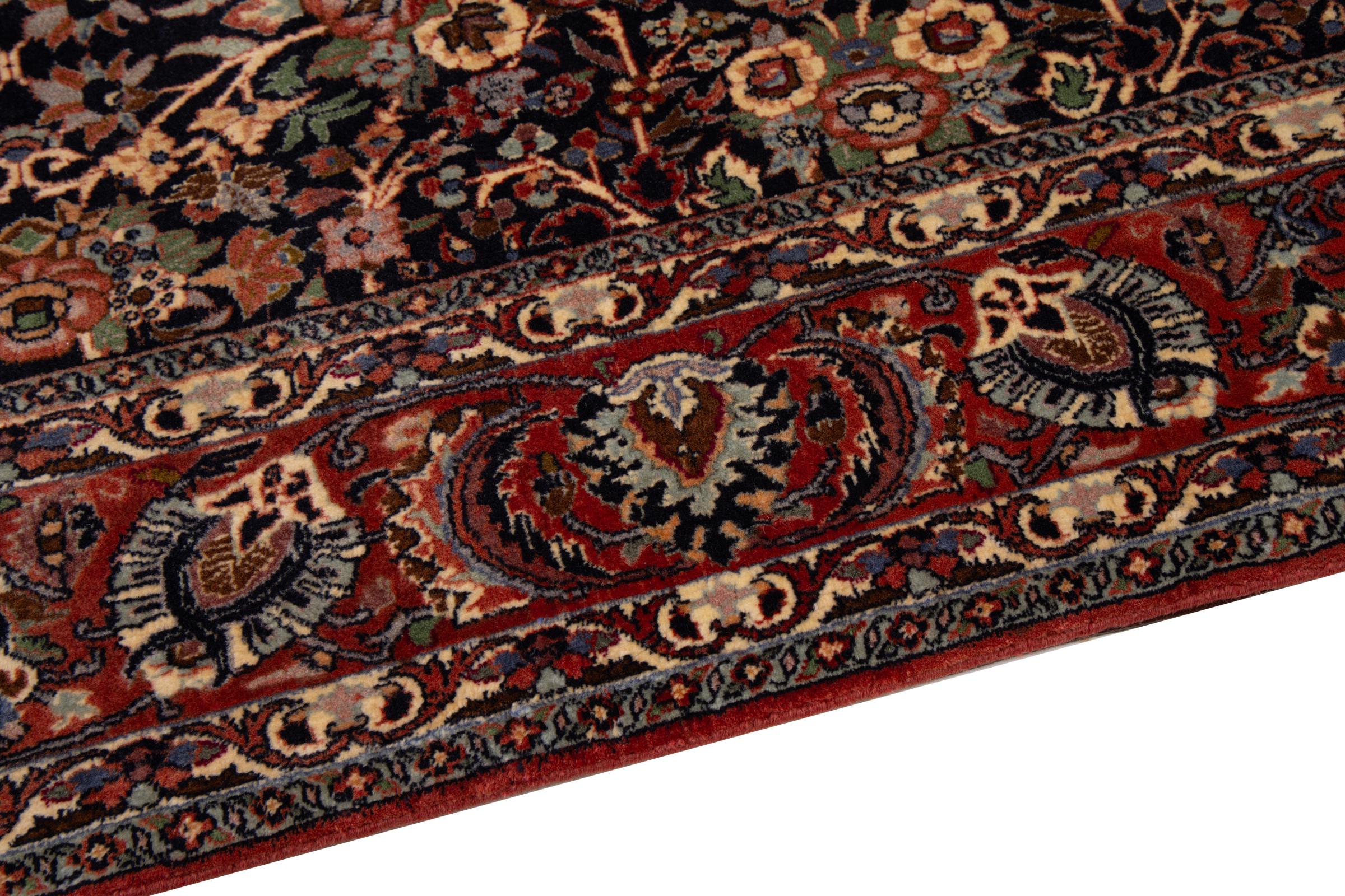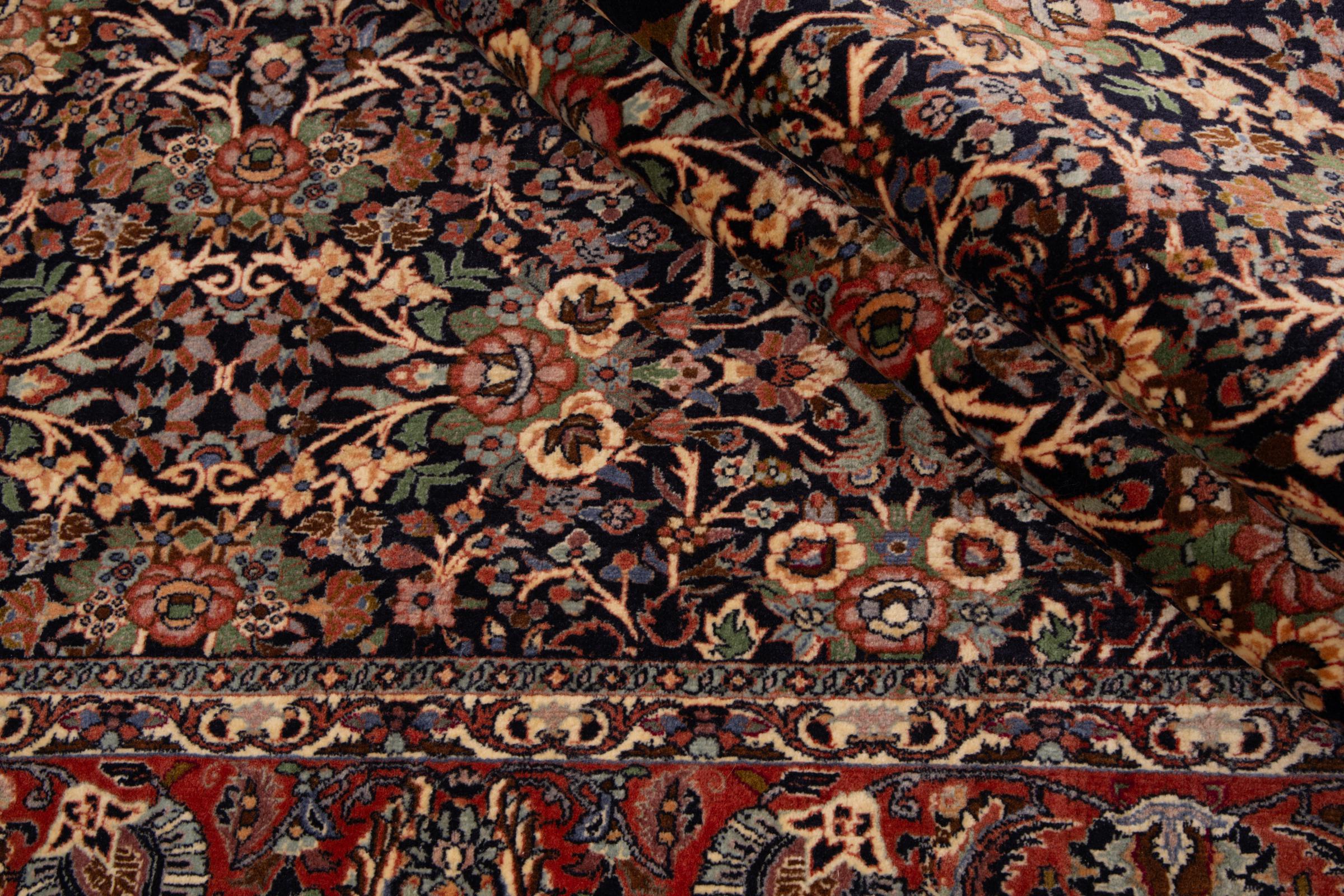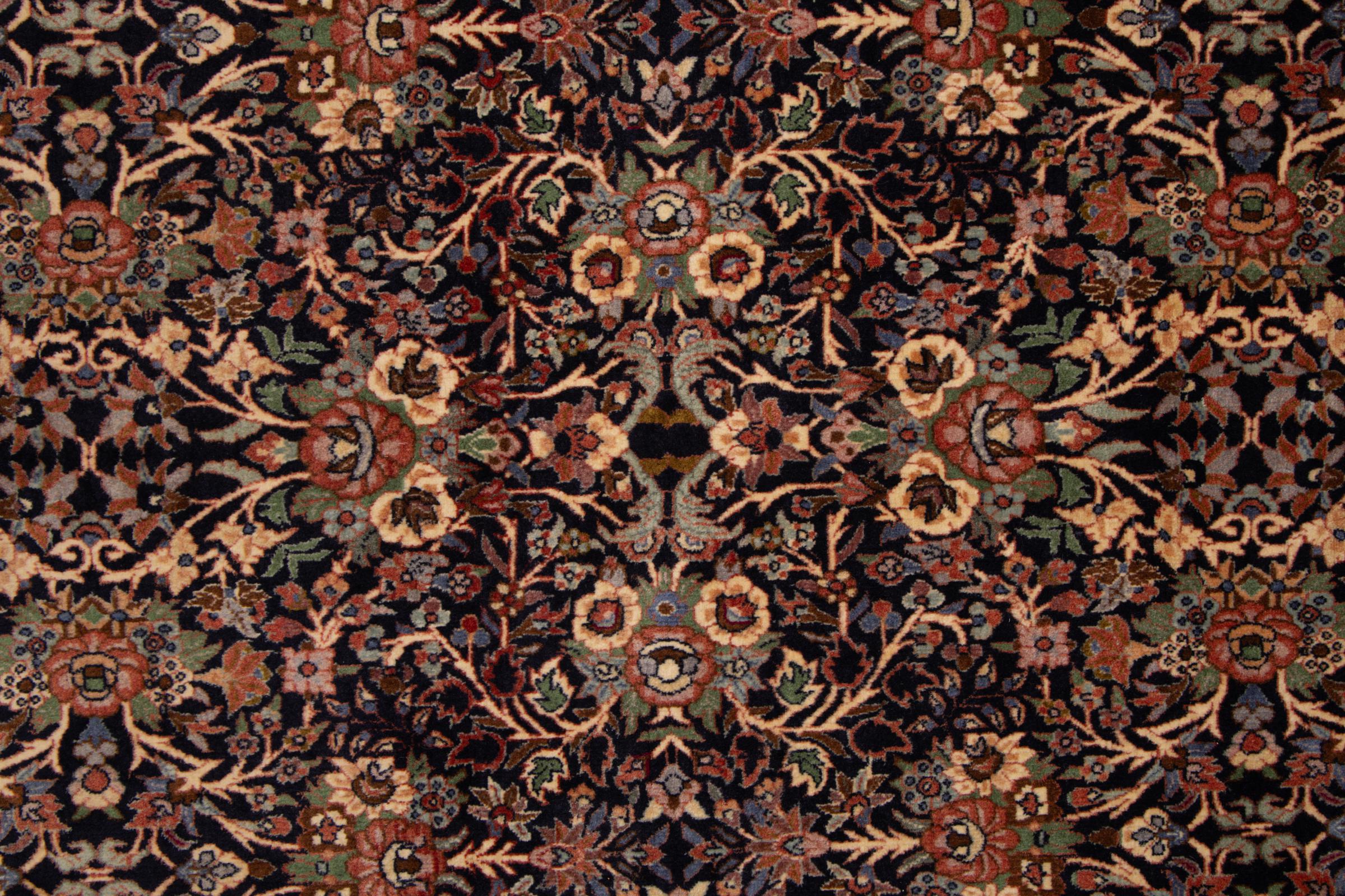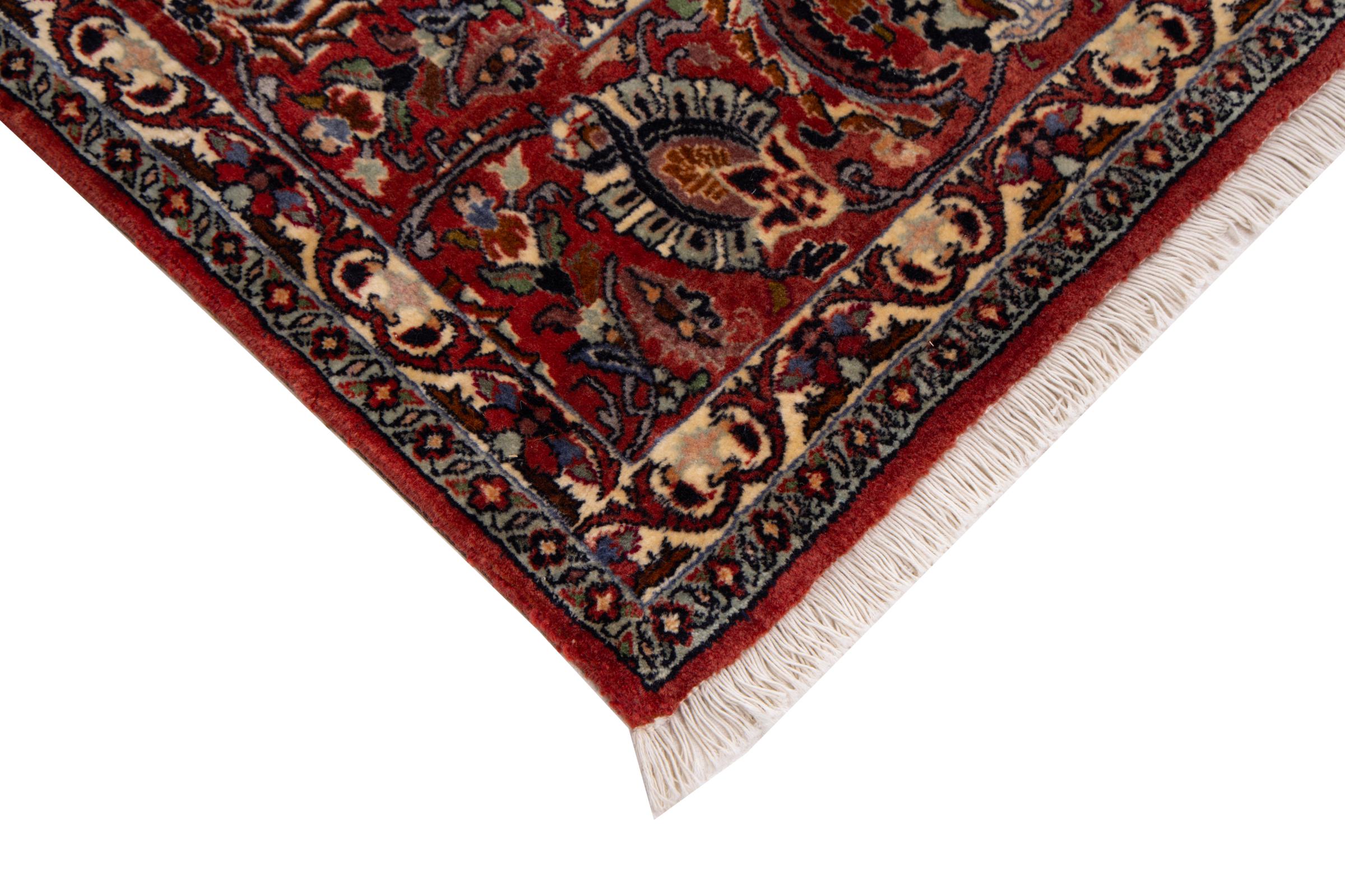 Dieser Perserteppich wurde in einer kurdischen Kleinstadt im westlichen Iran handgeknüpft. Der Bidjar-Teppich steht für hervorragende Qualität. Sein fester Flor besticht durch seine Kompaktheit und damit Verschleißfestigkeit. So wird die Wolle mit einem Kamm so fest zusammengedrückt, dass der Flor nahezu senkrecht nach oben steht. Gröbere Schmutzpartikel haben so kaum eine Chance einzudringen.