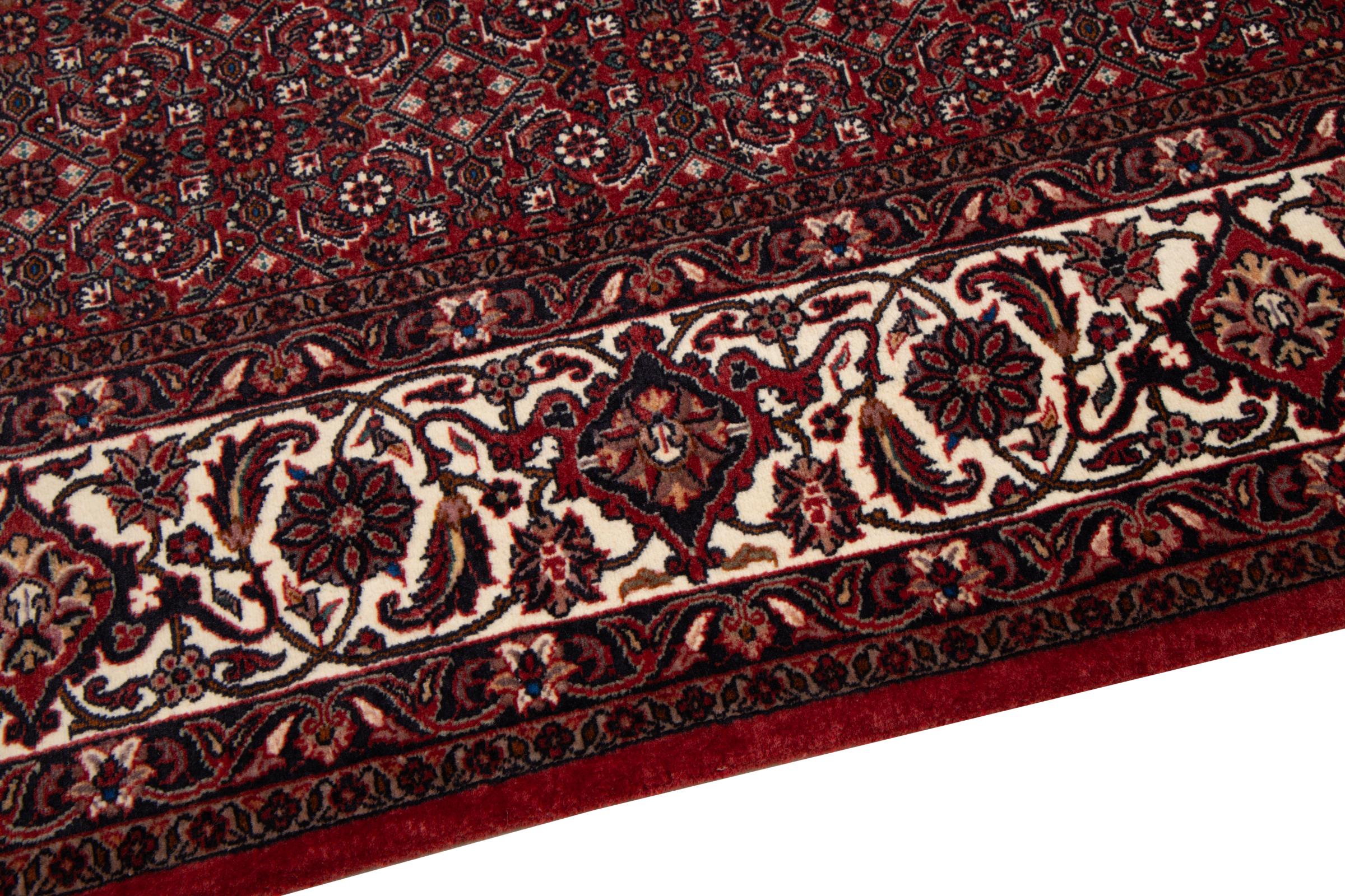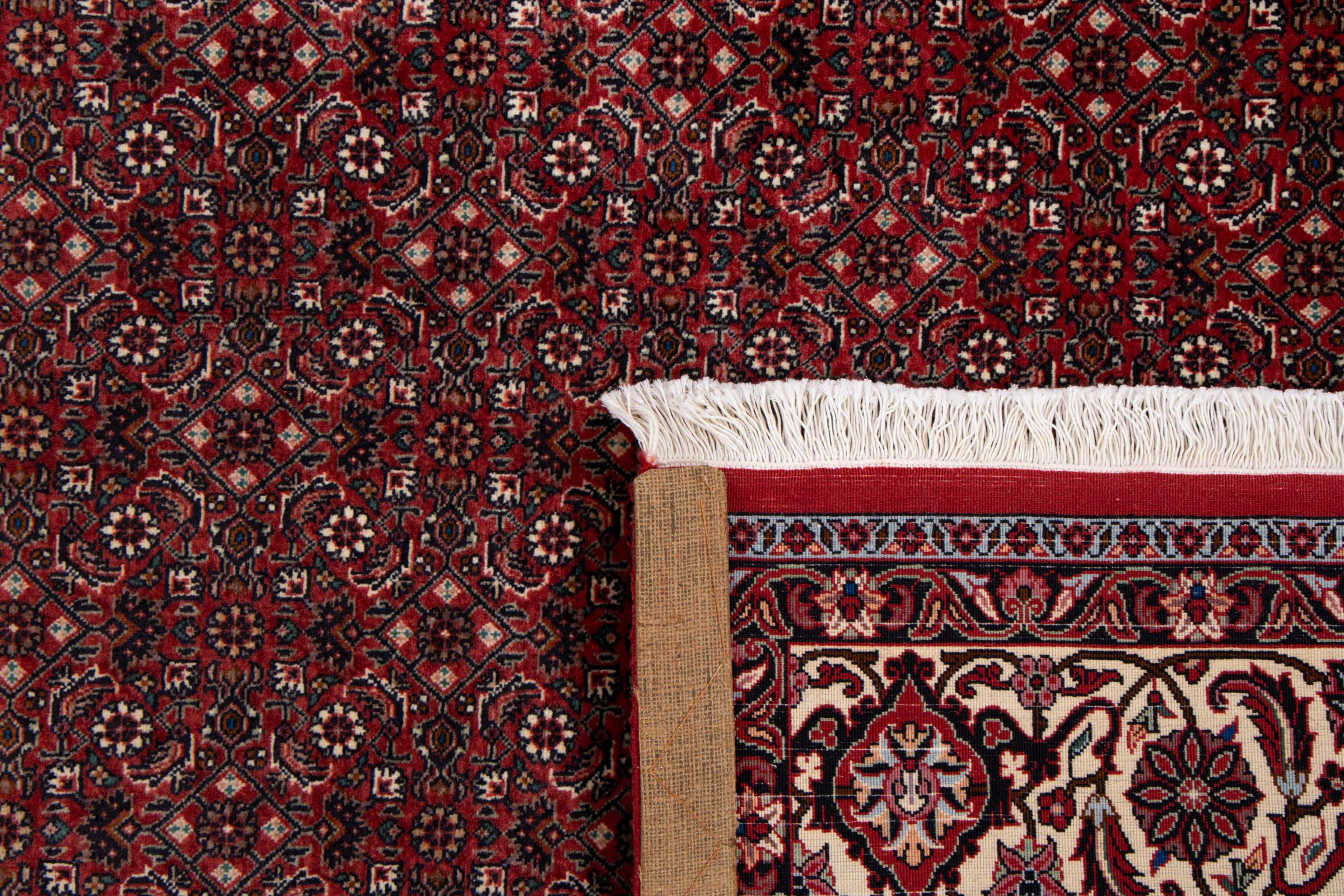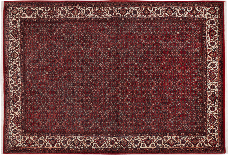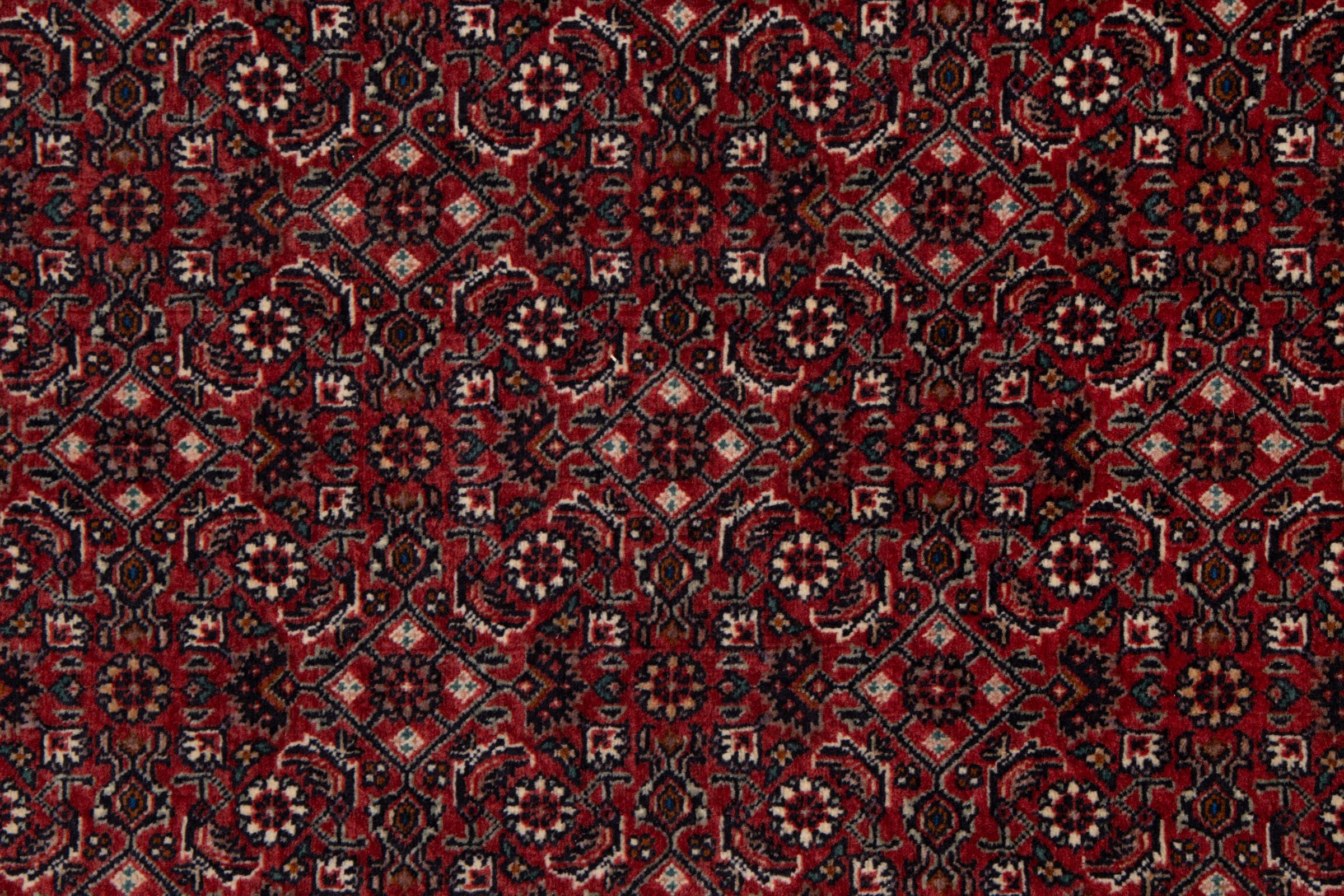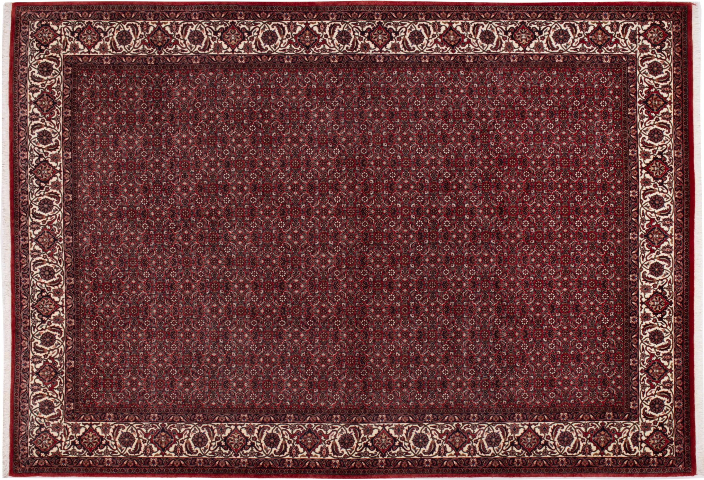 Dieser Perserteppich wurde in einer kurdischen Kleinstadt im westlichen Iran handgeknüpft. Der Bidjar-Teppich steht für hervorragende Qualität. Sein fester Flor besticht durch seine Kompaktheit und damit Verschleißfestigkeit. So wird die Wolle mit einem Kamm so fest zusammengedrückt, dass der Flor nahezu senkrecht nach oben steht. Gröbere Schmutzpartikel haben so kaum eine Chance einzudringen.