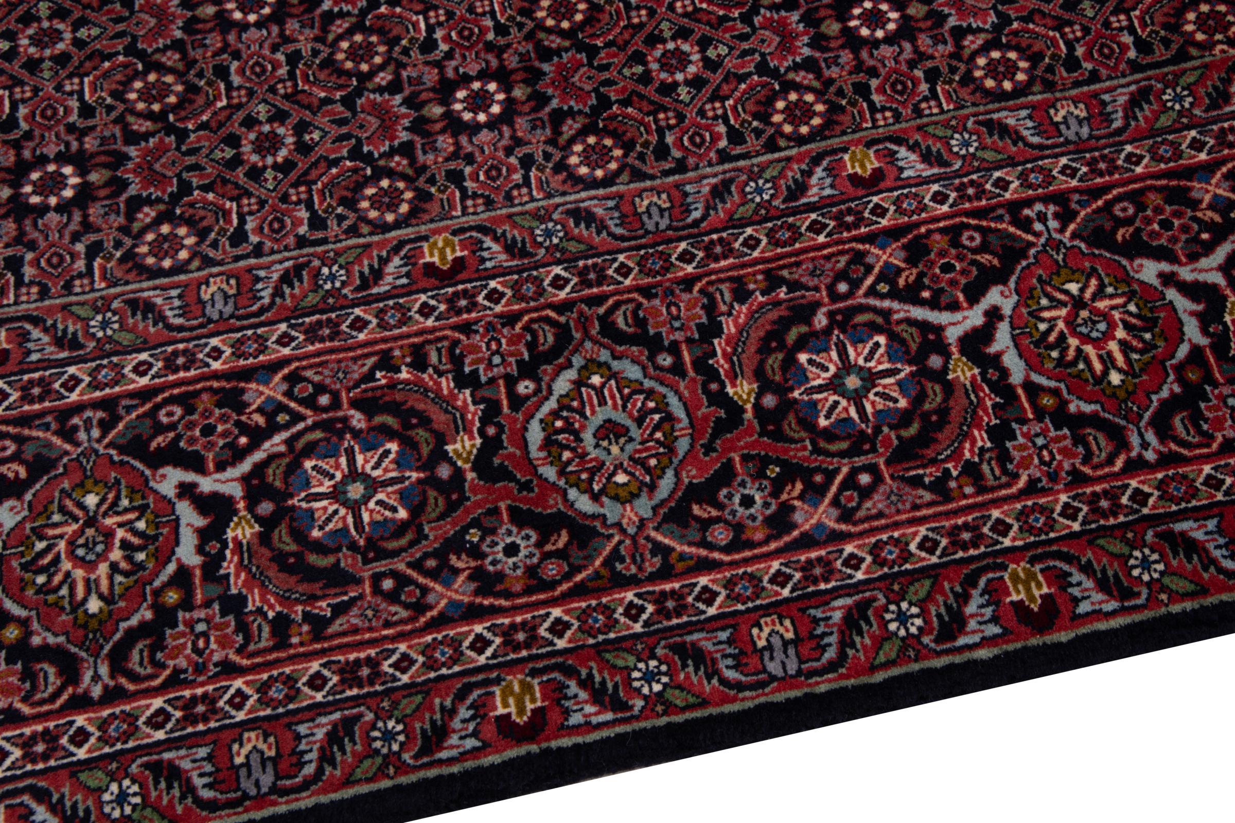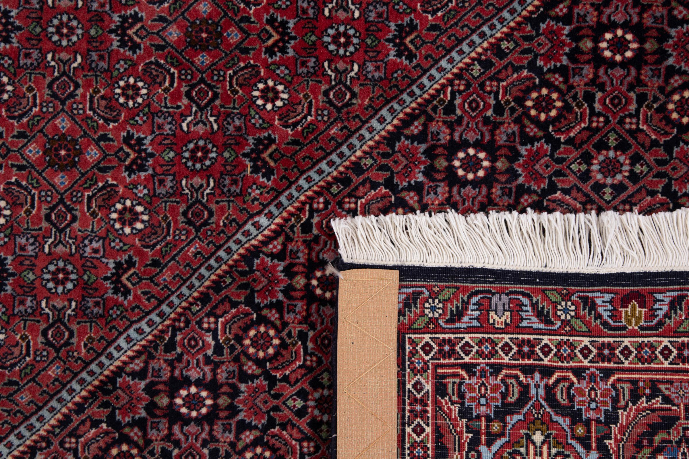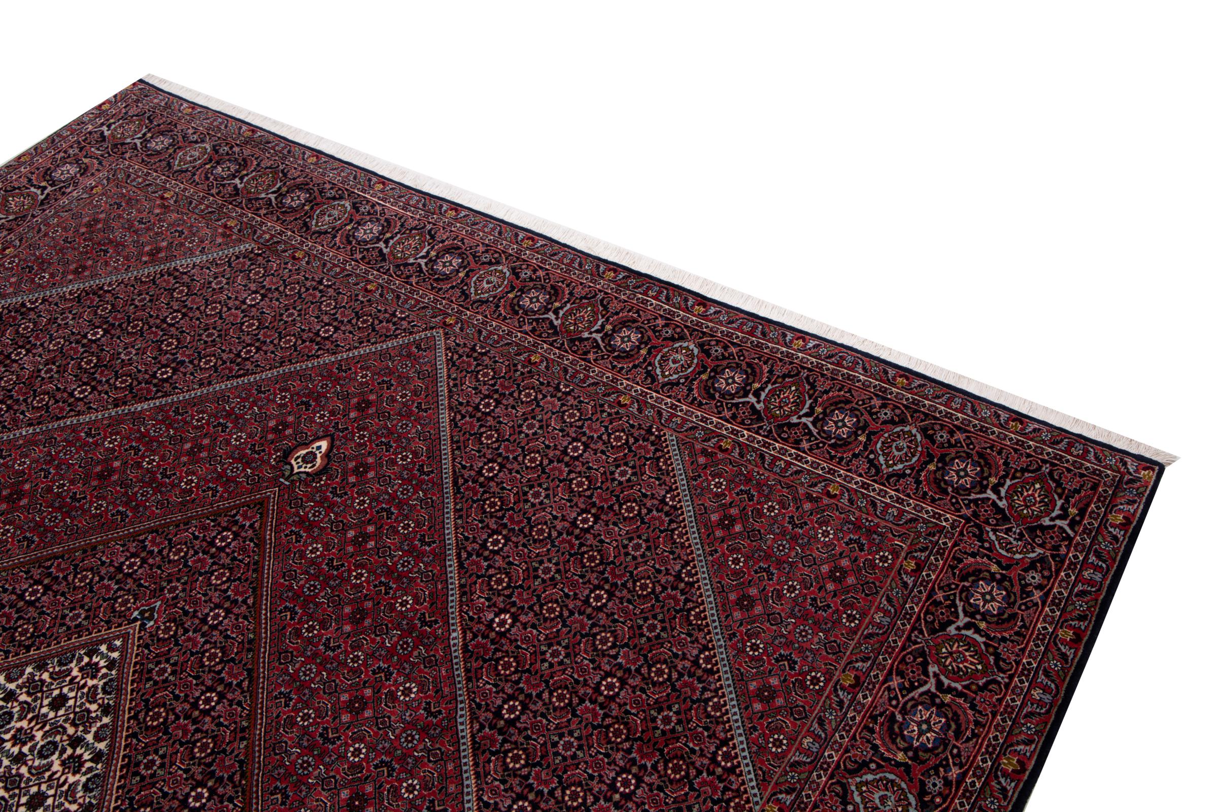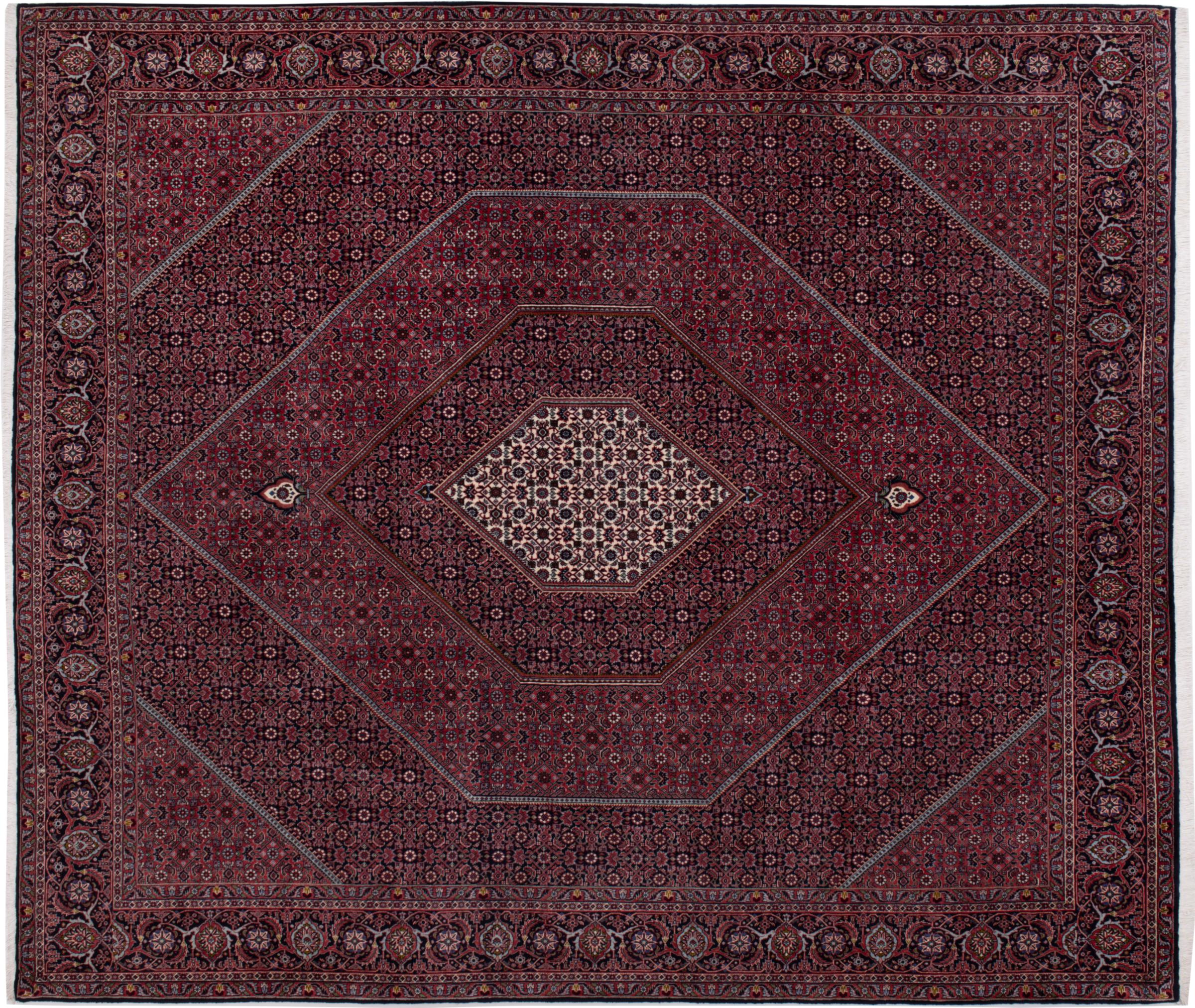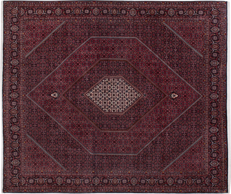 Dieser Perserteppich wurde in einer kurdischen Kleinstadt im westlichen Iran handgeknüpft. Der Bidjar-Teppich steht für hervorragende Qualität. Sein fester Flor besticht durch seine Kompaktheit und damit Verschleißfestigkeit. So wird die Wolle mit einem Kamm so fest zusammengedrückt, dass der Flor nahezu senkrecht nach oben steht. Gröbere Schmutzpartikel haben so kaum eine Chance einzudringen.