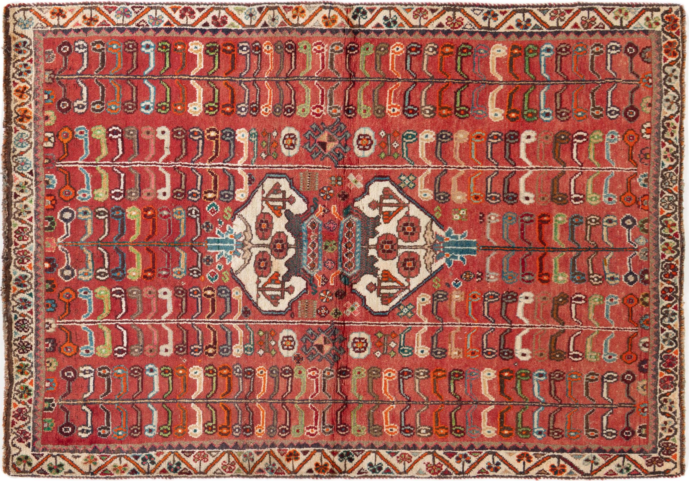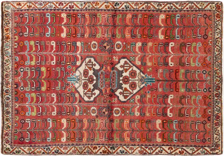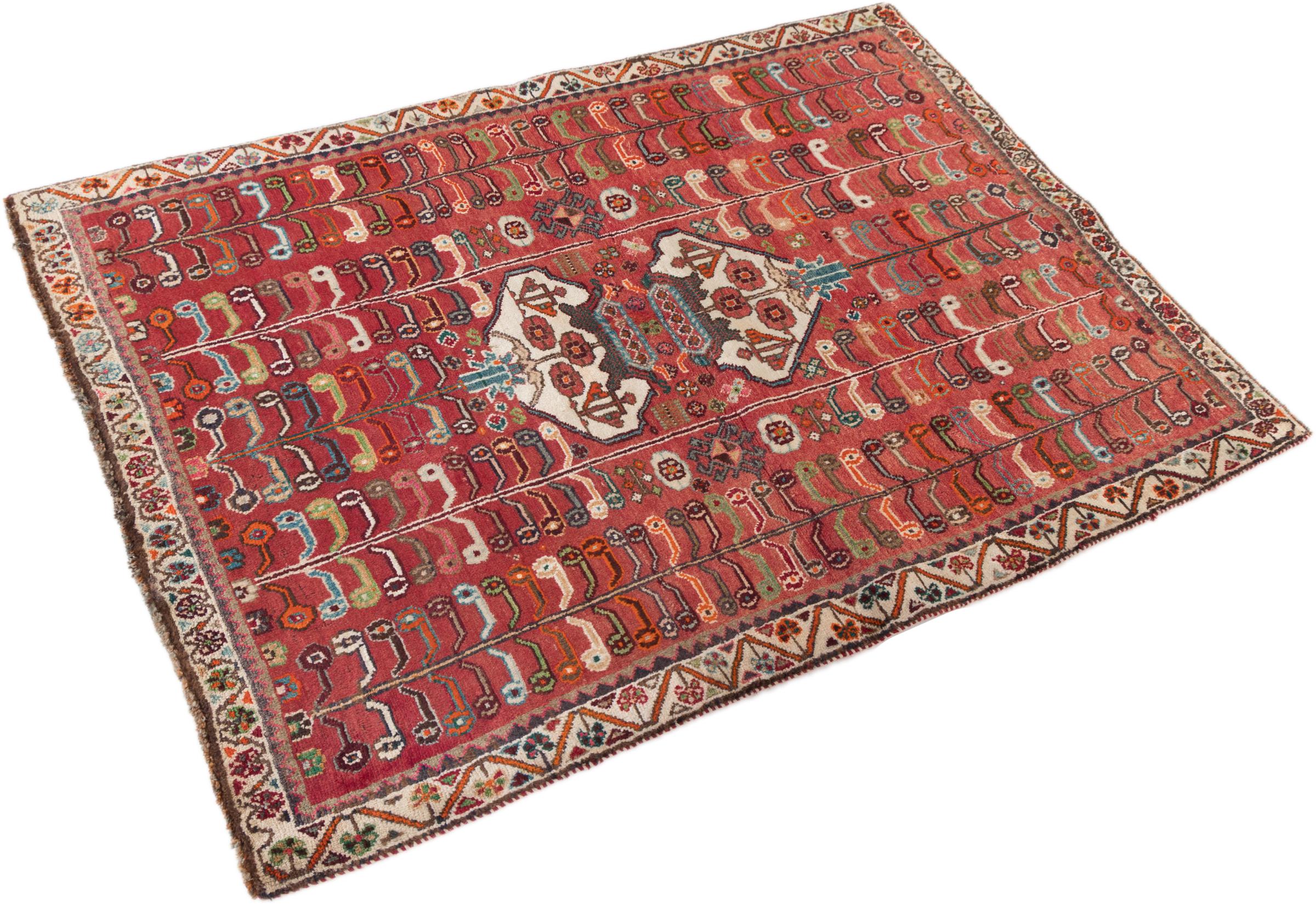 Dieser Teppich gehört zu Dorf- und Nomadenteppichen aus dem Iran, ehemals Persien. Diese Art von Teppich wird in kleineren Städten und Dörfern von Hand in alter Tradition geknüpft. Auch Nomaden knüpfen noch Perserteppiche unter freiem Himmel. Die Teppiche werden ohne Vorlage und komplett aus dem Kopf geknüpft. Sie sind gekennzeichnet durch klassische Ornamente, die in geradlinigen und geometrischen Mustern angelegt sind. Dank ihrer kulturell-traditionellen Herkunft, haben diese Teppiche einen einzigartigen Charakter, der das alte Persien verkörpert.