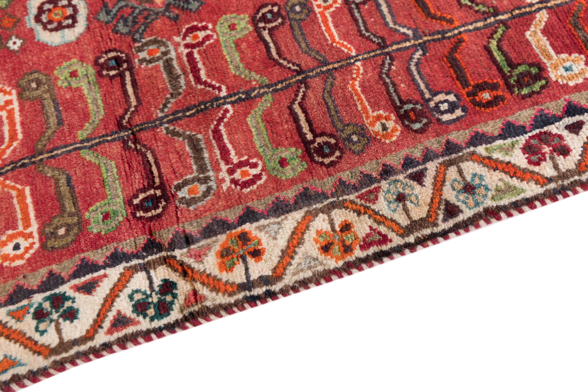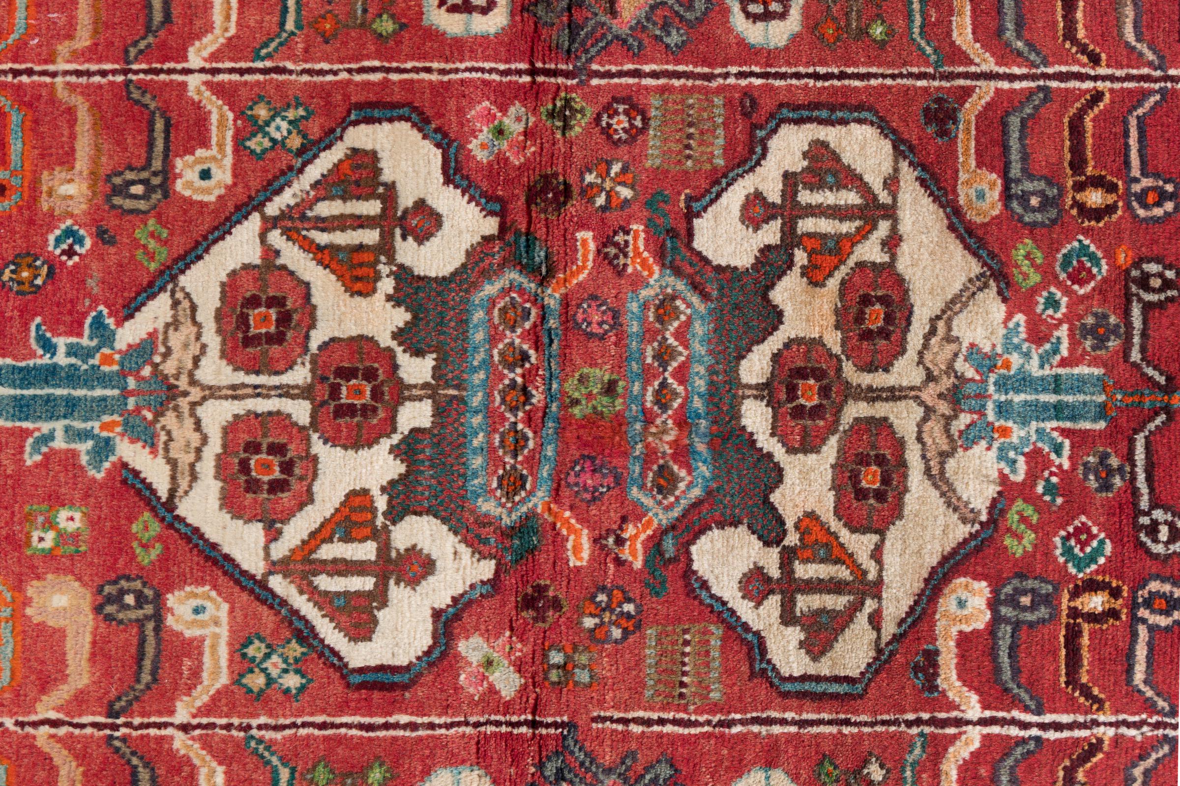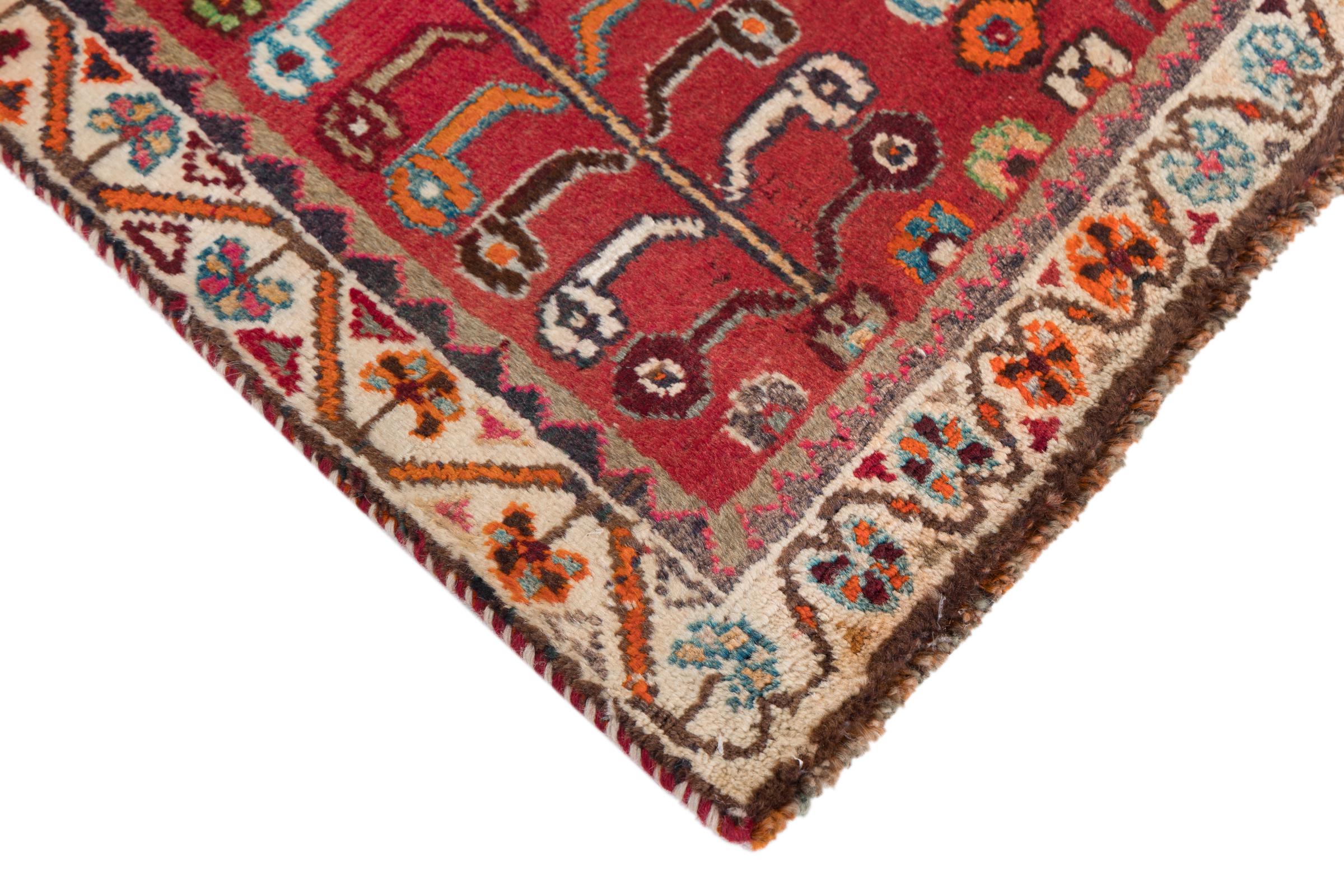 Dieser Teppich gehört zu Dorf- und Nomadenteppichen aus dem Iran, ehemals Persien. Diese Art von Teppich wird in kleineren Städten und Dörfern von Hand in alter Tradition geknüpft. Auch Nomaden knüpfen noch Perserteppiche unter freiem Himmel. Die Teppiche werden ohne Vorlage und komplett aus dem Kopf geknüpft. Sie sind gekennzeichnet durch klassische Ornamente, die in geradlinigen und geometrischen Mustern angelegt sind. Dank ihrer kulturell-traditionellen Herkunft, haben diese Teppiche einen einzigartigen Charakter, der das alte Persien verkörpert.