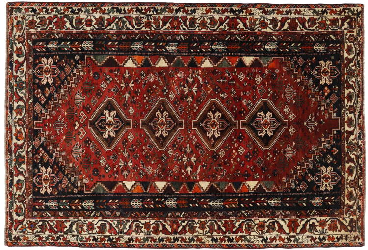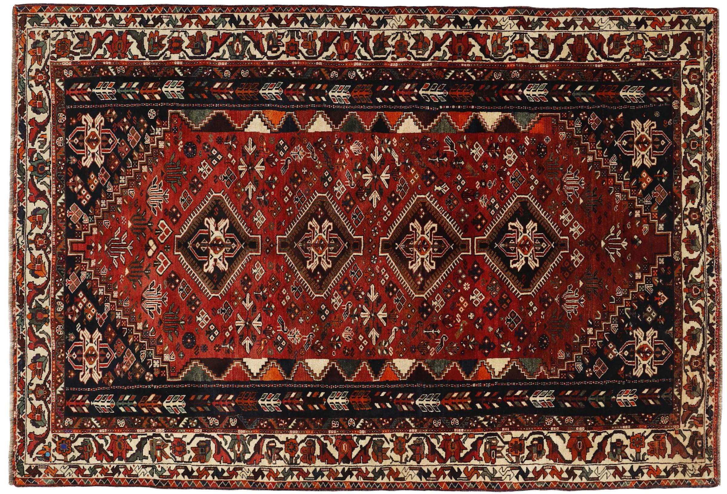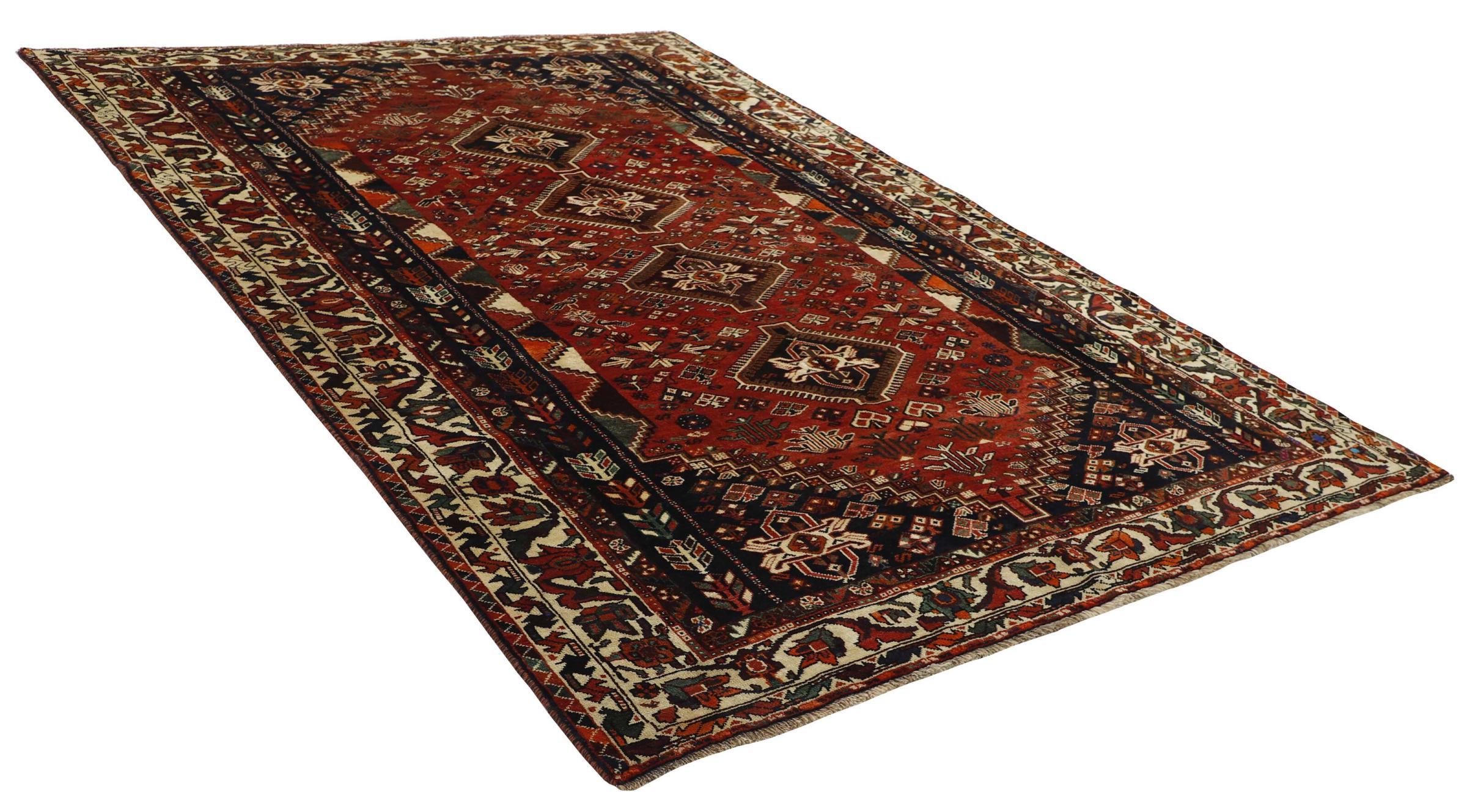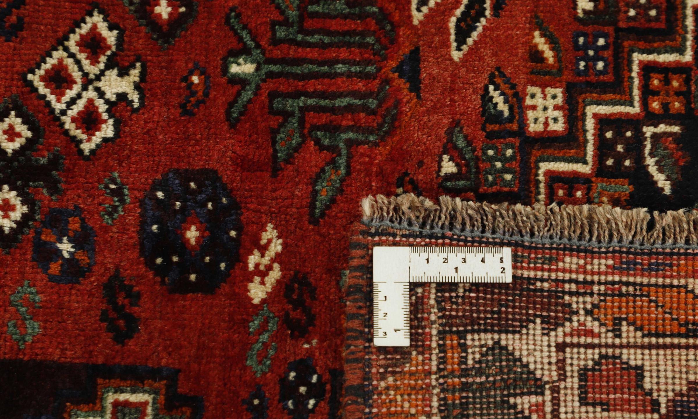 Dieser Teppich gehört zu Dorf- und Nomadenteppichen aus dem Iran, ehemals Persien. Diese Art von Teppich wird in kleineren Städten und Dörfern von Hand in alter Tradition geknüpft. Auch Nomaden knüpfen noch Perserteppiche unter freiem Himmel. Die Teppiche werden ohne Vorlage und komplett aus dem Kopf geknüpft. Sie sind gekennzeichnet durch klassische Ornamente, die in geradlinigen und geometrischen Mustern angelegt sind. Dank ihrer kulturell-traditionellen Herkunft, haben diese Teppiche einen einzigartigen Charakter, der das alte Persien verkörpert.
