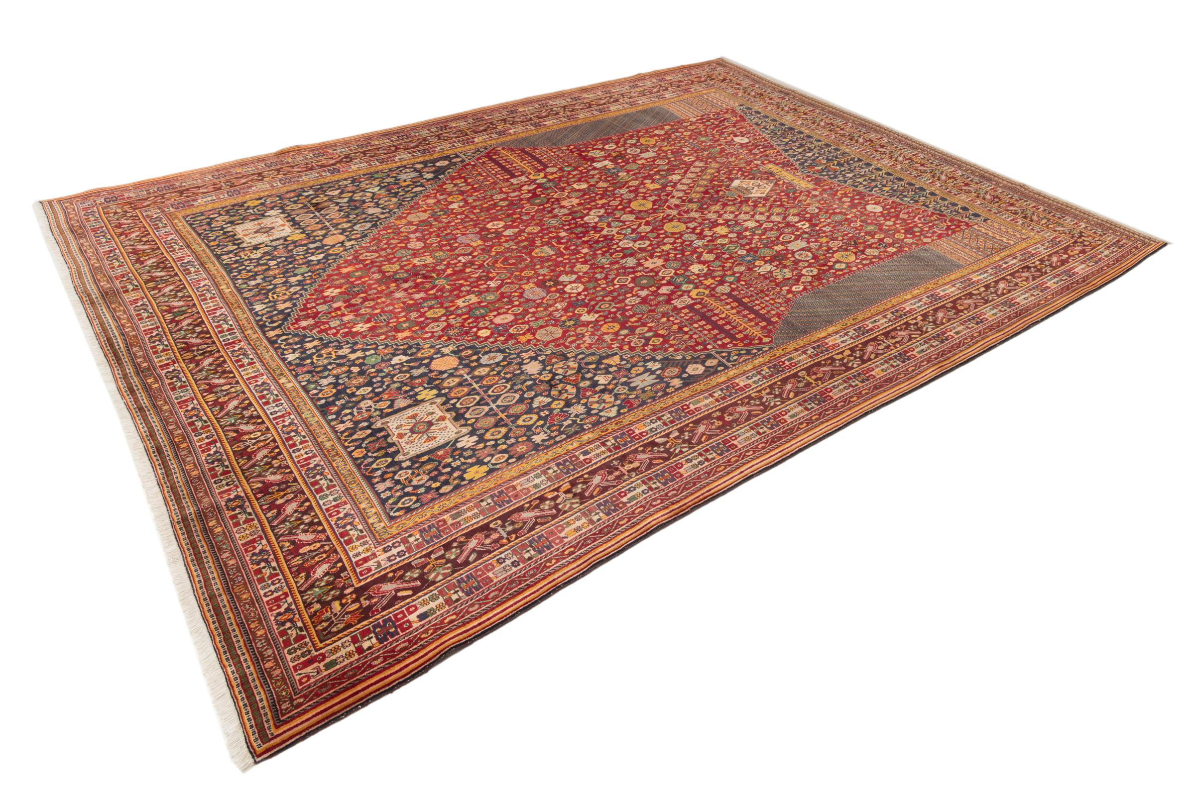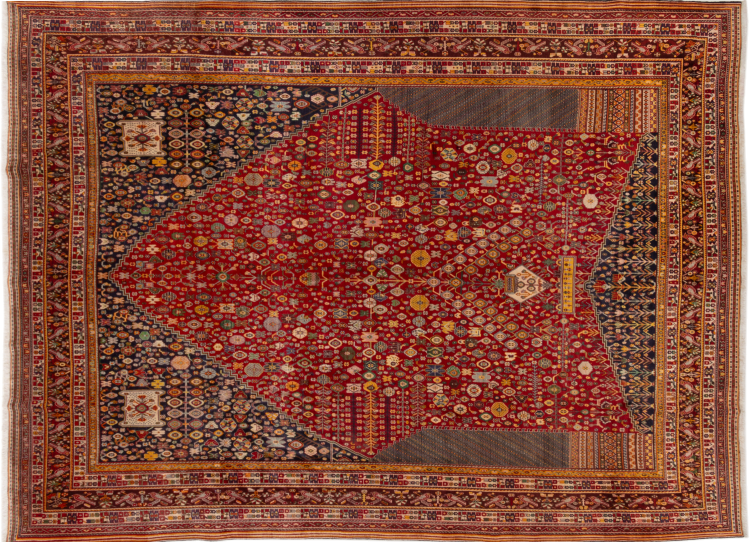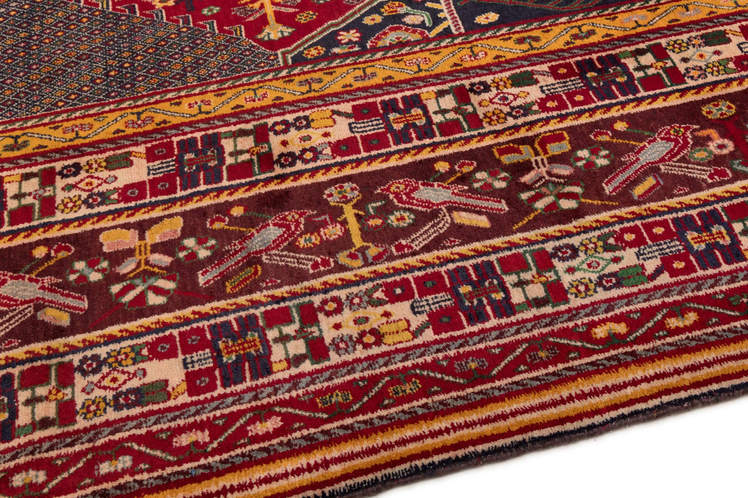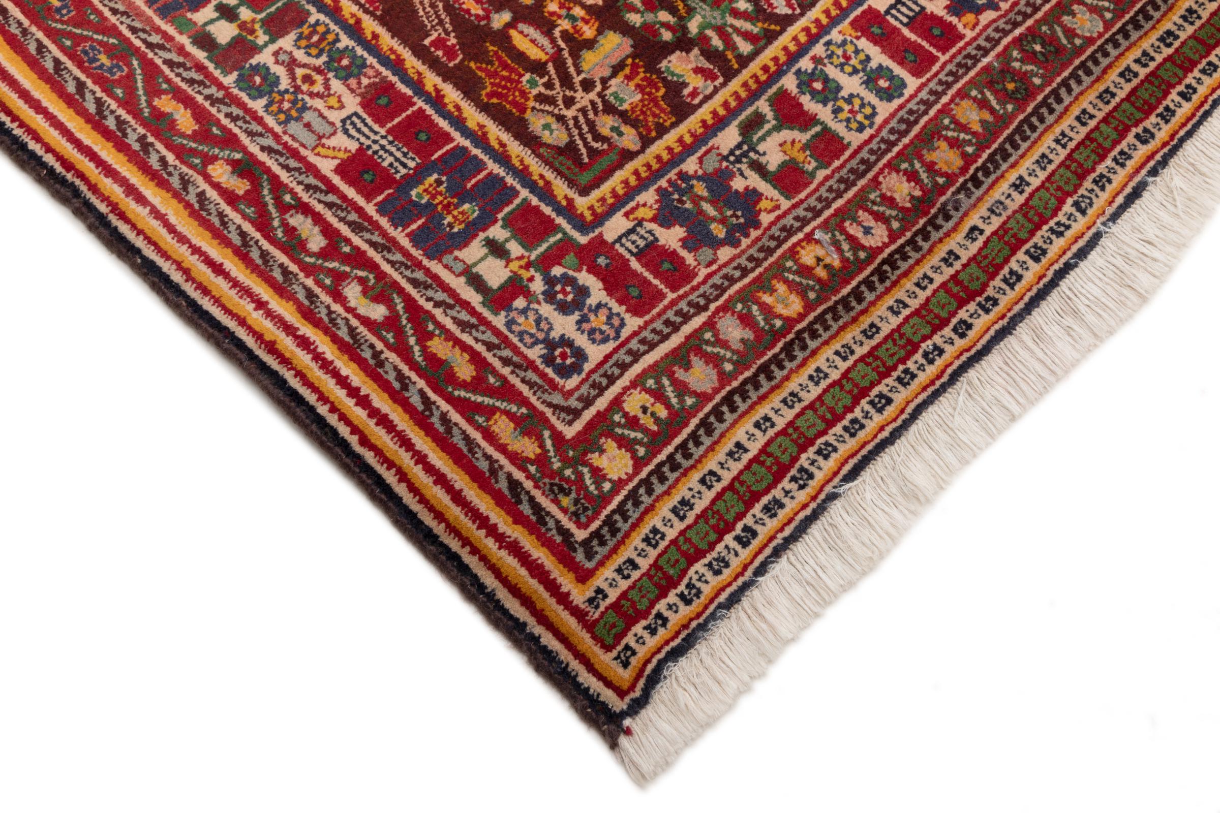 Dieser Teppich gehört zu Dorf- und Nomadenteppichen aus dem Iran, ehemals Persien. Diese Art von Teppich wird in kleineren Städten und Dörfern von Hand in alter Tradition geknüpft. Auch Nomaden knüpfen noch Perserteppiche unter freiem Himmel. Die Teppiche werden ohne Vorlage und komplett aus dem Kopf geknüpft. Sie sind gekennzeichnet durch klassische Ornamente, die in geradlinigen und geometrischen Mustern angelegt sind. Dank ihrer kulturell-traditionellen Herkunft, haben diese Teppiche einen einzigartigen Charakter, der das alte Persien verkörpert.