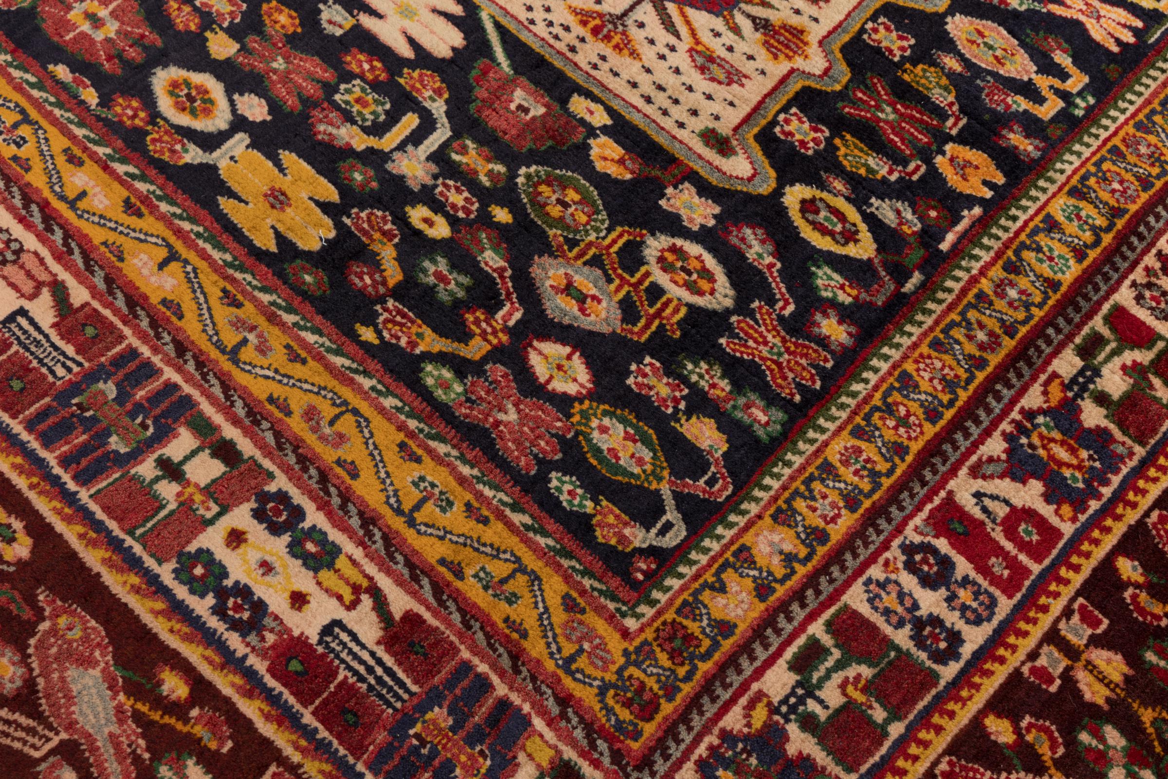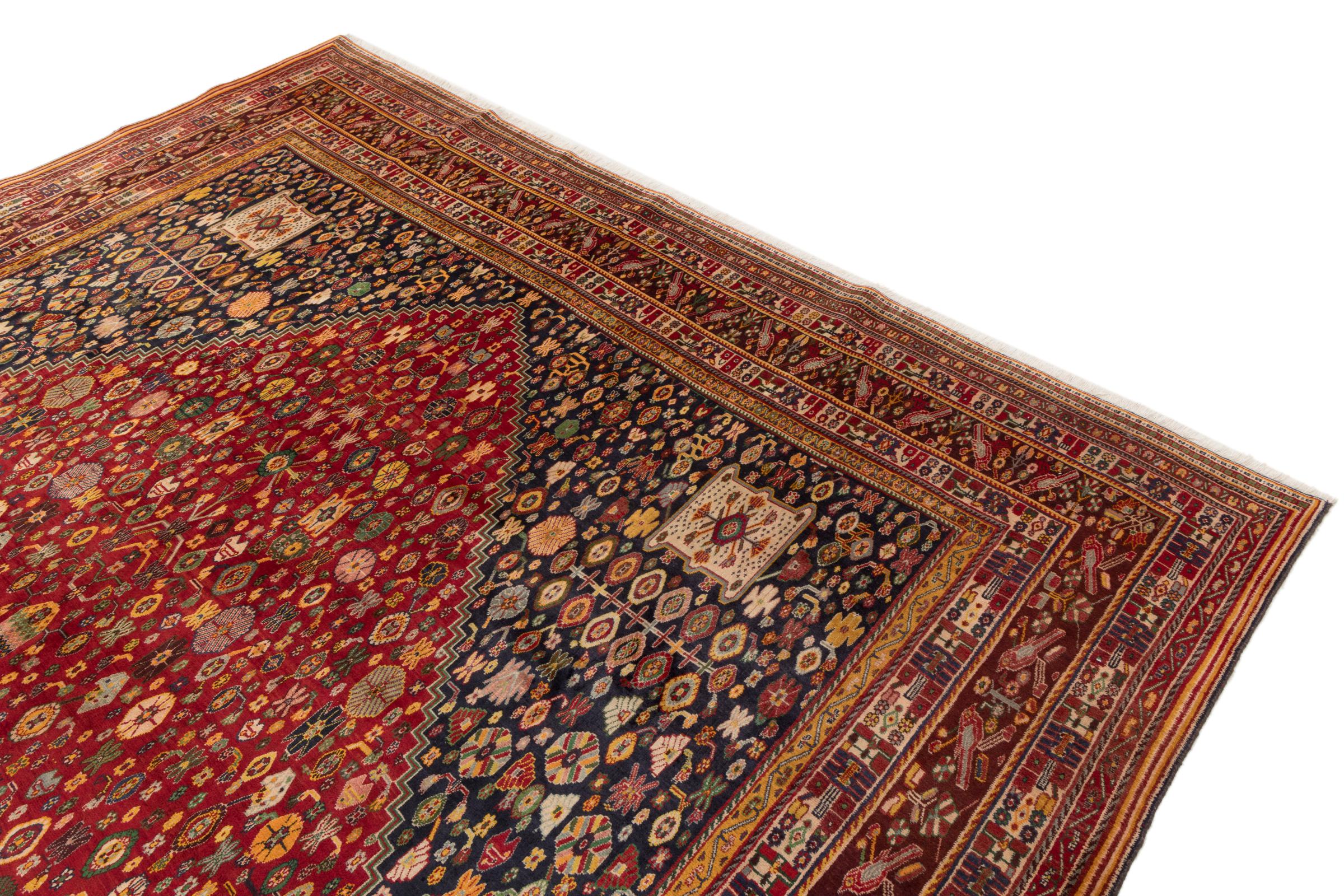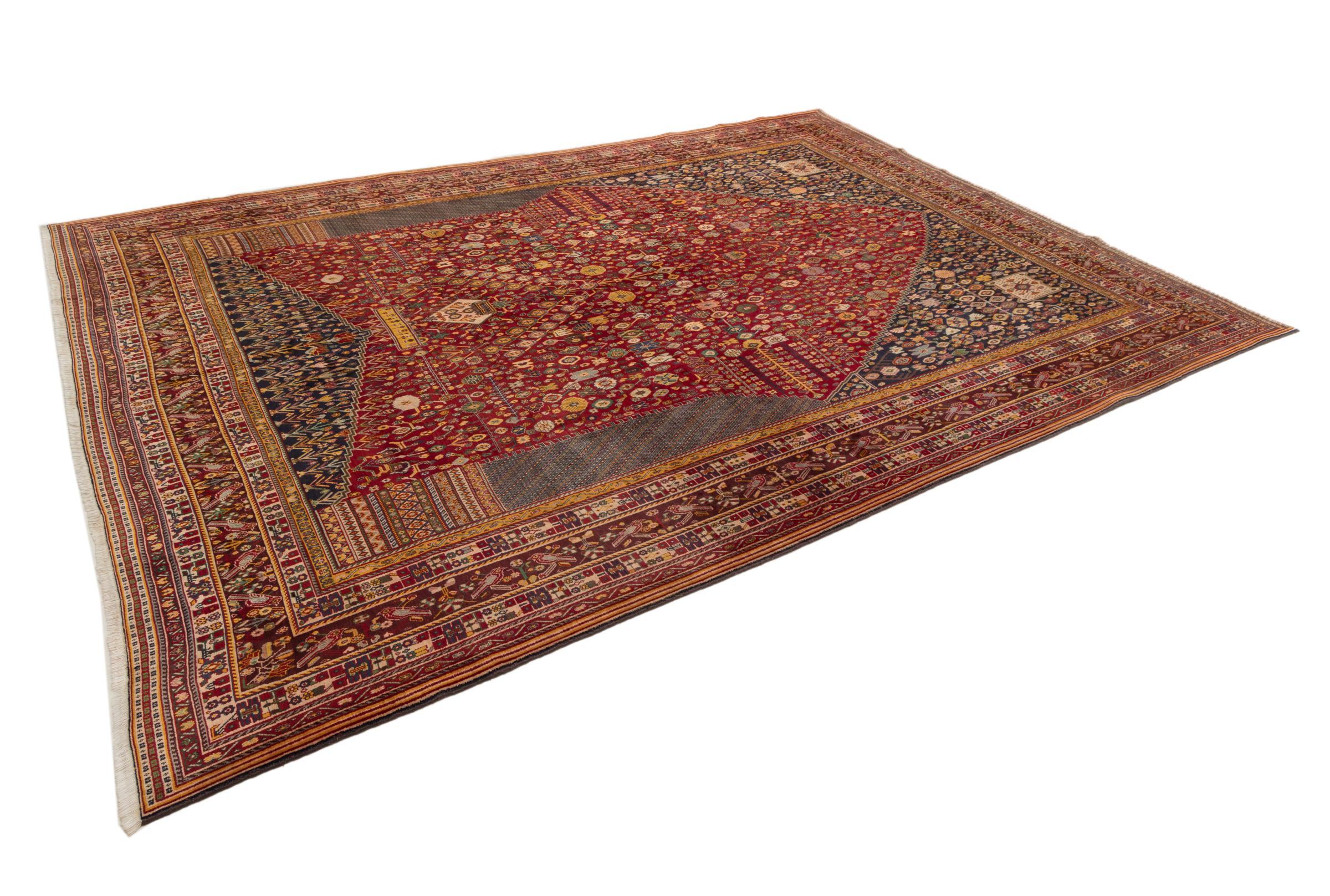 Dieser Teppich gehört zu Dorf- und Nomadenteppichen aus dem Iran, ehemals Persien. Diese Art von Teppich wird in kleineren Städten und Dörfern von Hand in alter Tradition geknüpft. Auch Nomaden knüpfen noch Perserteppiche unter freiem Himmel. Die Teppiche werden ohne Vorlage und komplett aus dem Kopf geknüpft. Sie sind gekennzeichnet durch klassische Ornamente, die in geradlinigen und geometrischen Mustern angelegt sind. Dank ihrer kulturell-traditionellen Herkunft, haben diese Teppiche einen einzigartigen Charakter, der das alte Persien verkörpert.