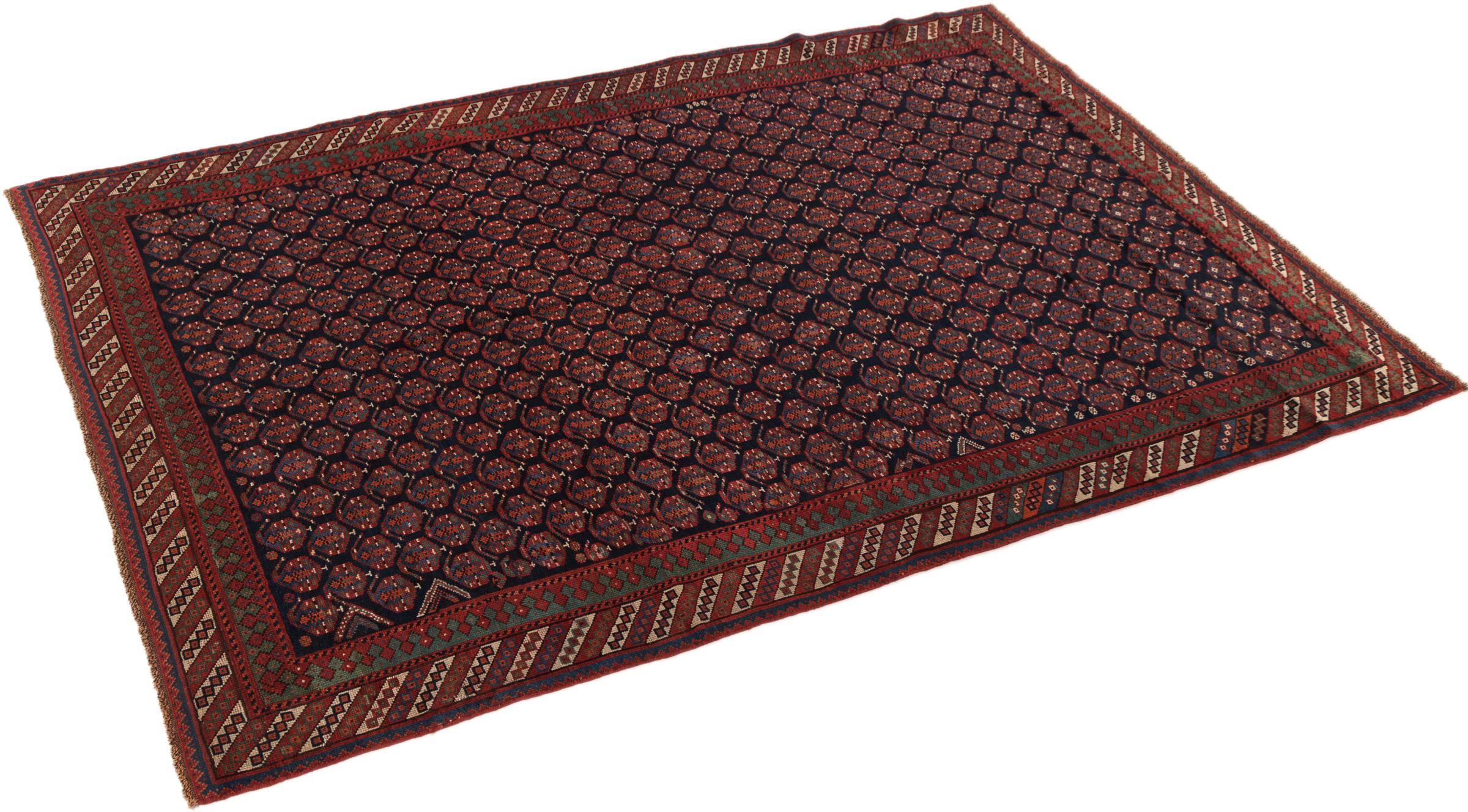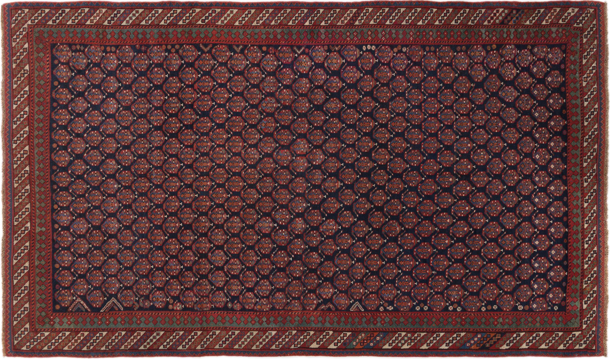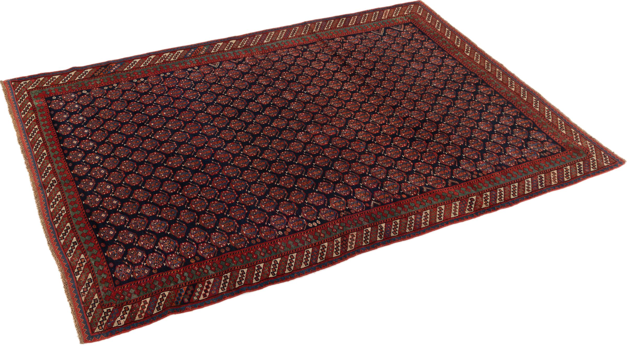 Dieser Teppich gehört zu Dorf- und Nomadenteppichen aus dem Iran, ehemals Persien. Diese Art von Teppich wird in kleineren Städten und Dörfern von Hand in alter Tradition geknüpft. Auch Nomaden knüpfen noch Perserteppiche unter freiem Himmel. Die Teppiche werden ohne Vorlage und komplett aus dem Kopf geknüpft. Sie sind gekennzeichnet durch klassische Ornamente, die in geradlinigen und geometrischen Mustern angelegt sind. Dank ihrer kulturell-traditionellen Herkunft, haben diese Teppiche einen einzigartigen Charakter, der das alte Persien verkörpert.