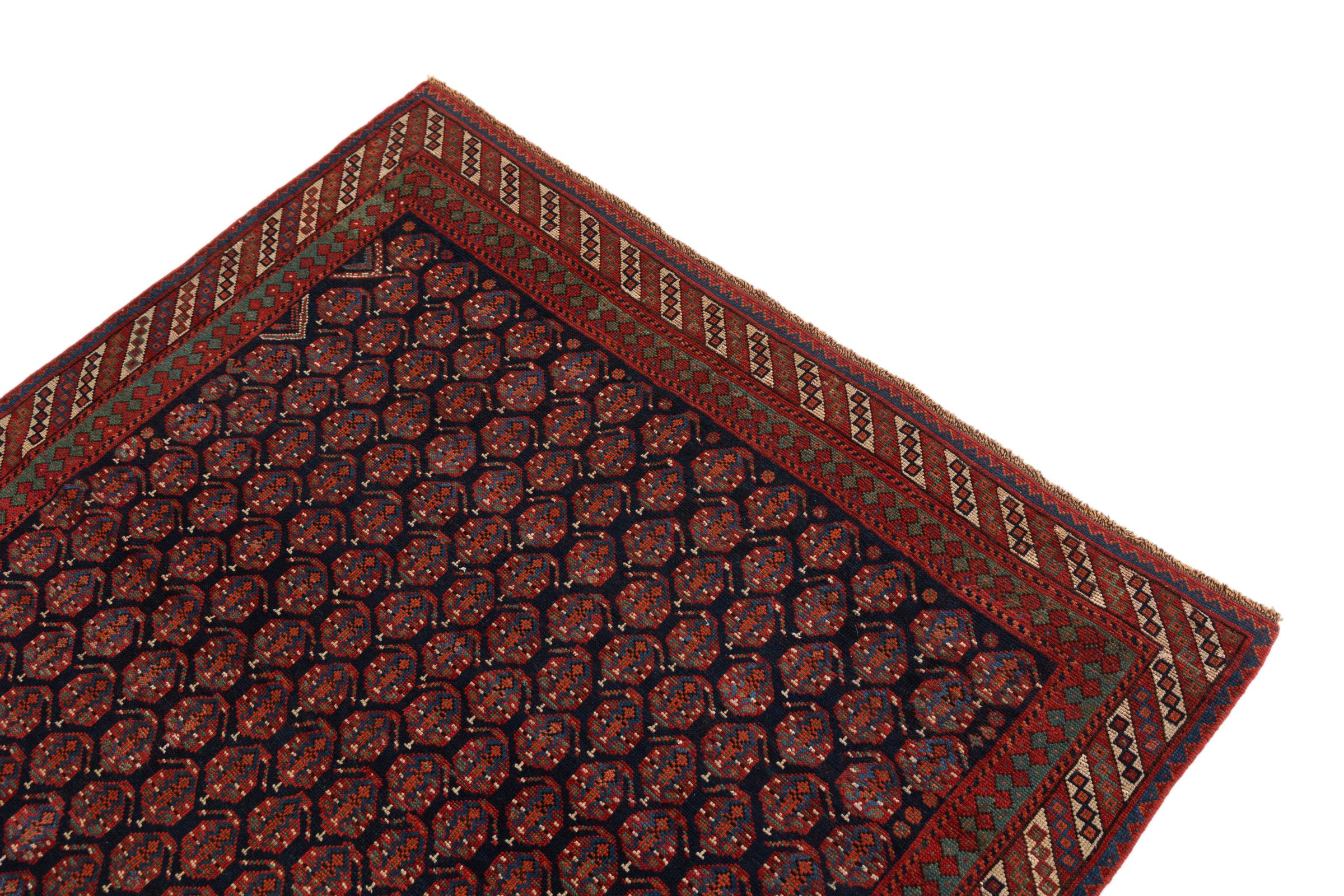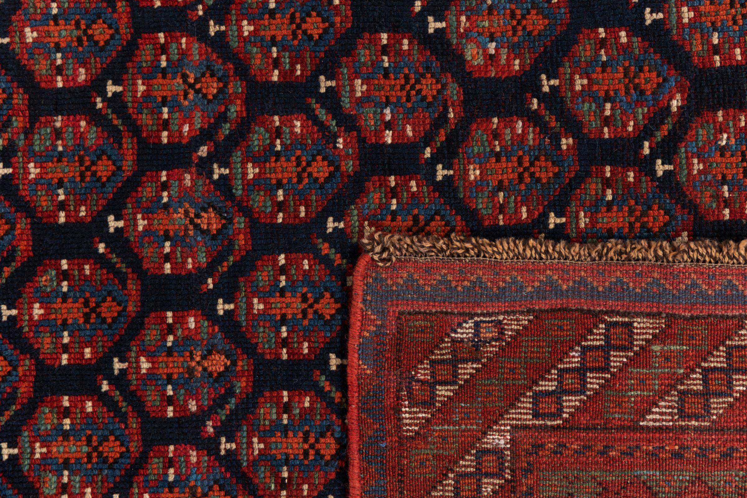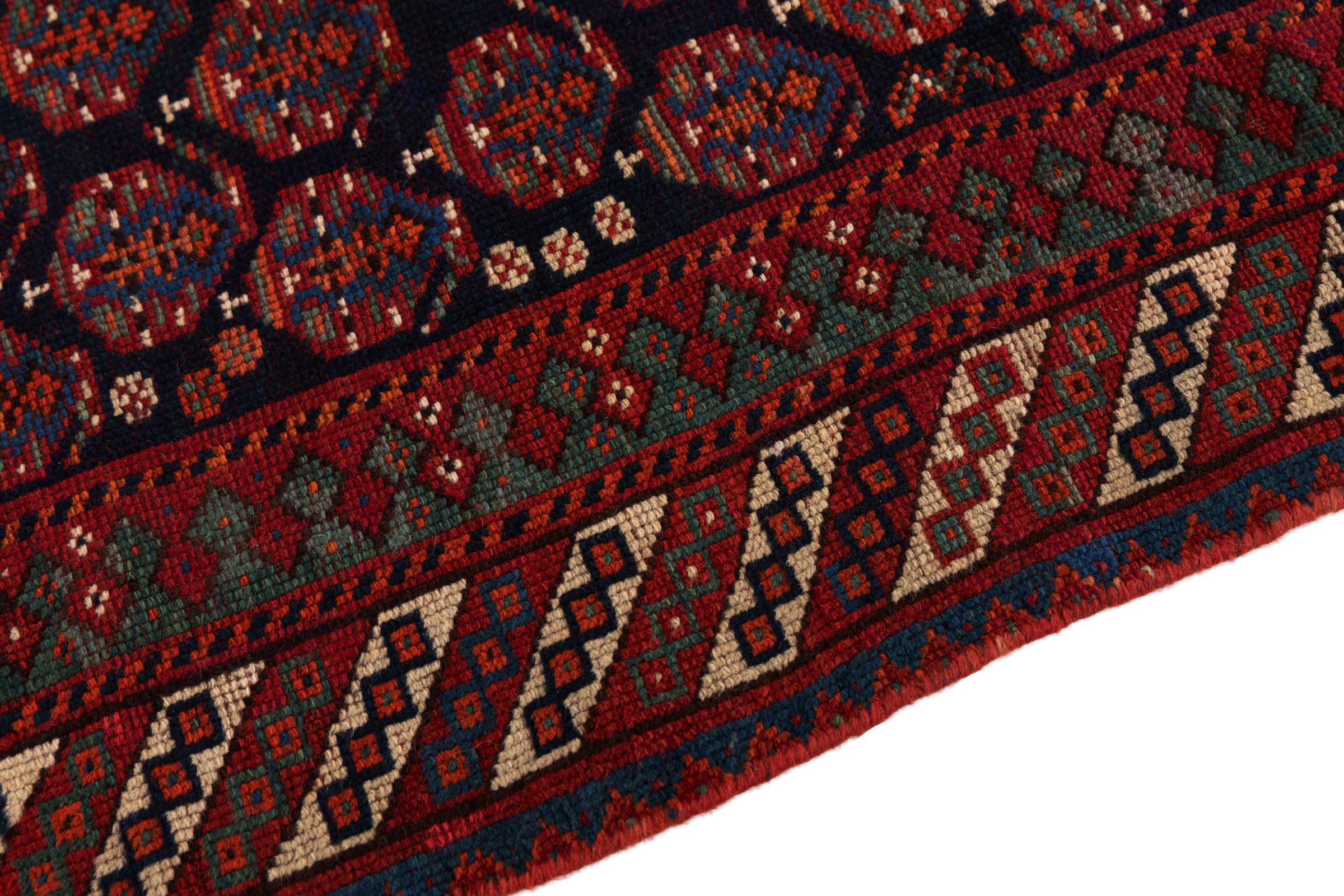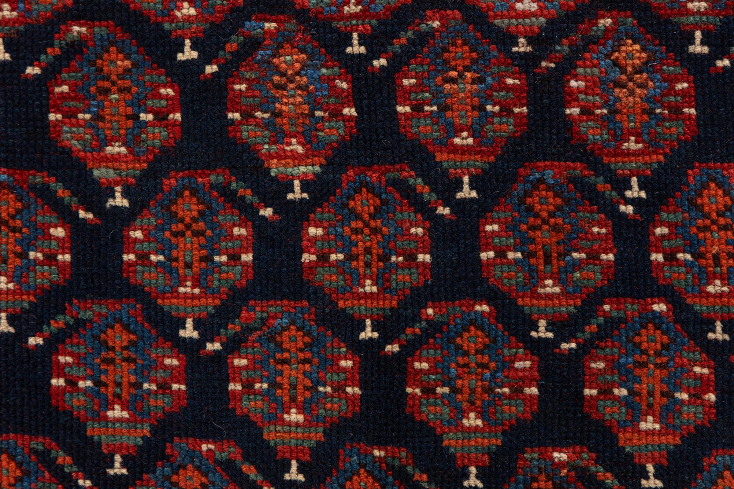 Dieser Teppich gehört zu Dorf- und Nomadenteppichen aus dem Iran, ehemals Persien. Diese Art von Teppich wird in kleineren Städten und Dörfern von Hand in alter Tradition geknüpft. Auch Nomaden knüpfen noch Perserteppiche unter freiem Himmel. Die Teppiche werden ohne Vorlage und komplett aus dem Kopf geknüpft. Sie sind gekennzeichnet durch klassische Ornamente, die in geradlinigen und geometrischen Mustern angelegt sind. Dank ihrer kulturell-traditionellen Herkunft, haben diese Teppiche einen einzigartigen Charakter, der das alte Persien verkörpert.