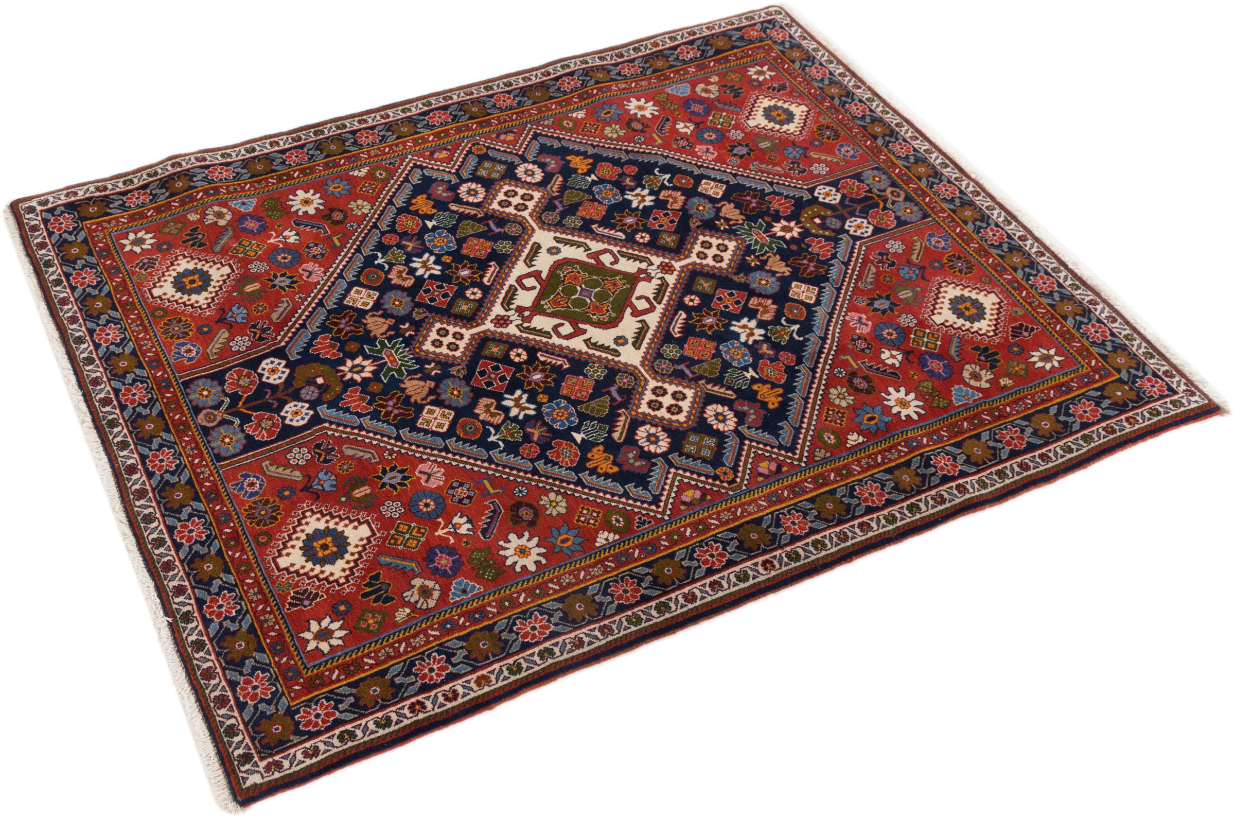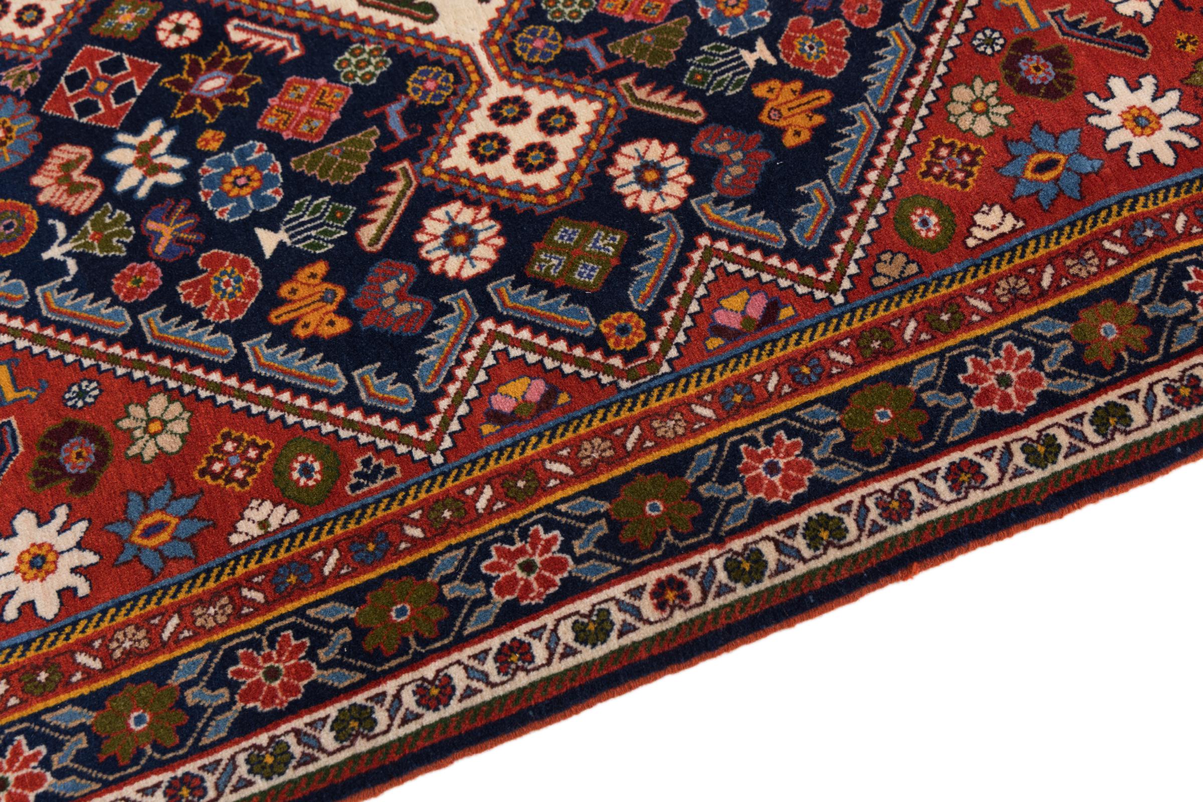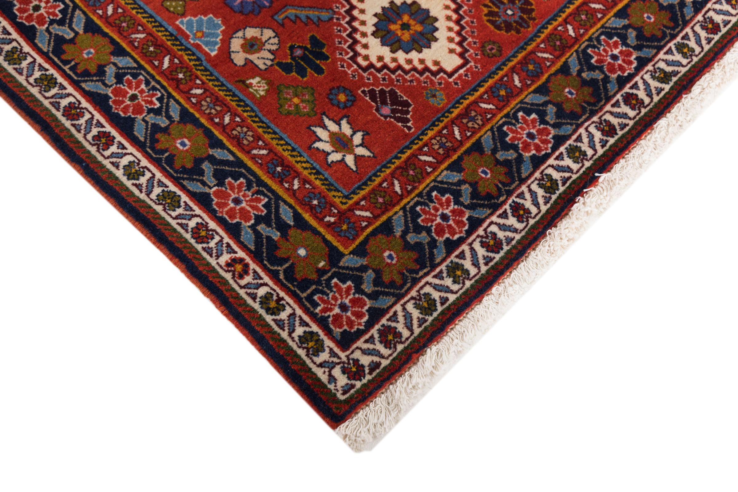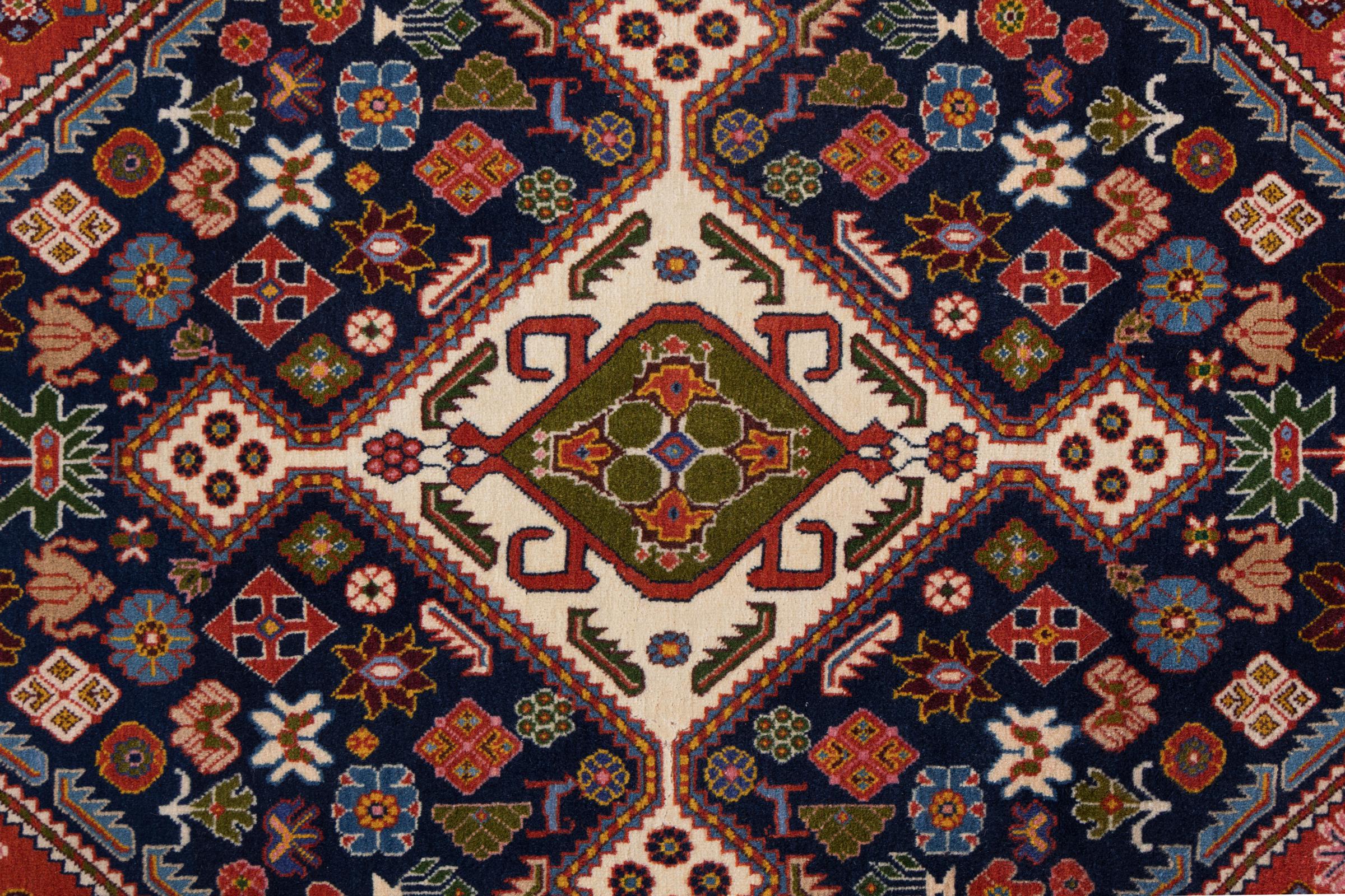 Dieser Teppich gehört zu Dorf- und Nomadenteppichen aus dem Iran, ehemals Persien. Diese Art von Teppich wird in kleineren Städten und Dörfern von Hand in alter Tradition geknüpft. Auch Nomaden knüpfen noch Perserteppiche unter freiem Himmel. Die Teppiche werden ohne Vorlage und komplett aus dem Kopf geknüpft. Sie sind gekennzeichnet durch klassische Ornamente, die in geradlinigen und geometrischen Mustern angelegt sind. Dank ihrer kulturell-traditionellen Herkunft, haben diese Teppiche einen einzigartigen Charakter, der das alte Persien verkörpert.