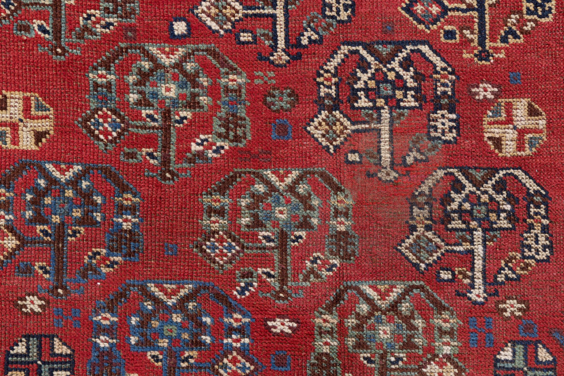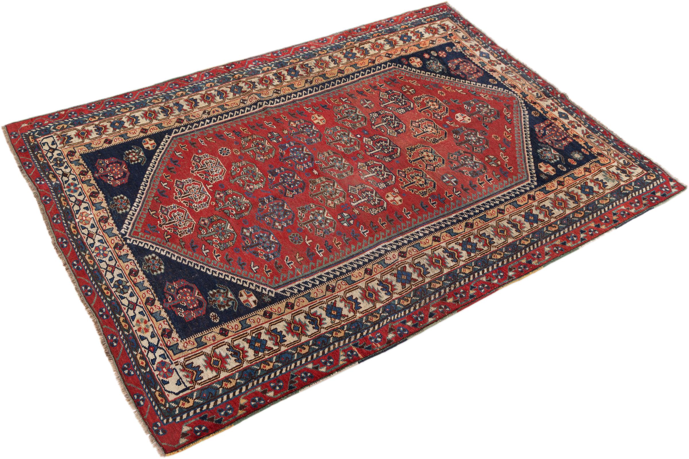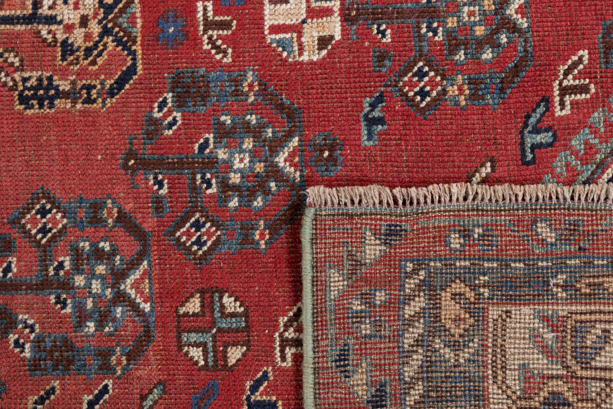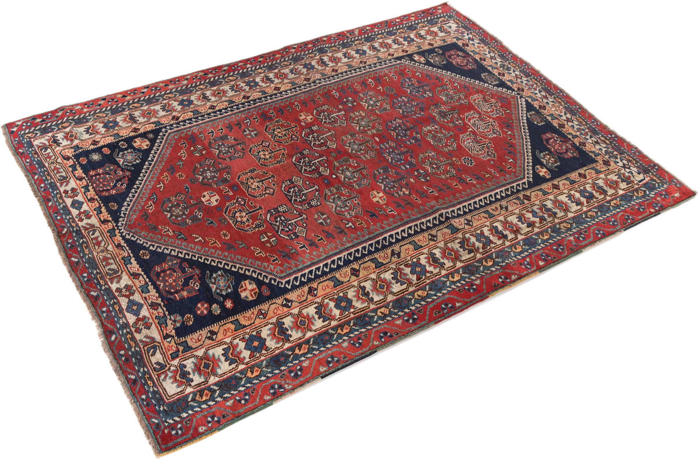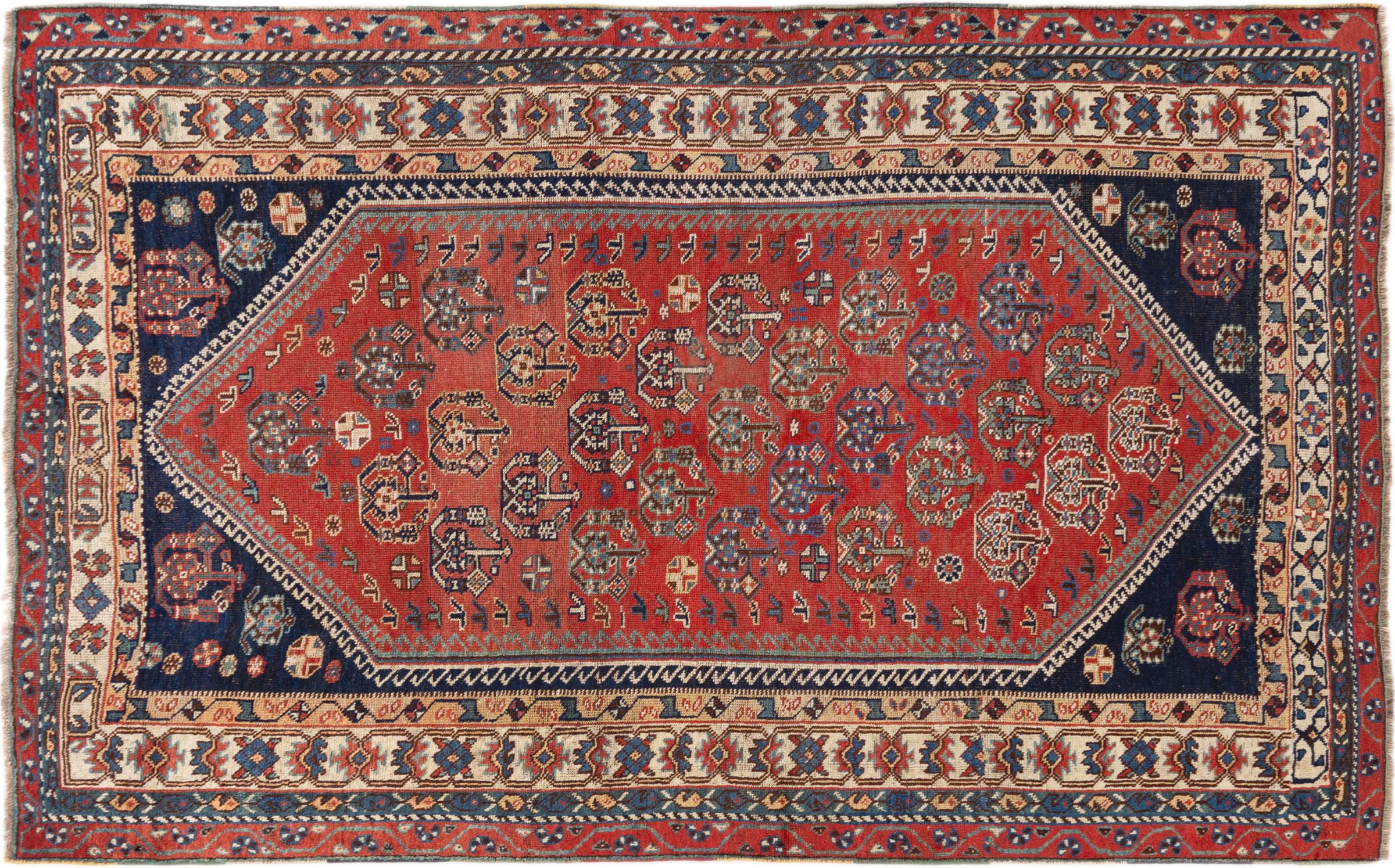 Dieser Teppich gehört zu Dorf- und Nomadenteppichen aus dem Iran, ehemals Persien. Diese Art von Teppich wird in kleineren Städten und Dörfern von Hand in alter Tradition geknüpft. Auch Nomaden knüpfen noch Perserteppiche unter freiem Himmel. Die Teppiche werden ohne Vorlage und komplett aus dem Kopf geknüpft. Sie sind gekennzeichnet durch klassische Ornamente, die in geradlinigen und geometrischen Mustern angelegt sind. Dank ihrer kulturell-traditionellen Herkunft, haben diese Teppiche einen einzigartigen Charakter, der das alte Persien verkörpert.