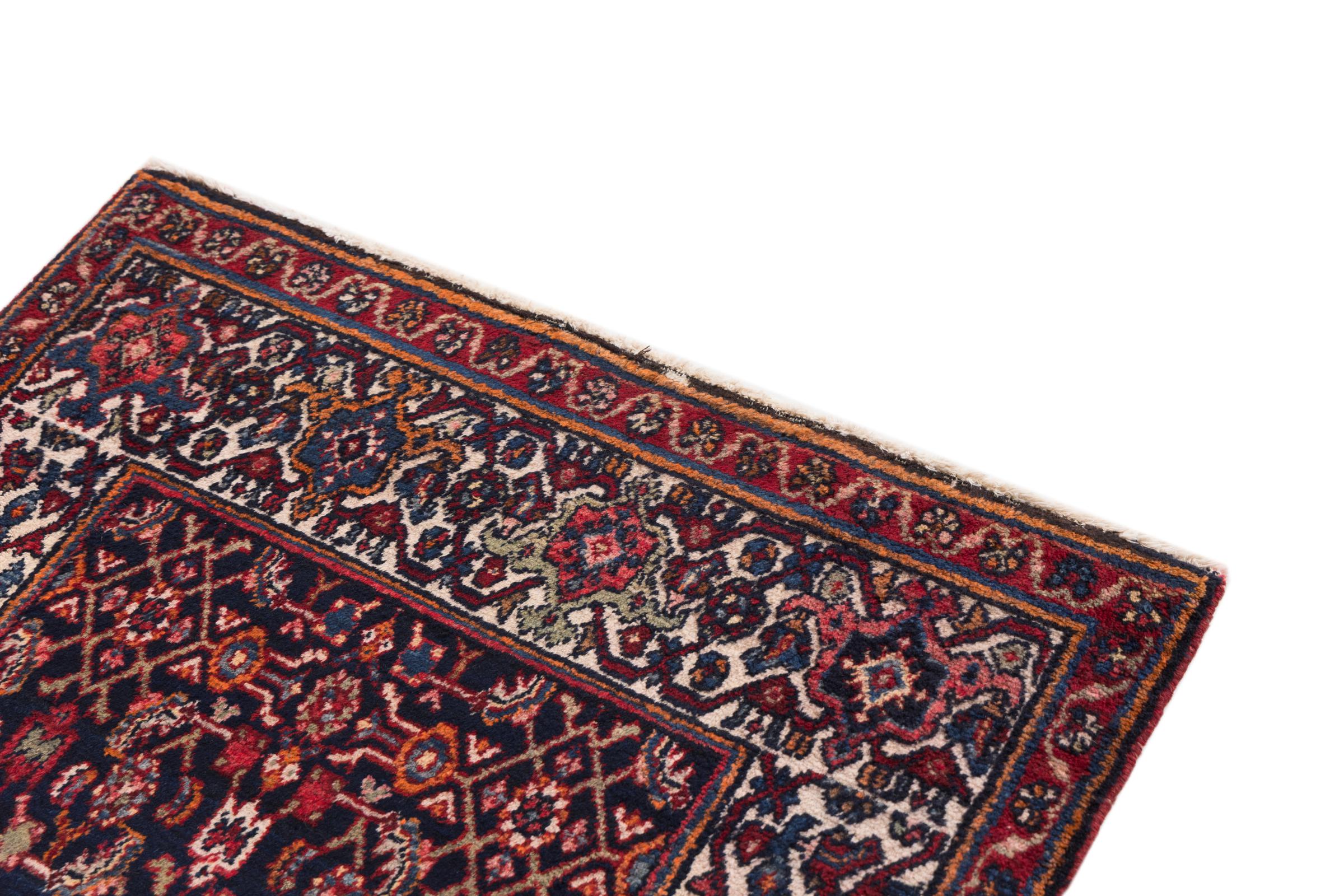 Dieser Teppich gehört zu Dorf- und Nomadenteppichen aus dem Iran, ehemals Persien. Diese Art von Teppich wird in kleineren Städten und Dörfern von Hand in alter Tradition geknüpft. Auch Nomaden knüpfen noch Perserteppiche unter freiem Himmel. Die Teppiche werden ohne Vorlage und komplett aus dem Kopf geknüpft. Sie sind gekennzeichnet durch klassische Ornamente, die in geradlinigen und geometrischen Mustern angelegt sind. Dank ihrer kulturell-traditionellen Herkunft, haben diese Teppiche einen einzigartigen Charakter, der das alte Persien verkörpert.