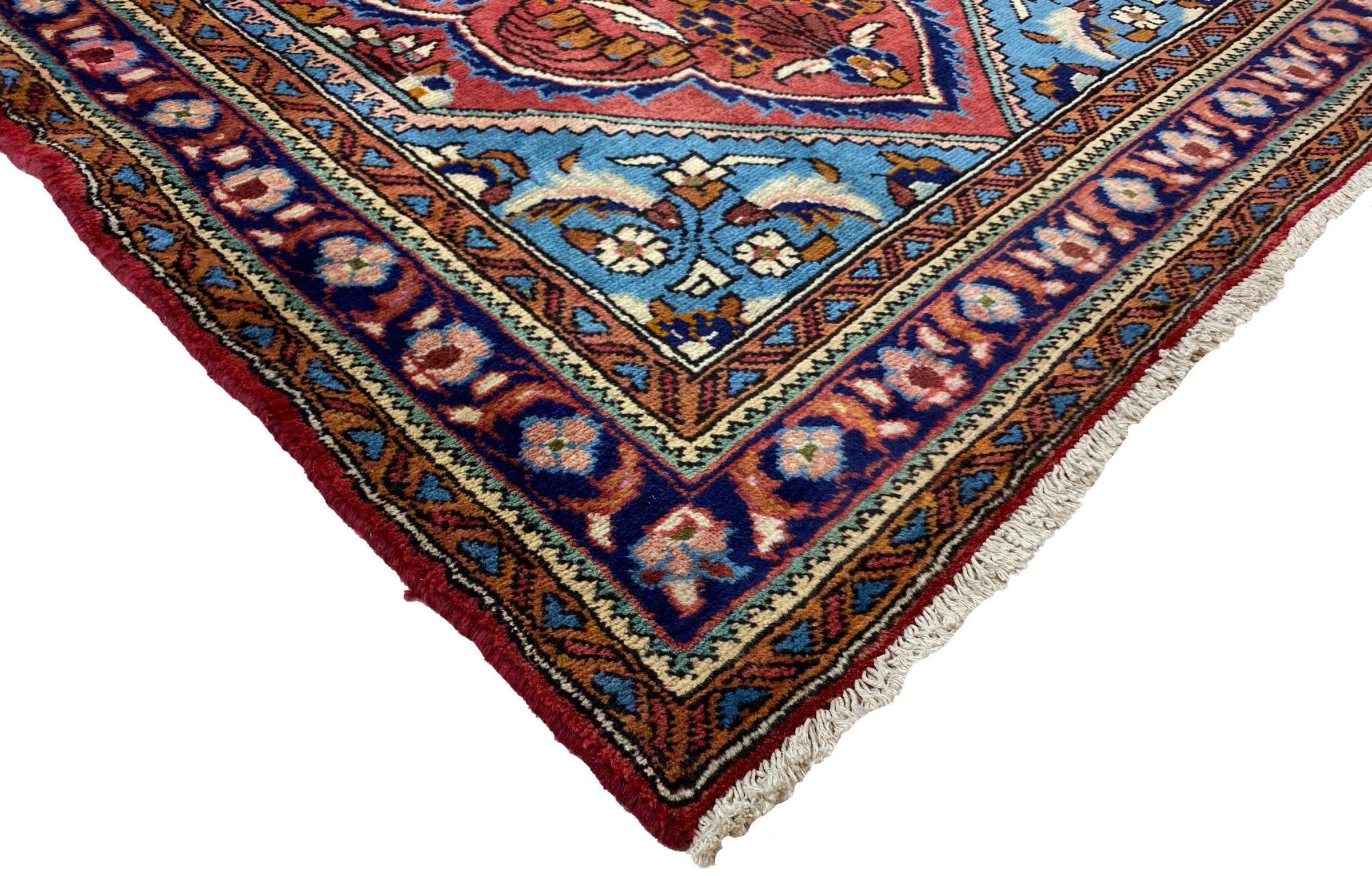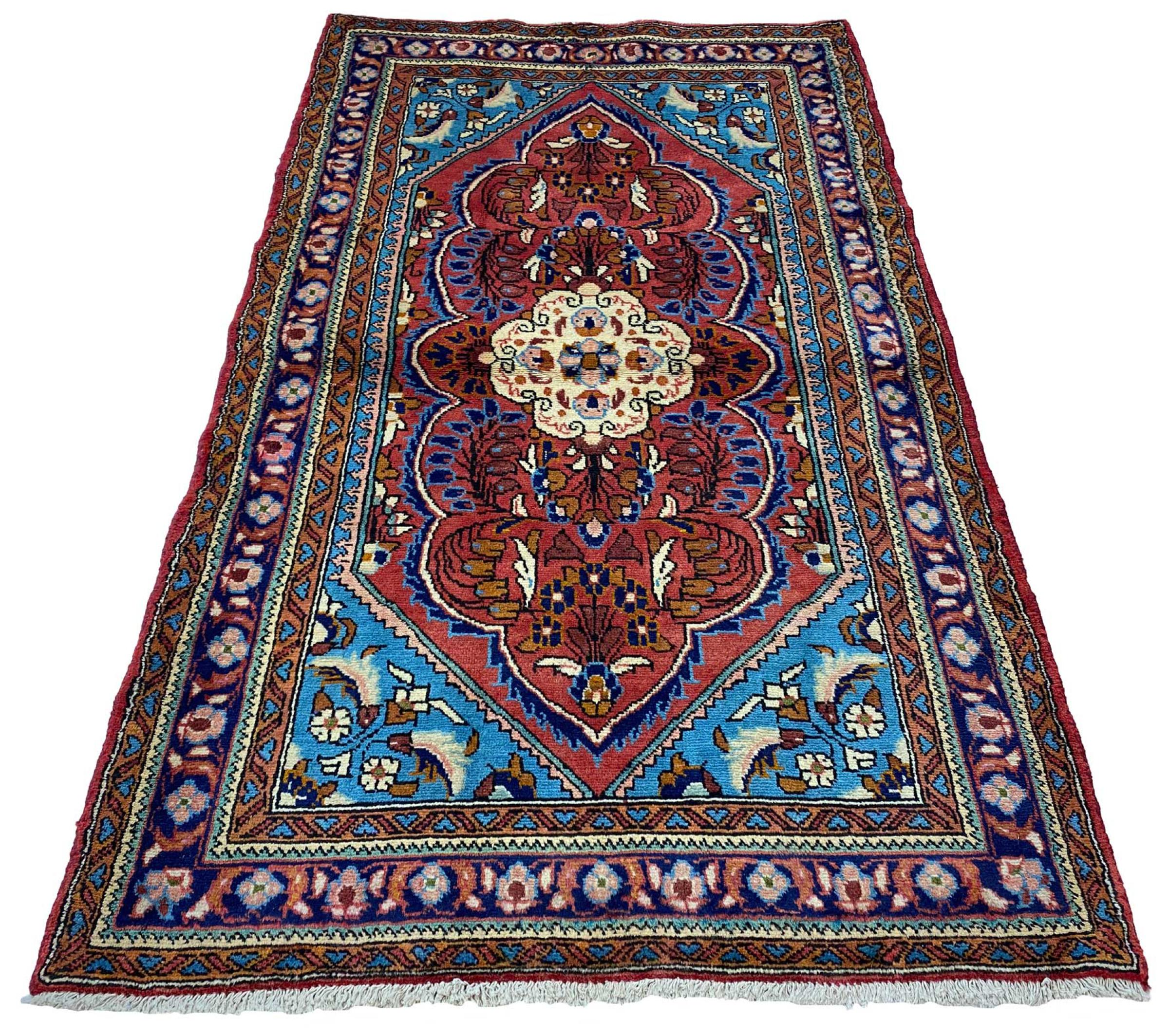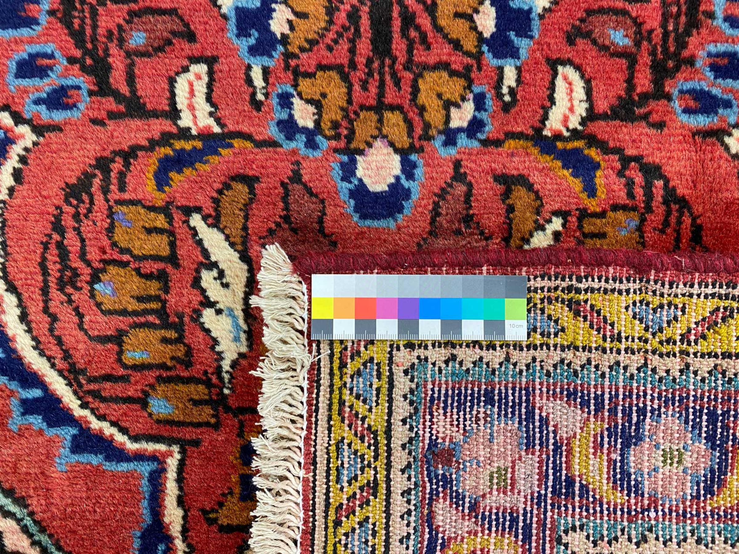 Dieser Teppich gehört zu Dorf- und Nomadenteppichen aus dem Iran, ehemals Persien. Diese Art von Teppich wird in kleineren Städten und Dörfern von Hand in alter Tradition geknüpft. Auch Nomaden knüpfen noch Perserteppiche unter freiem Himmel. Die Teppiche werden ohne Vorlage und komplett aus dem Kopf geknüpft. Sie sind gekennzeichnet durch klassische Ornamente, die in geradlinigen und geometrischen Mustern angelegt sind. Dank ihrer kulturell-traditionellen Herkunft, haben diese Teppiche einen einzigartigen Charakter, der das alte Persien verkörpert.