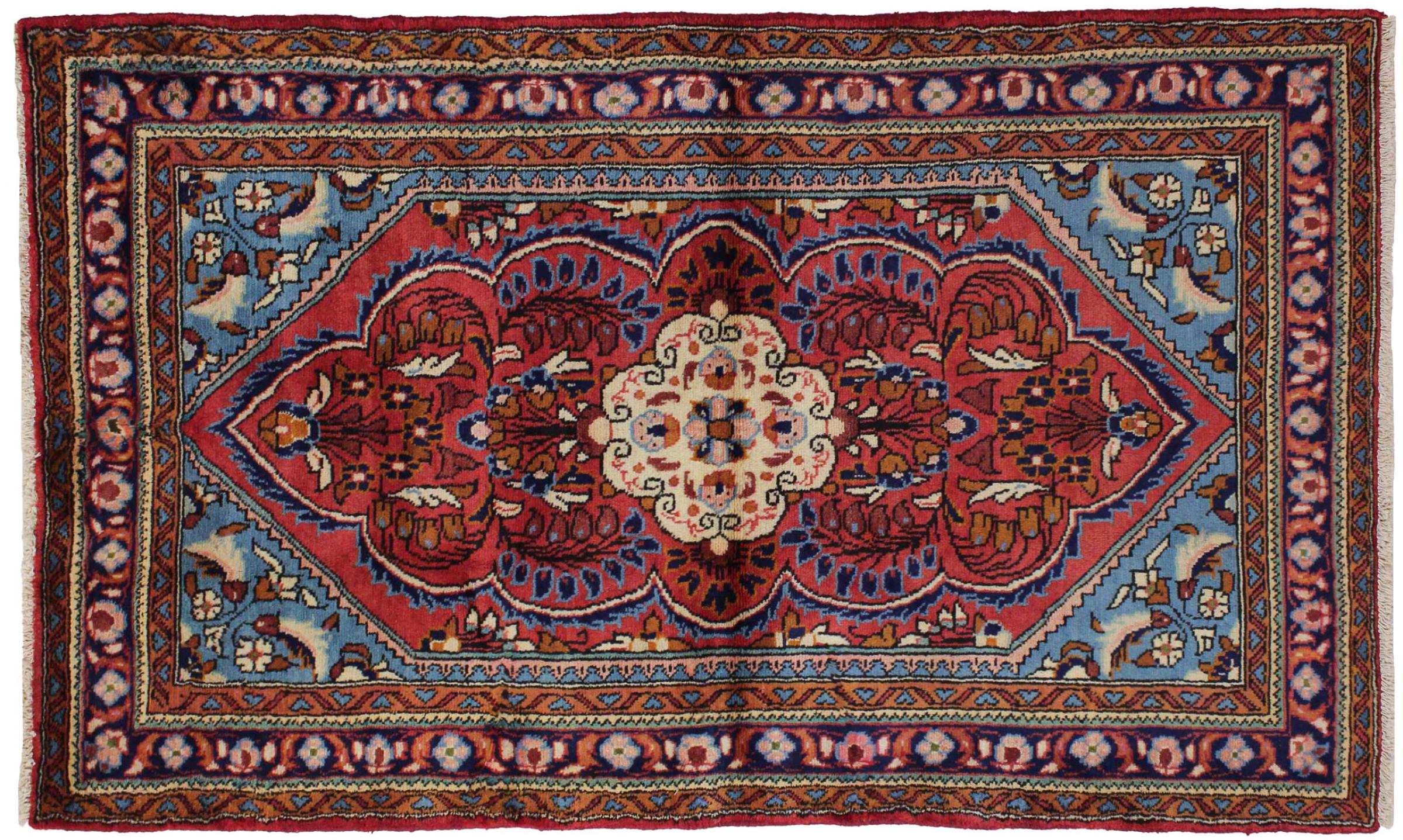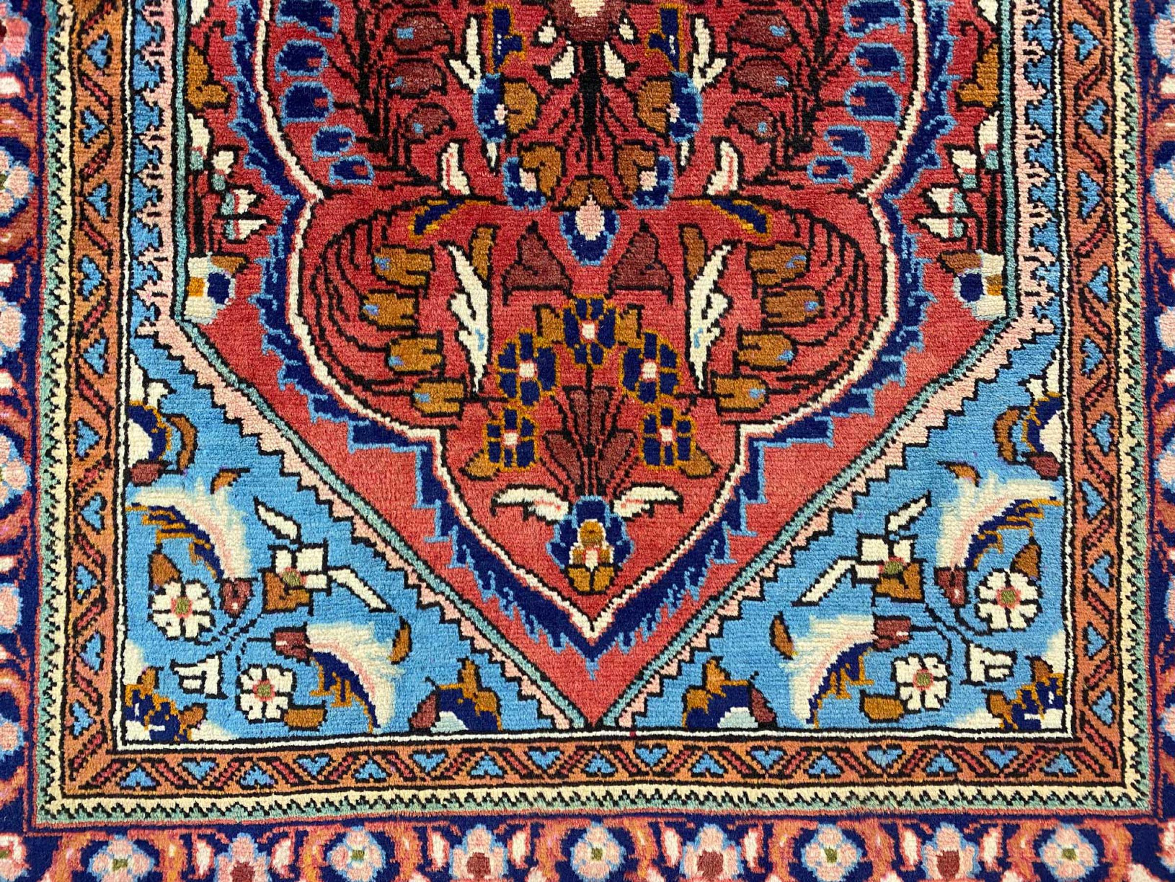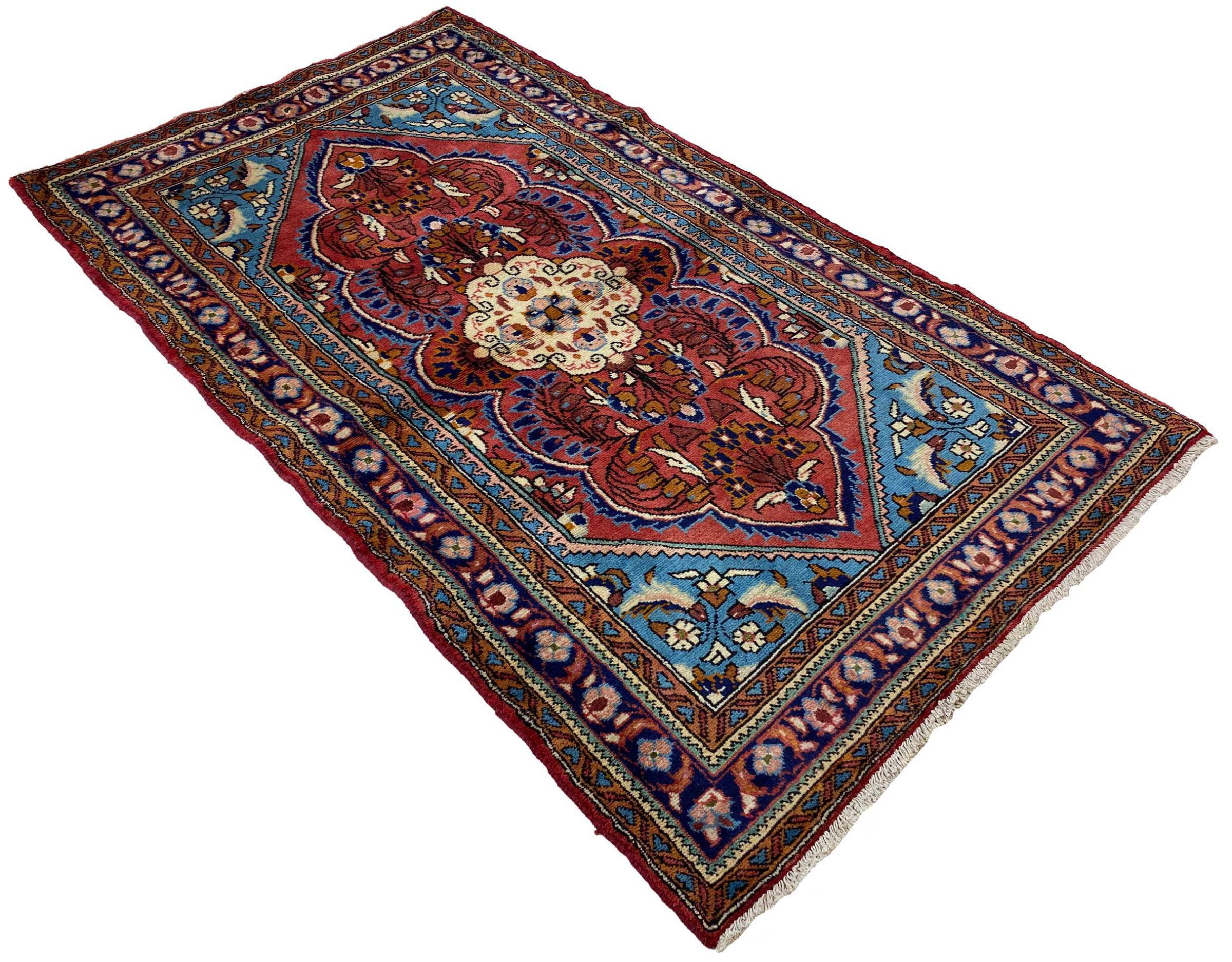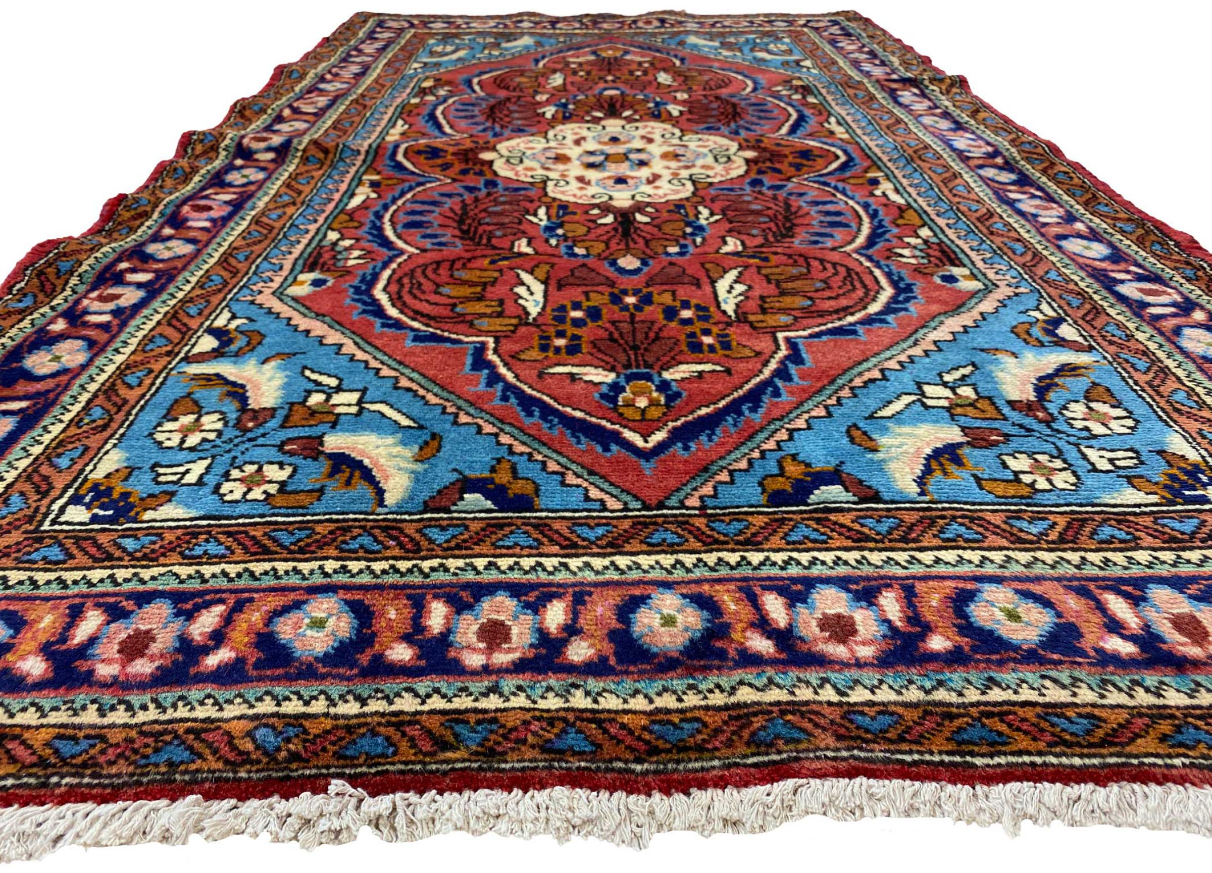 Dieser Teppich gehört zu Dorf- und Nomadenteppichen aus dem Iran, ehemals Persien. Diese Art von Teppich wird in kleineren Städten und Dörfern von Hand in alter Tradition geknüpft. Auch Nomaden knüpfen noch Perserteppiche unter freiem Himmel. Die Teppiche werden ohne Vorlage und komplett aus dem Kopf geknüpft. Sie sind gekennzeichnet durch klassische Ornamente, die in geradlinigen und geometrischen Mustern angelegt sind. Dank ihrer kulturell-traditionellen Herkunft, haben diese Teppiche einen einzigartigen Charakter, der das alte Persien verkörpert.