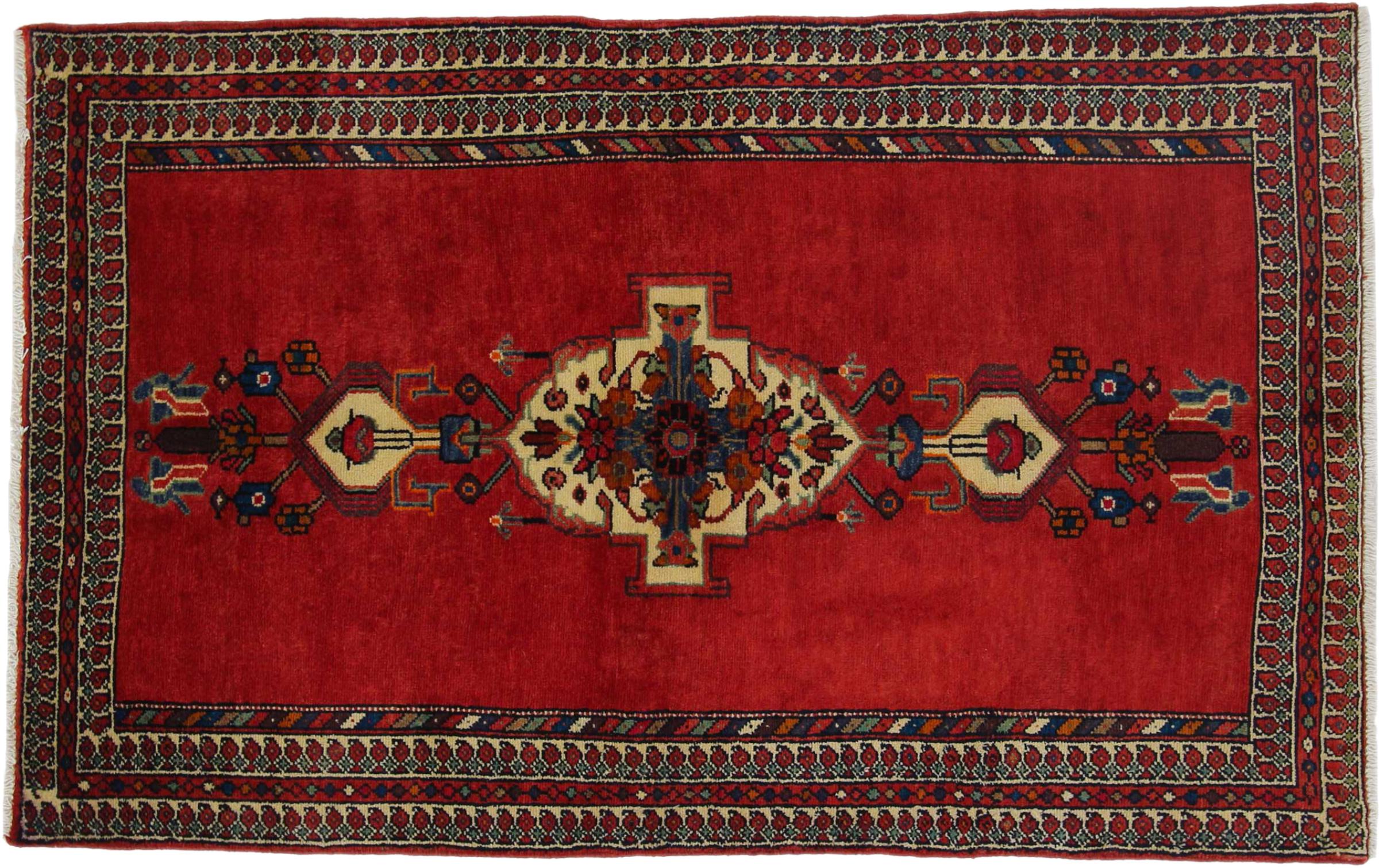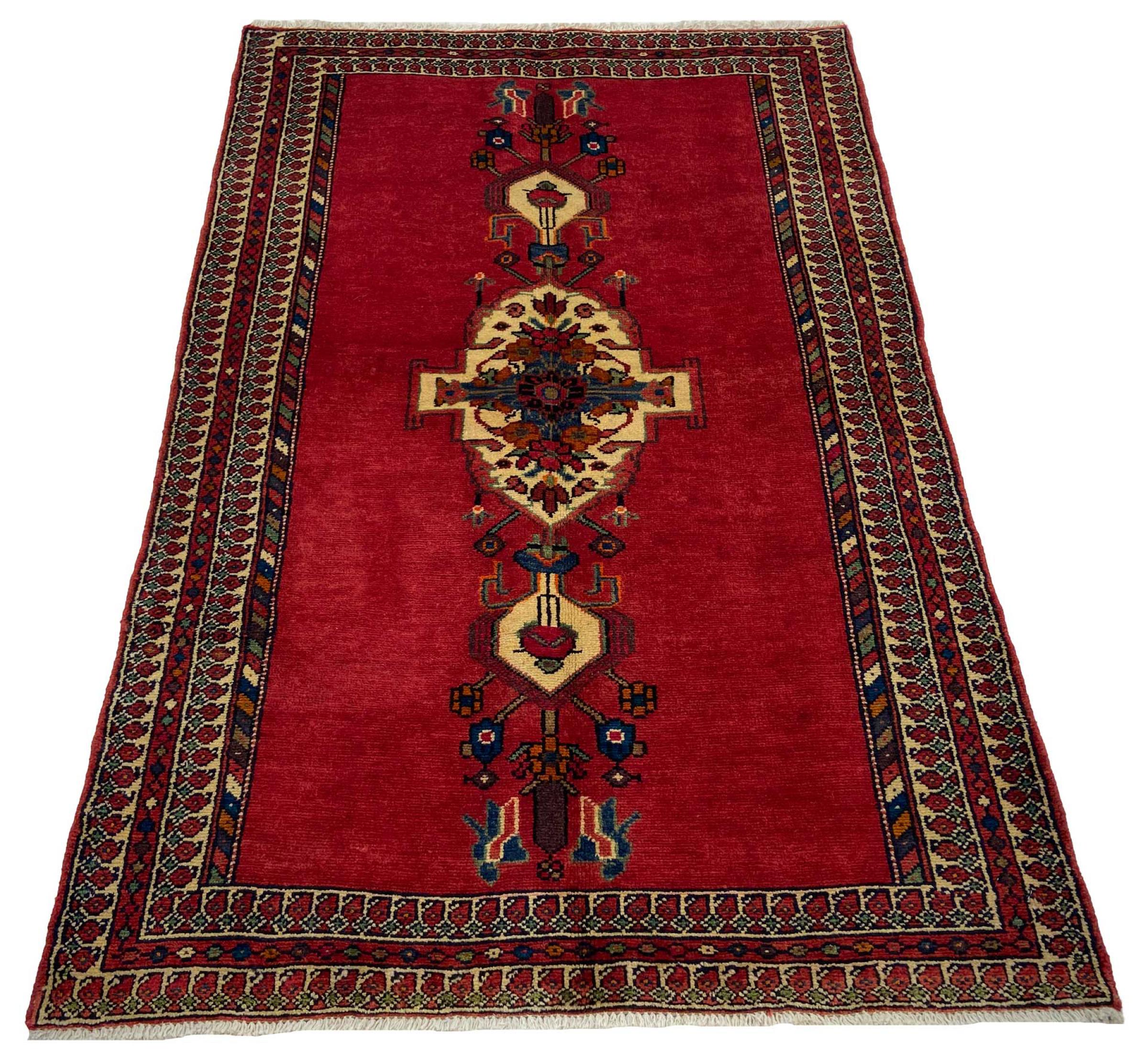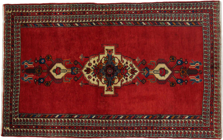 Dieser Teppich gehört zu Dorf- und Nomadenteppichen aus dem Iran, ehemals Persien. Diese Art von Teppich wird in kleineren Städten und Dörfern von Hand in alter Tradition geknüpft. Auch Nomaden knüpfen noch Perserteppiche unter freiem Himmel. Die Teppiche werden ohne Vorlage und komplett aus dem Kopf geknüpft. Sie sind gekennzeichnet durch klassische Ornamente, die in geradlinigen und geometrischen Mustern angelegt sind. Dank ihrer kulturell-traditionellen Herkunft, haben diese Teppiche einen einzigartigen Charakter, der das alte Persien verkörpert.