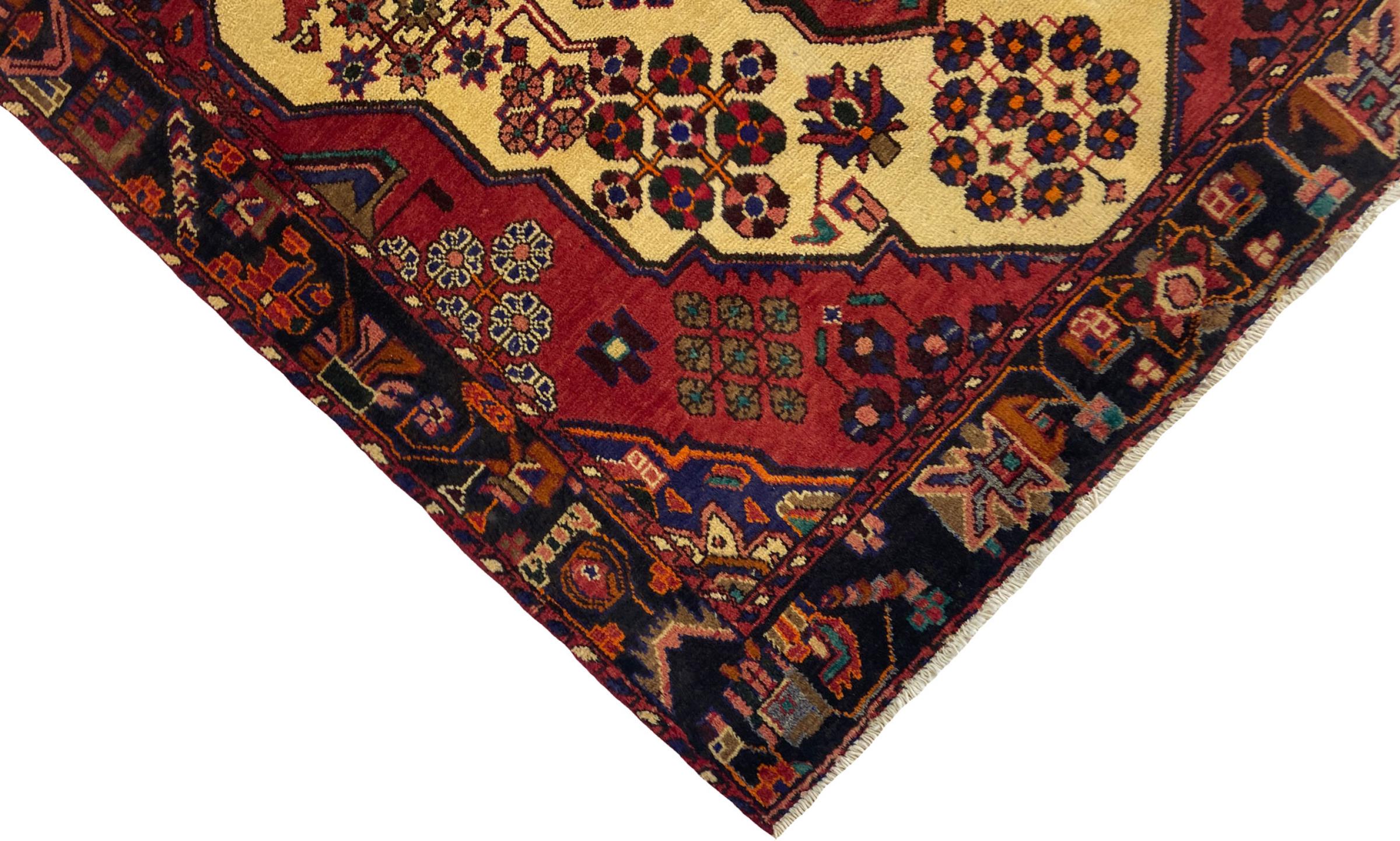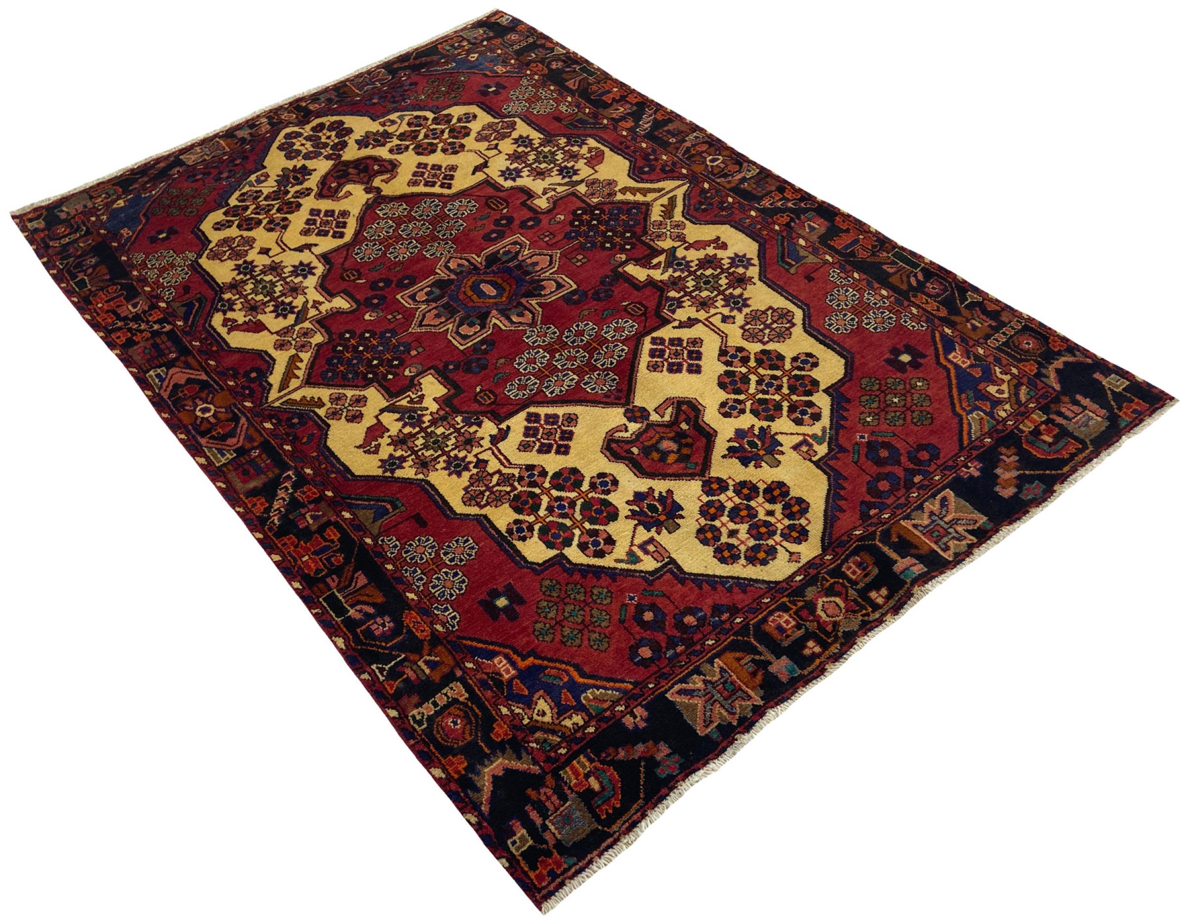 Dieser Teppich gehört zu Dorf- und Nomadenteppichen aus dem Iran, ehemals Persien. Diese Art von Teppich wird in kleineren Städten und Dörfern von Hand in alter Tradition geknüpft. Auch Nomaden knüpfen noch Perserteppiche unter freiem Himmel. Die Teppiche werden ohne Vorlage und komplett aus dem Kopf geknüpft. Sie sind gekennzeichnet durch klassische Ornamente, die in geradlinigen und geometrischen Mustern angelegt sind. Dank ihrer kulturell-traditionellen Herkunft, haben diese Teppiche einen einzigartigen Charakter, der das alte Persien verkörpert.