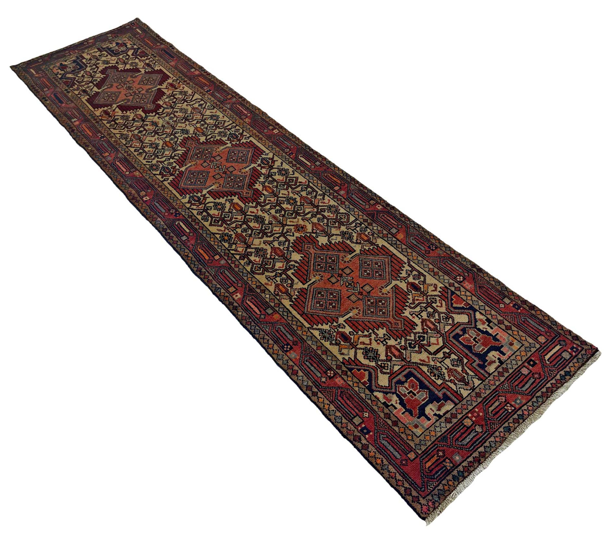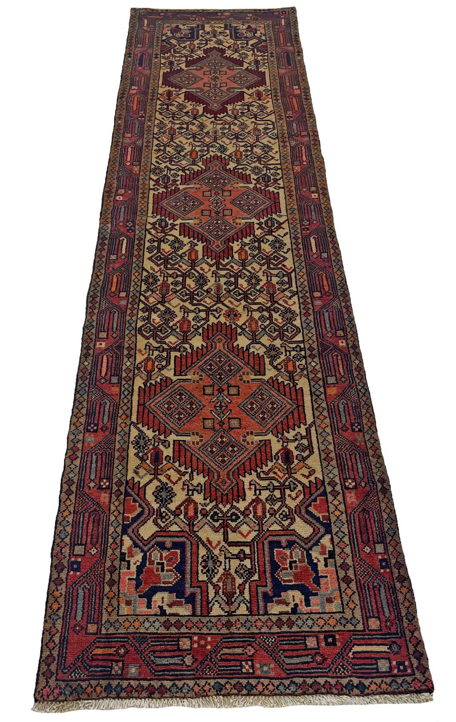 Dieser Hamadan-Teppich ist nicht umsonst heiß begehrt in neuen Einrichtungskonzepten. Er verbindet einen unschlagbaren Preis mit außergewöhnlicher Qualität. Aufgrund der starken Garne, die bei der Herstellung von Hamadan-Teppichen verwendet werden, ist dieser Perserteppich besonders haltbar. Er wurde in der Stadt Hamadan handgeknüpft. Die oft geometrischen Muster und Ornamente sind zeitlos und daher extrem beliebt auch in skandinavischen Einrichtungen. Die kräftigen Farben bringen Gemütlichkeit und Wärme in Ihren Raum.