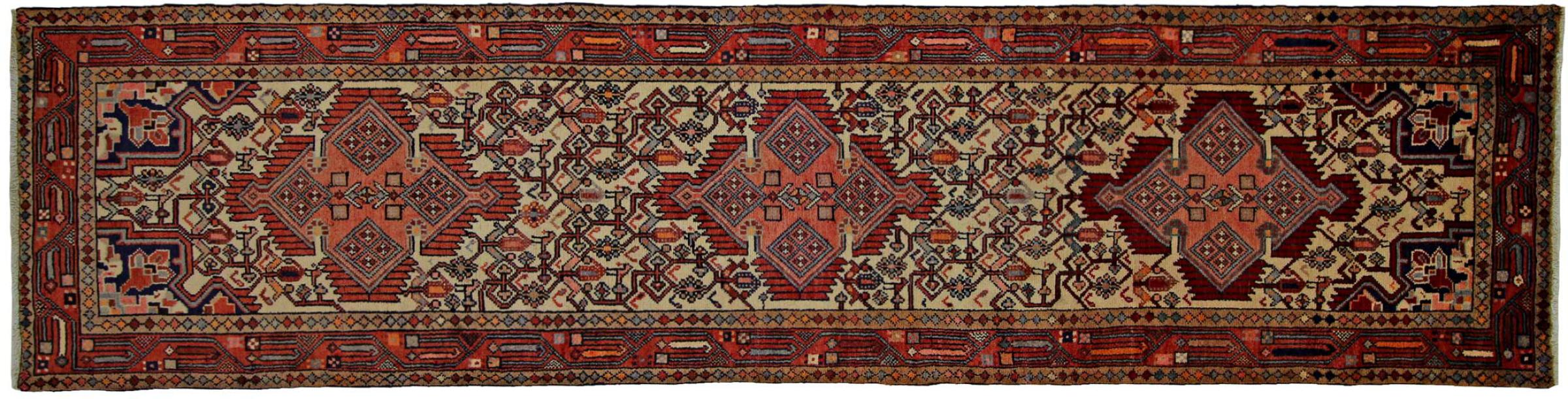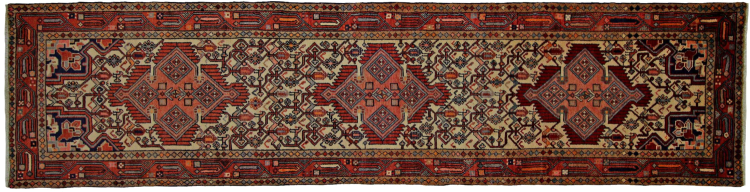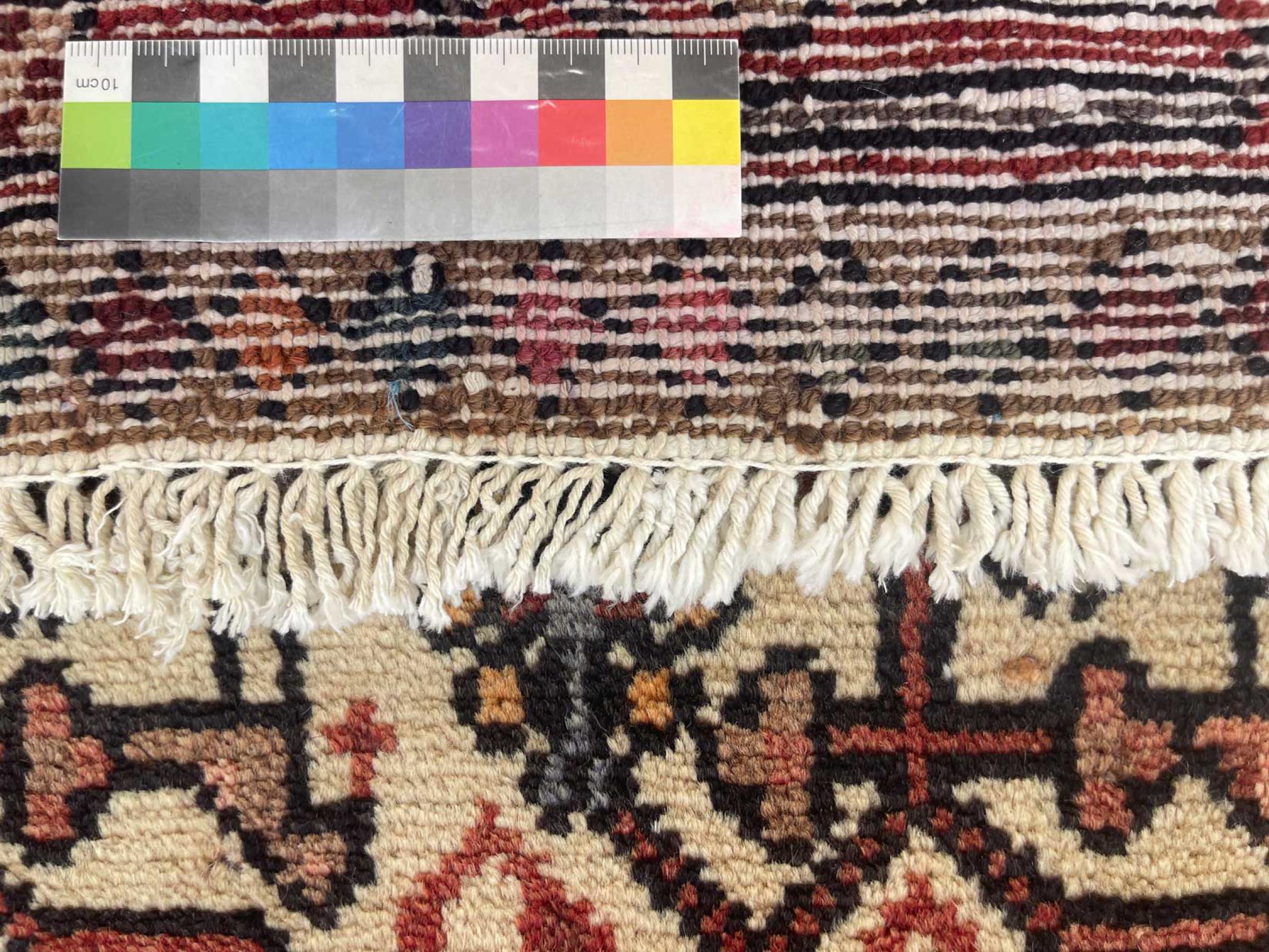 Dieser Teppich gehört zu Dorf- und Nomadenteppichen aus dem Iran, ehemals Persien. Diese Art von Teppich wird in kleineren Städten und Dörfern von Hand in alter Tradition geknüpft. Auch Nomaden knüpfen noch Perserteppiche unter freiem Himmel. Die Teppiche werden ohne Vorlage und komplett aus dem Kopf geknüpft. Sie sind gekennzeichnet durch klassische Ornamente, die in geradlinigen und geometrischen Mustern angelegt sind. Dank ihrer kulturell-traditionellen Herkunft, haben diese Teppiche einen einzigartigen Charakter, der das alte Persien verkörpert.