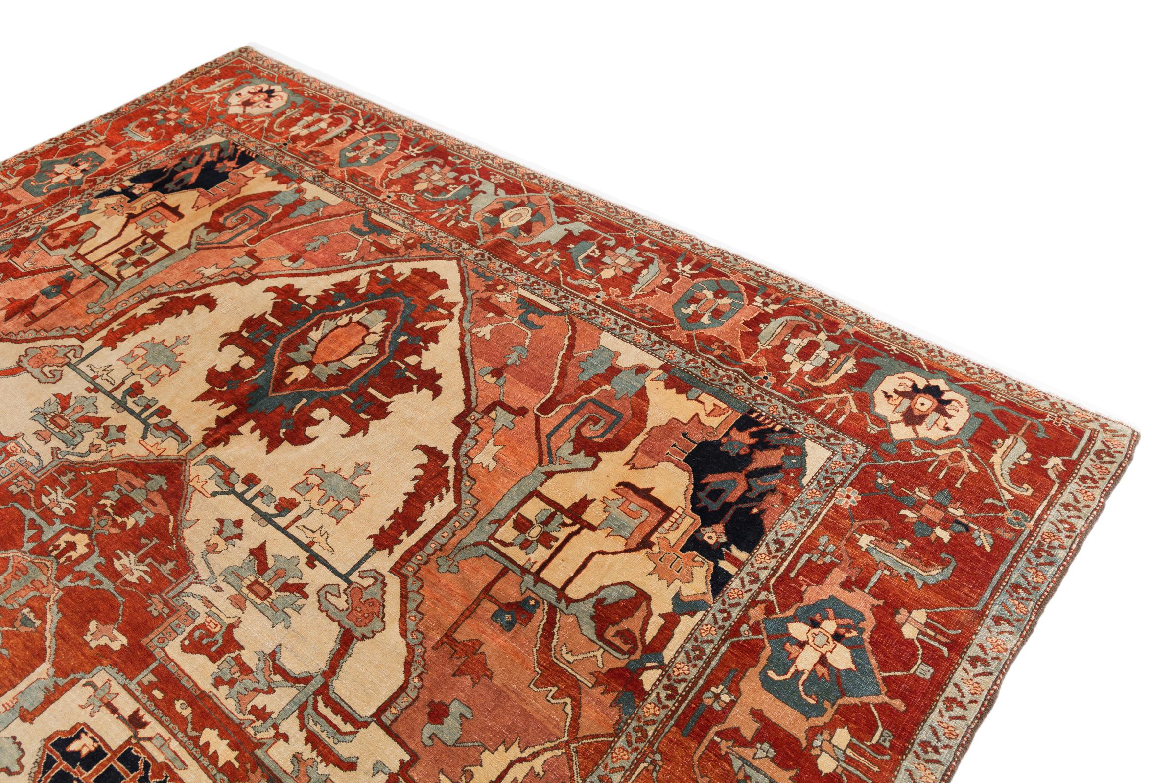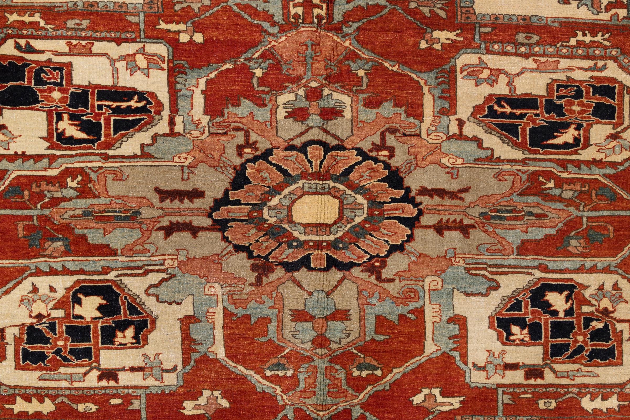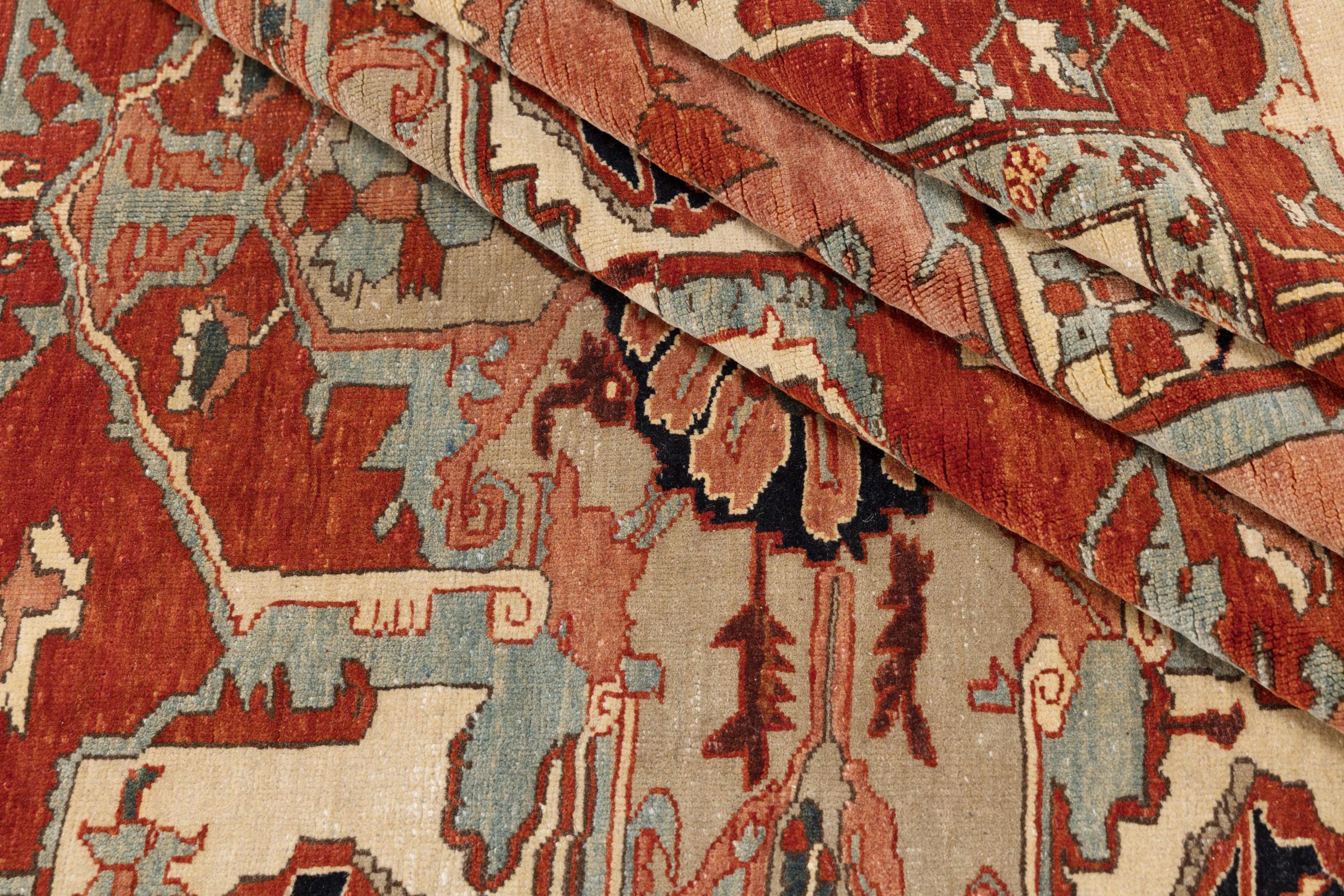 Dieser Heriz-Teppich stellt ein wunderschönes Beispiel persischen Teppichhandwerks dar. Seine rustikale Ausführung zeugt von Haltbarkeit. Er wurde in der Stadt Heriz, die in der Nähe von Täbris im nordwestlichen Iran liegt, handgeknüpft. Wer einen Perserteppich sucht, der lange Freude bereitet und höchst modern ist, wird diesen Heriz lieben. Die Ornamente von Heriz Teppichen sind heute extrem beliebt und werden als sehr modern gesehen. Einen solchen Teppich gibt man nie wieder ab.