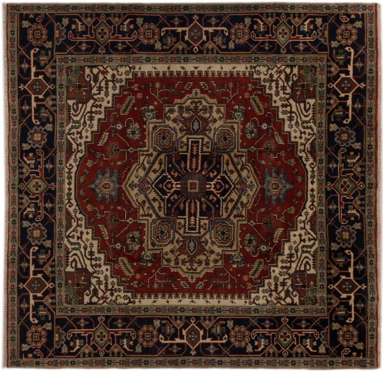 Teppich-Nr.: 267227007825229 Größe: 8'10"x8'11" ft Dicke: ca. 0.59 in Knoten: 46 - 58 / Quadratzoll Verarbeitung: Handgeknüpft Flor: Handgesponnene Wolle Kette: Baumwolle Ursprung: Indien Alter: Neu Gewicht: ca. 79 lb Anzahl auf Lager: Unikat - Nur 1 auf Lager