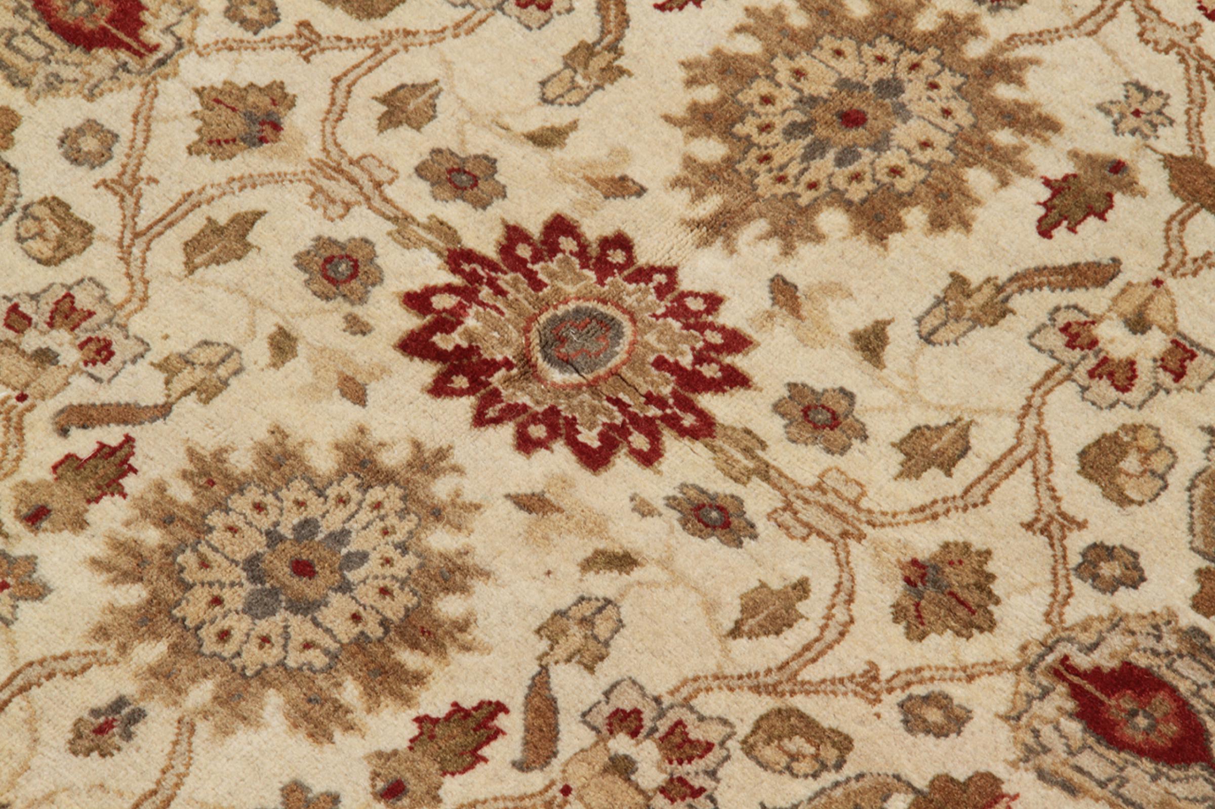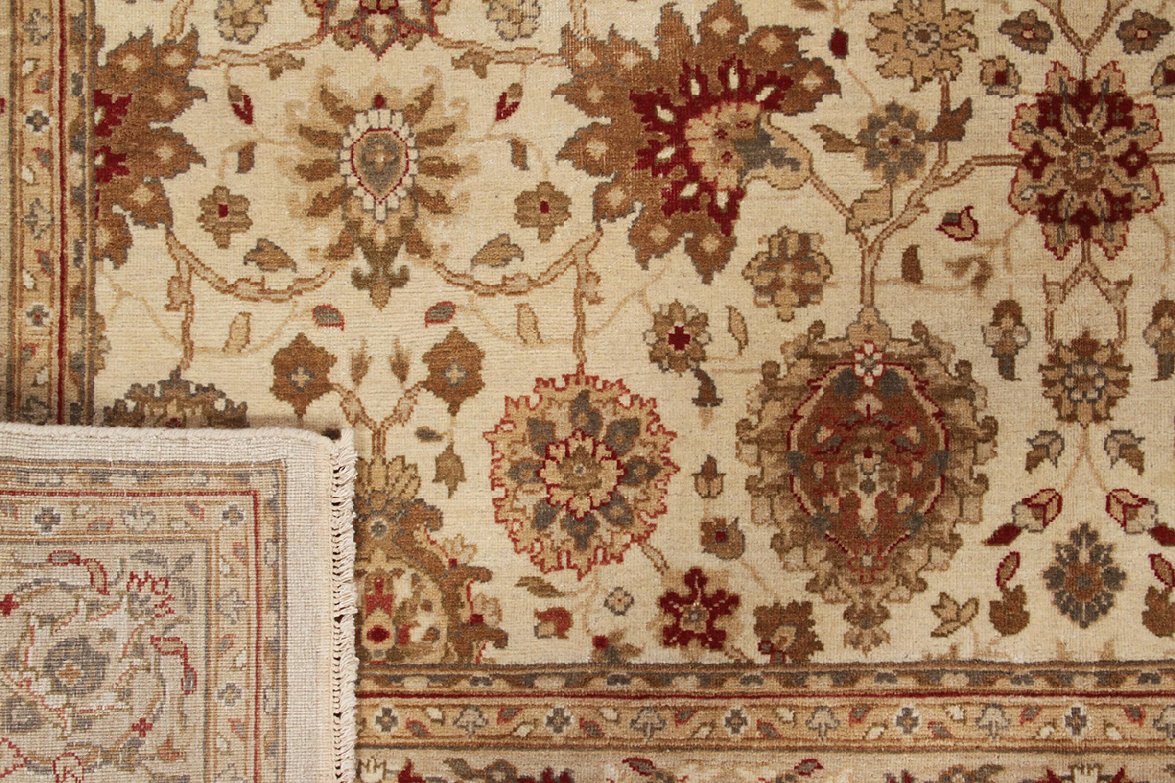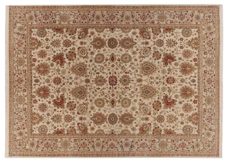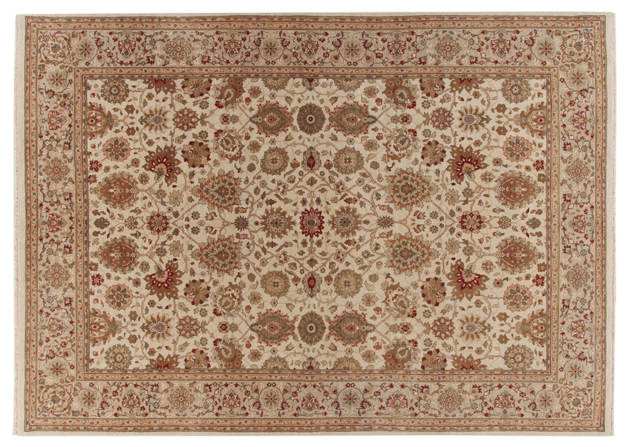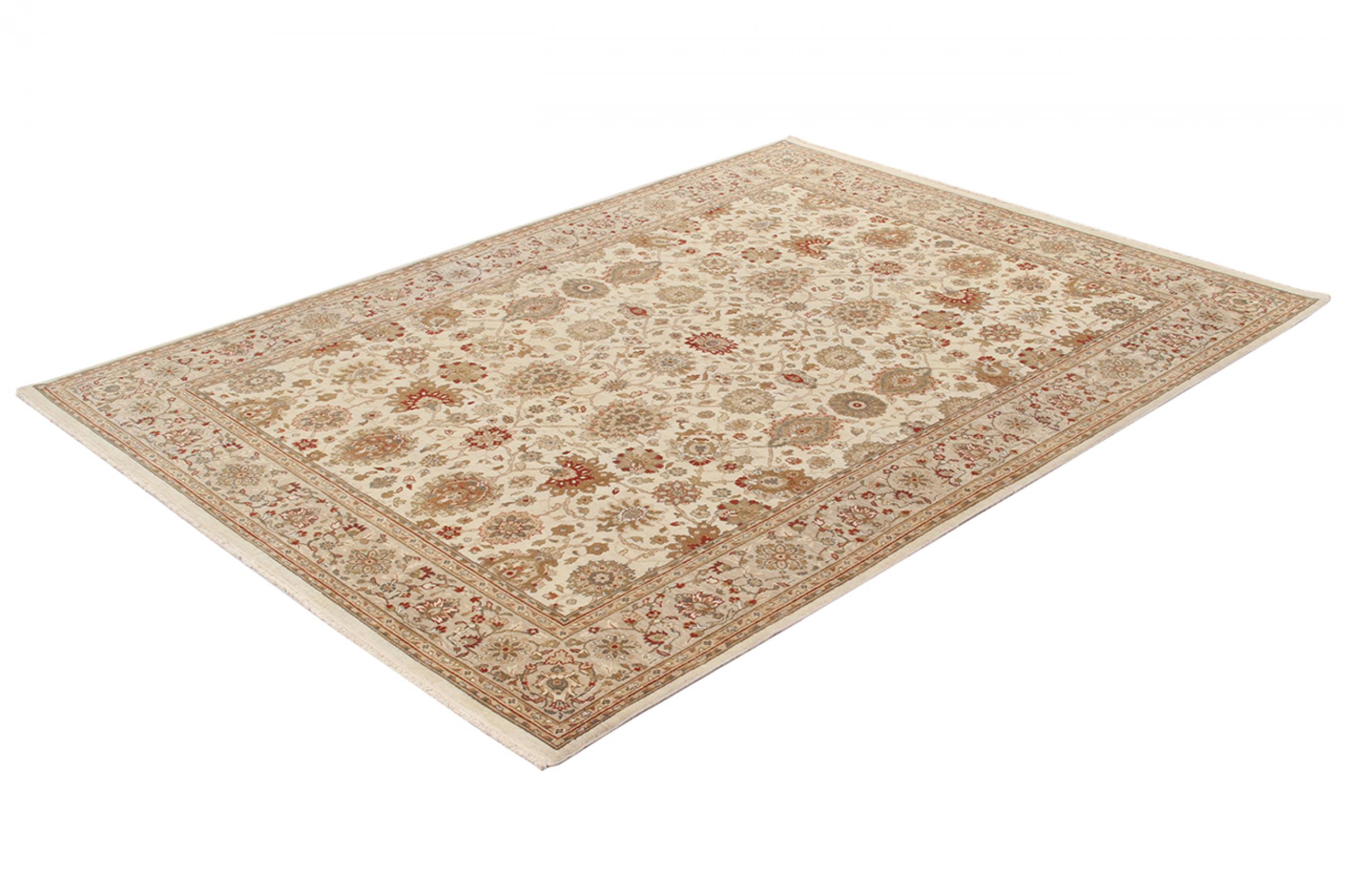 Dieser Indo Tabriz ist ein wunderschönes Exemplar indischen Kunsthandwerks. Von Hand geknüpft und mit hochwertiger Wolle hergestellt, wird er Ihnen über Jahrzehnte treu bleiben. Wie der Name sagt, wurde er den ursprünglichen persischen Tabriz Teppichen nachempfunden. Dieser Teppich ist ein faszinierendes Werk monatelanger Knüpfkunst und Handarbeit.