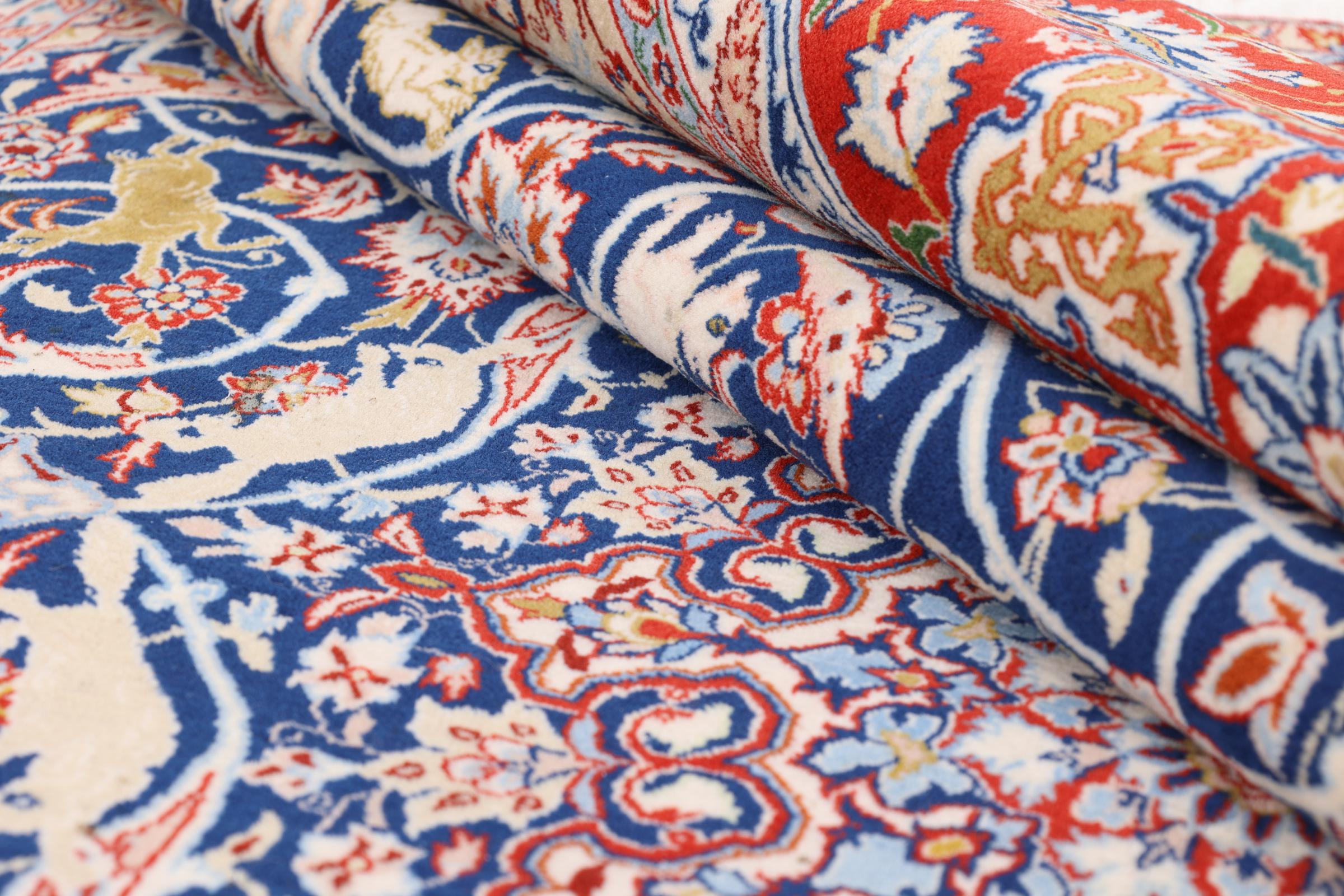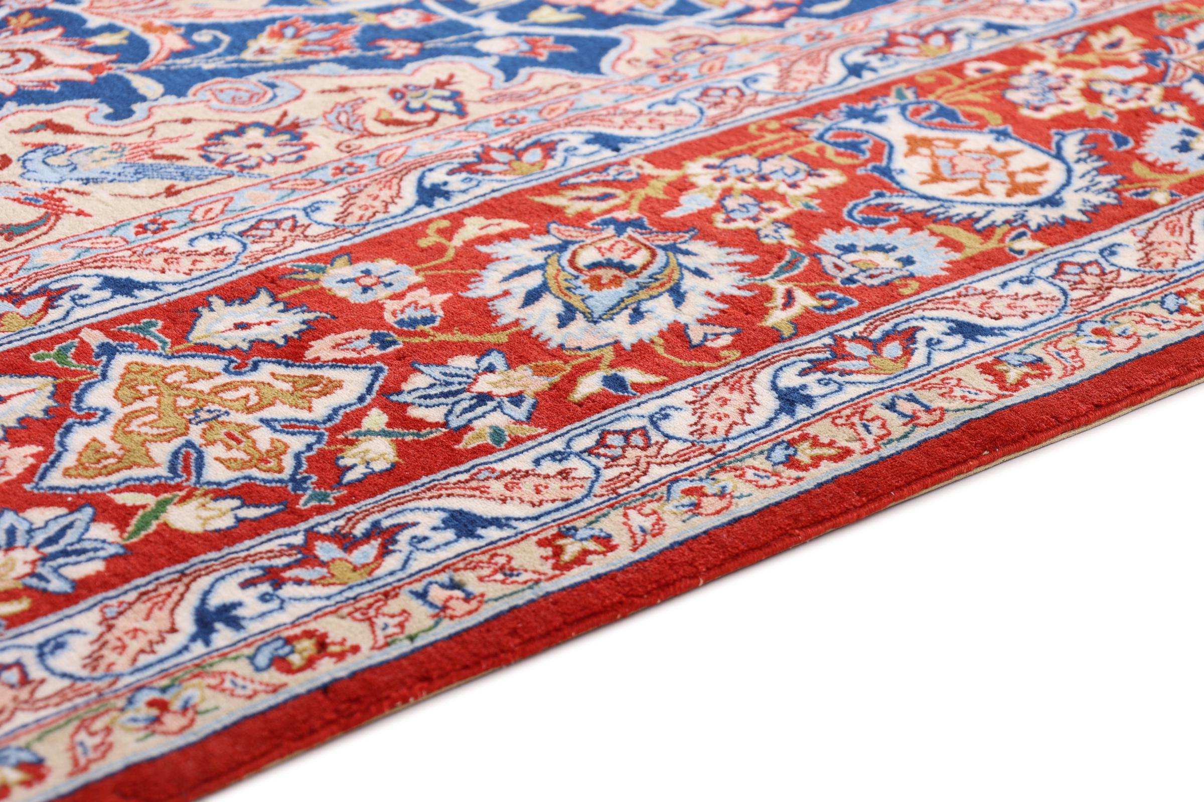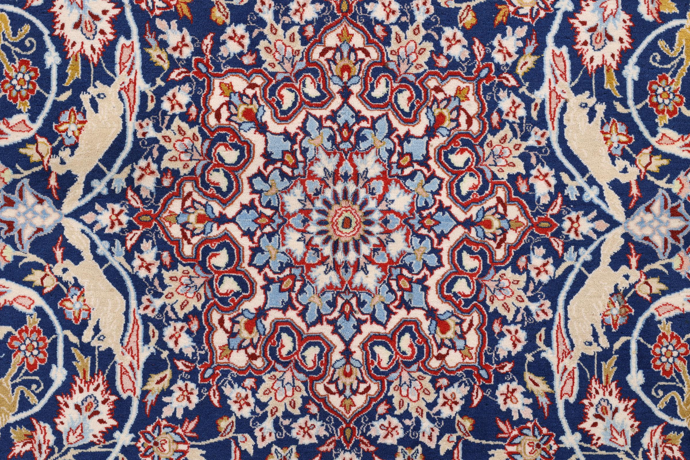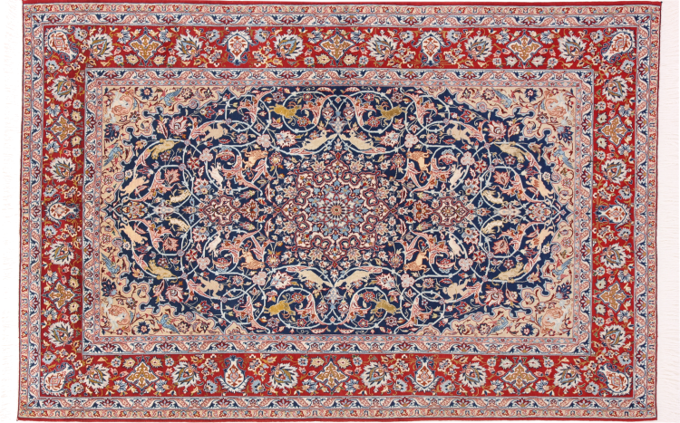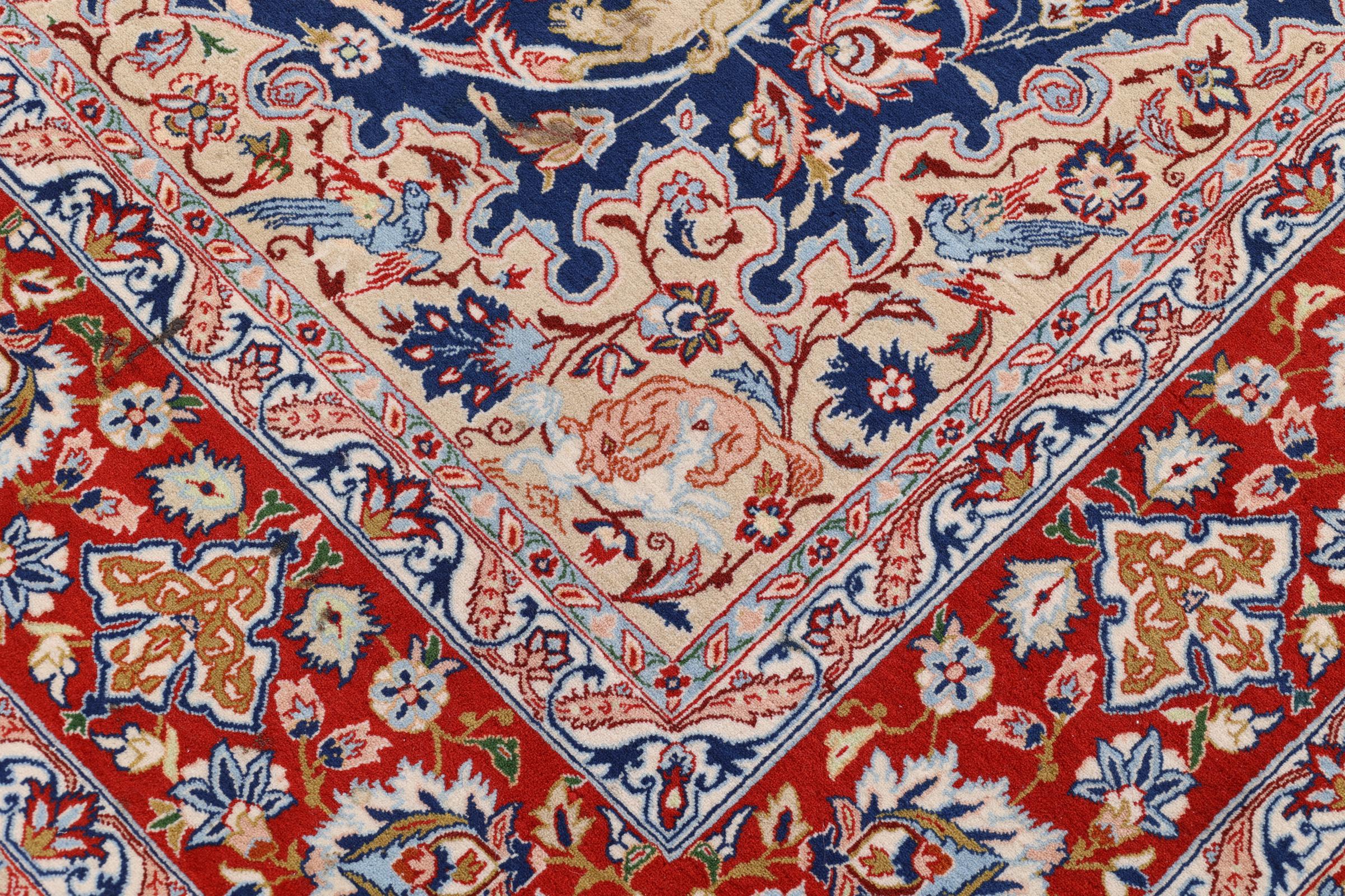 Dieser Isfahan Teppich ist aus traditioneller und höchster Knüpfkunst entstanden. Er wurde meisterlich gefertigt und mit den faszinierenden Ornamenten versehen. Der Perserteppich wurde in Isfahan, der wohl schönsten Stadt im Iran, aus feinstem Garn von Hand geknüpft. Isfahan Teppiche zählen zu den wertvollsten Persern und können eine echte Investition sein.
