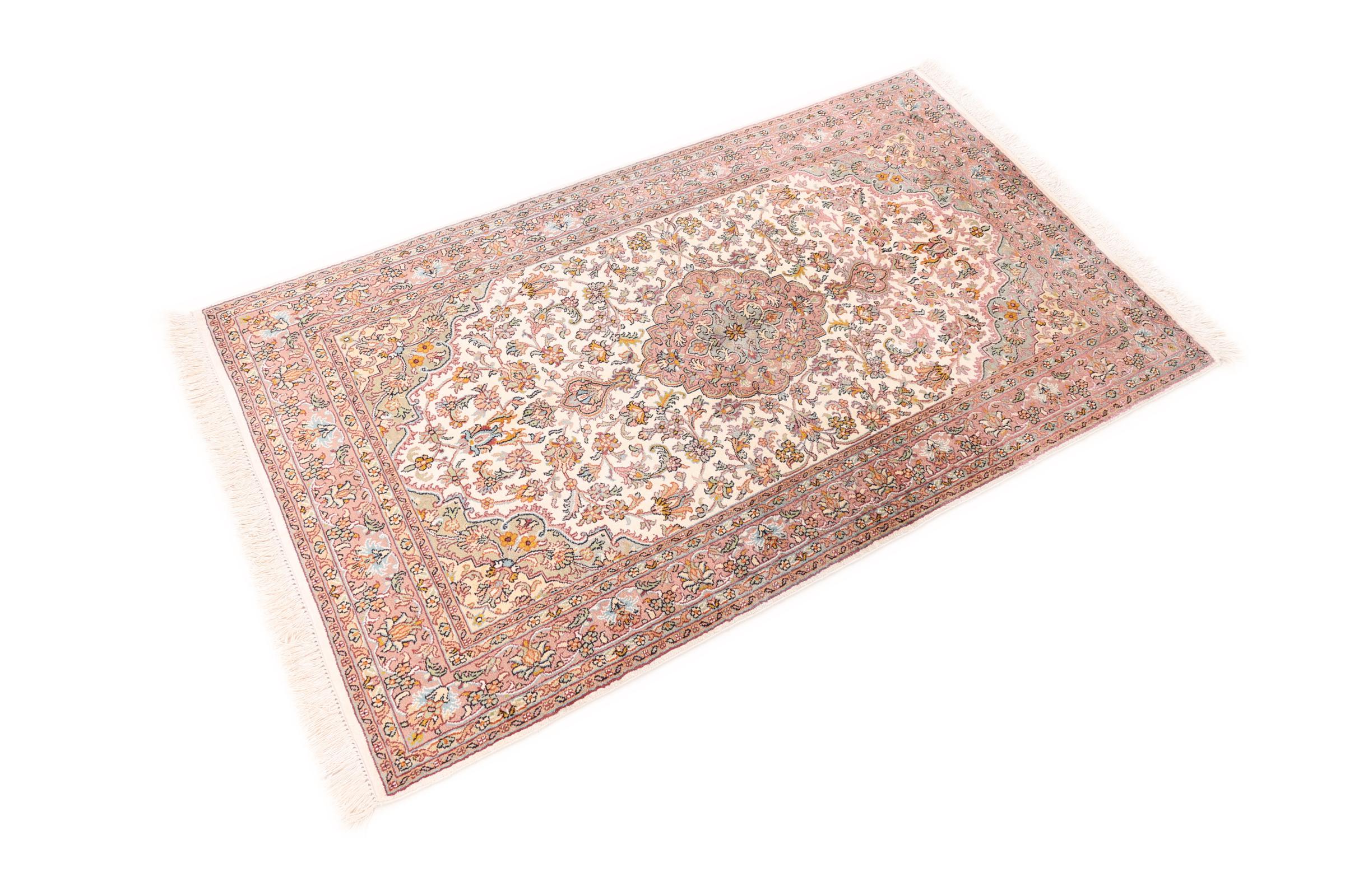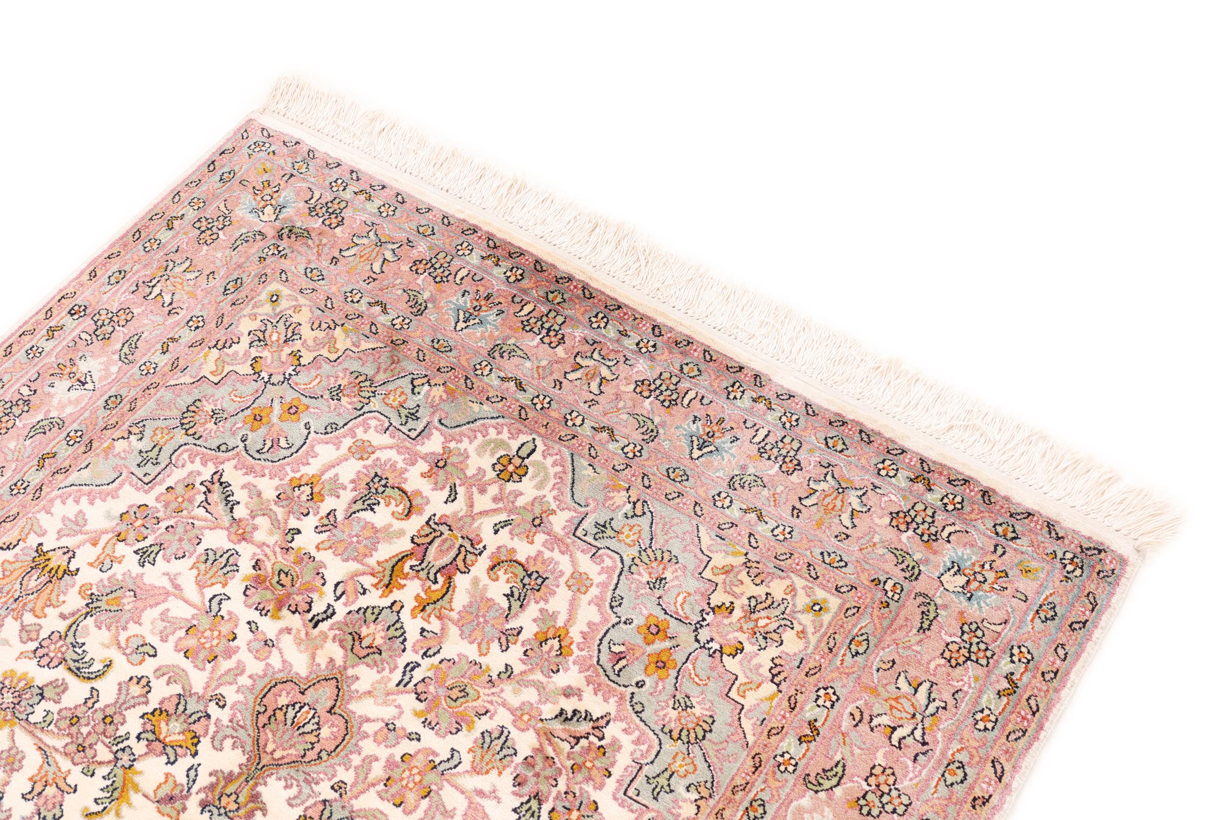 Teppich-Nr.: 210387006272325 Größe: 160x93 cm Dicke: ca. 5 mm Knoten: 640 000 / m² Verarbeitung: Handgeknüpft Flor: Seide Kette: Baumwolle Ursprung: Indien Alter: Neu Gewicht: ca. 4 kg Anzahl auf Lager: Unikat - Nur 1 auf Lager