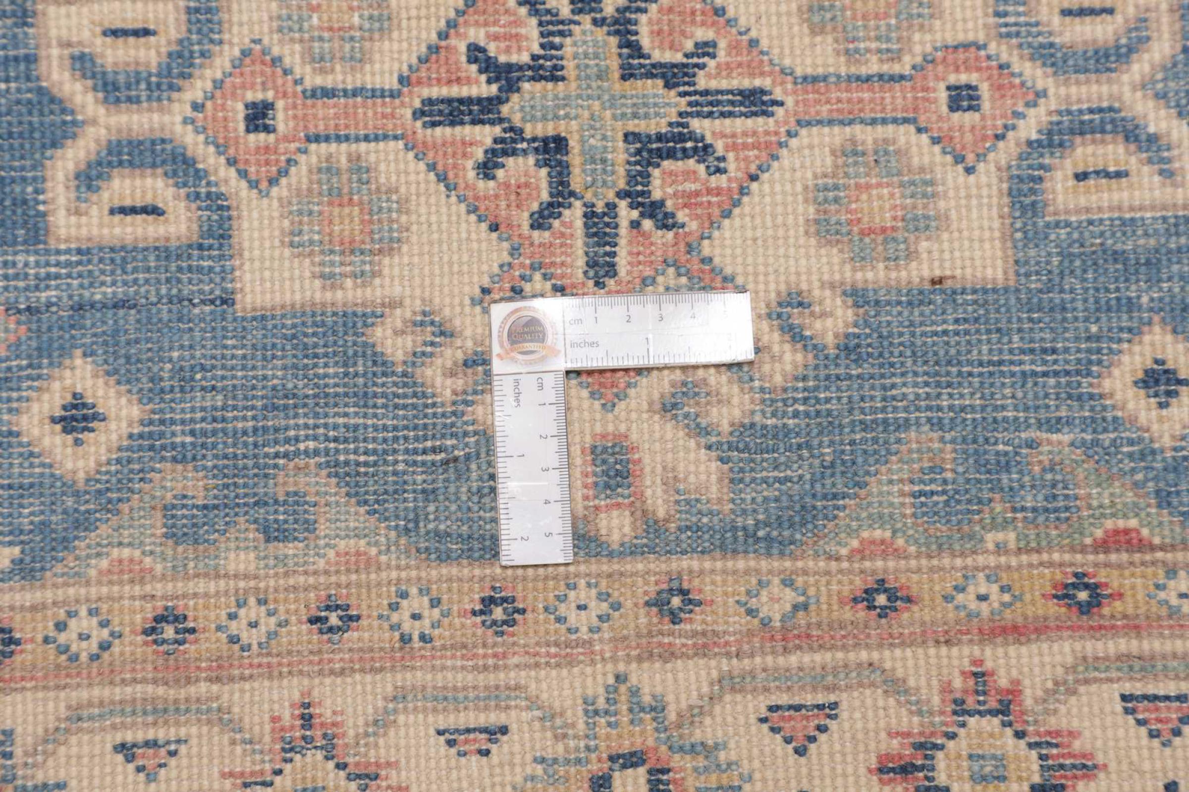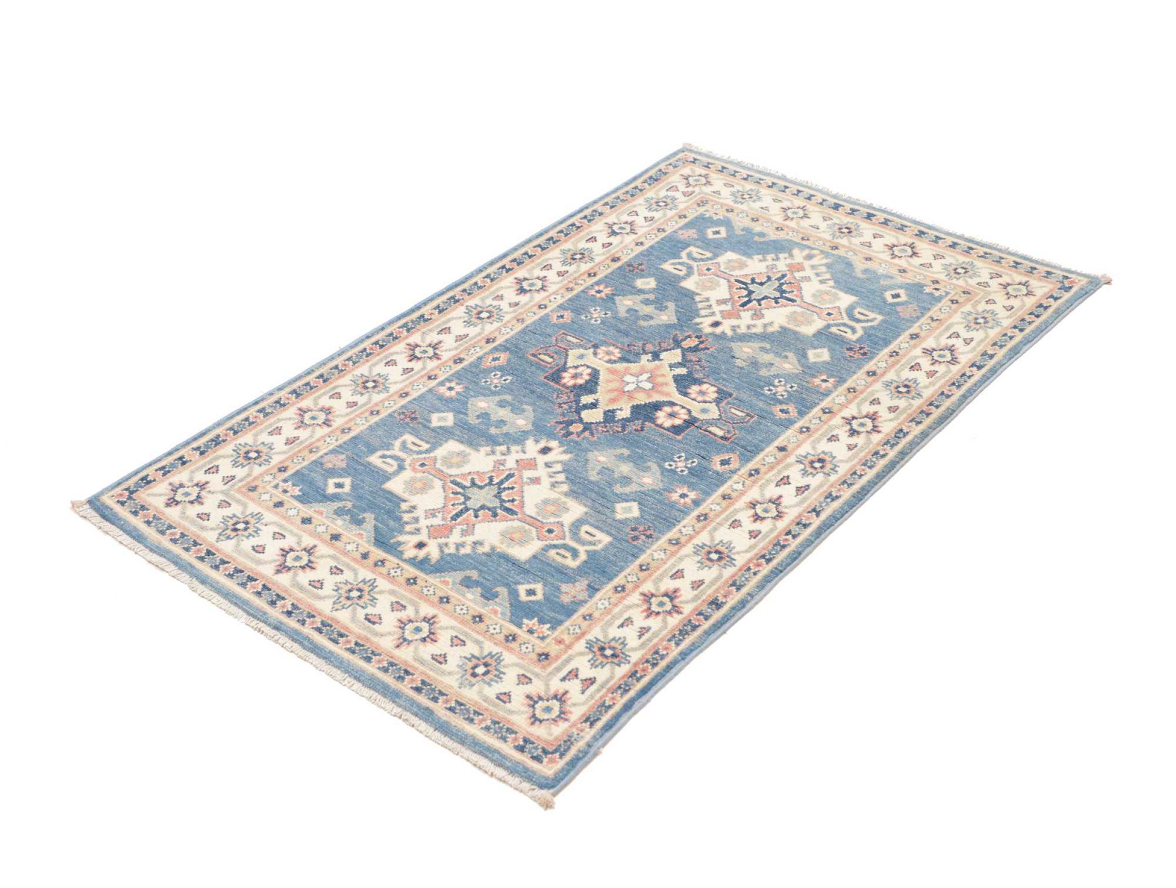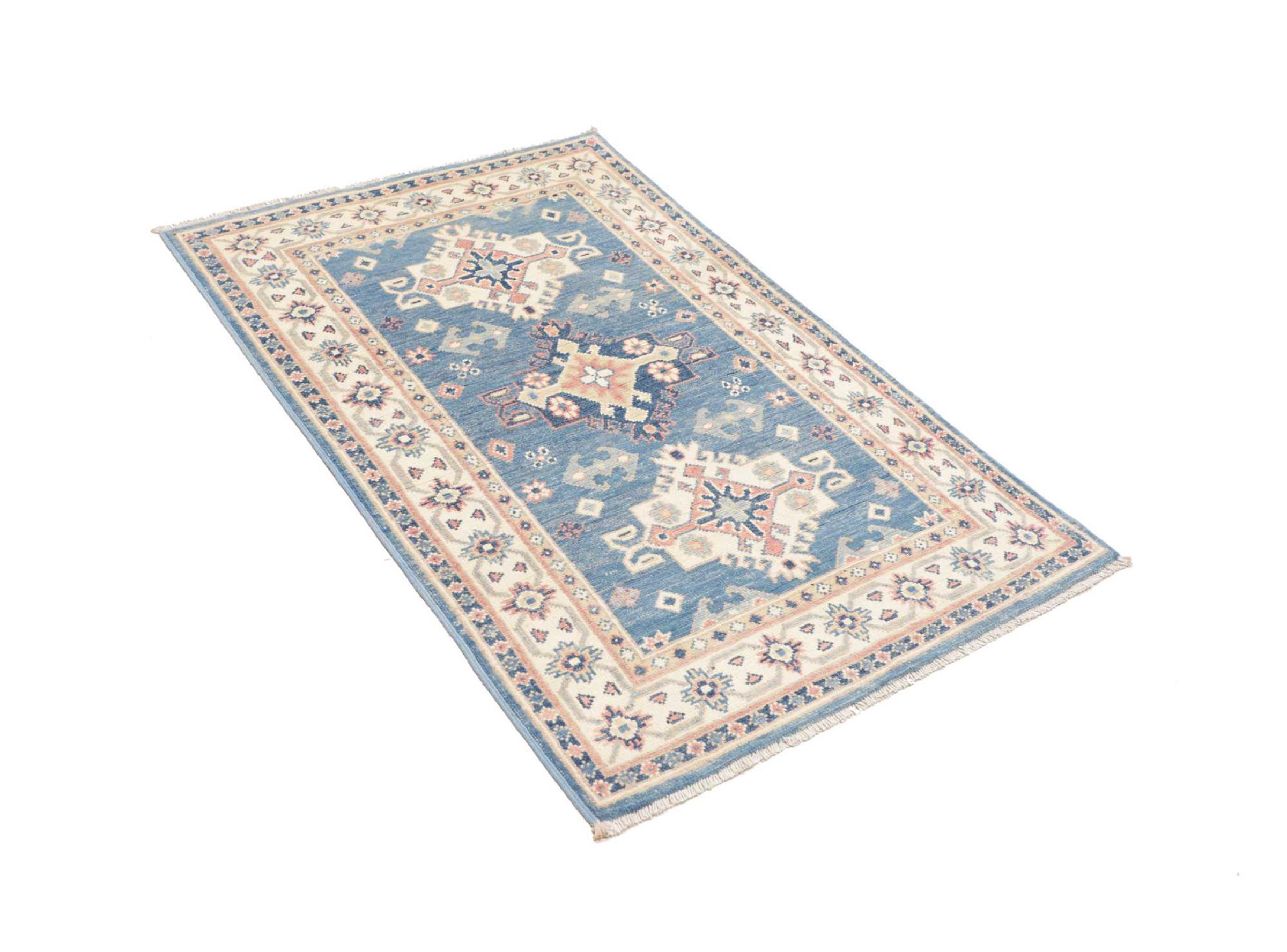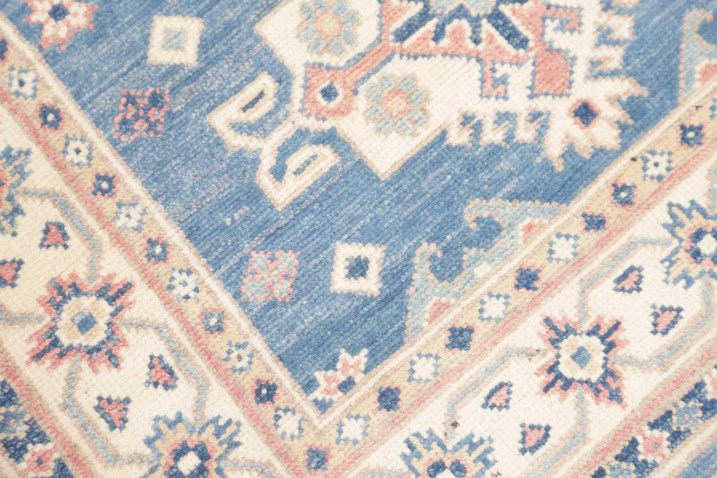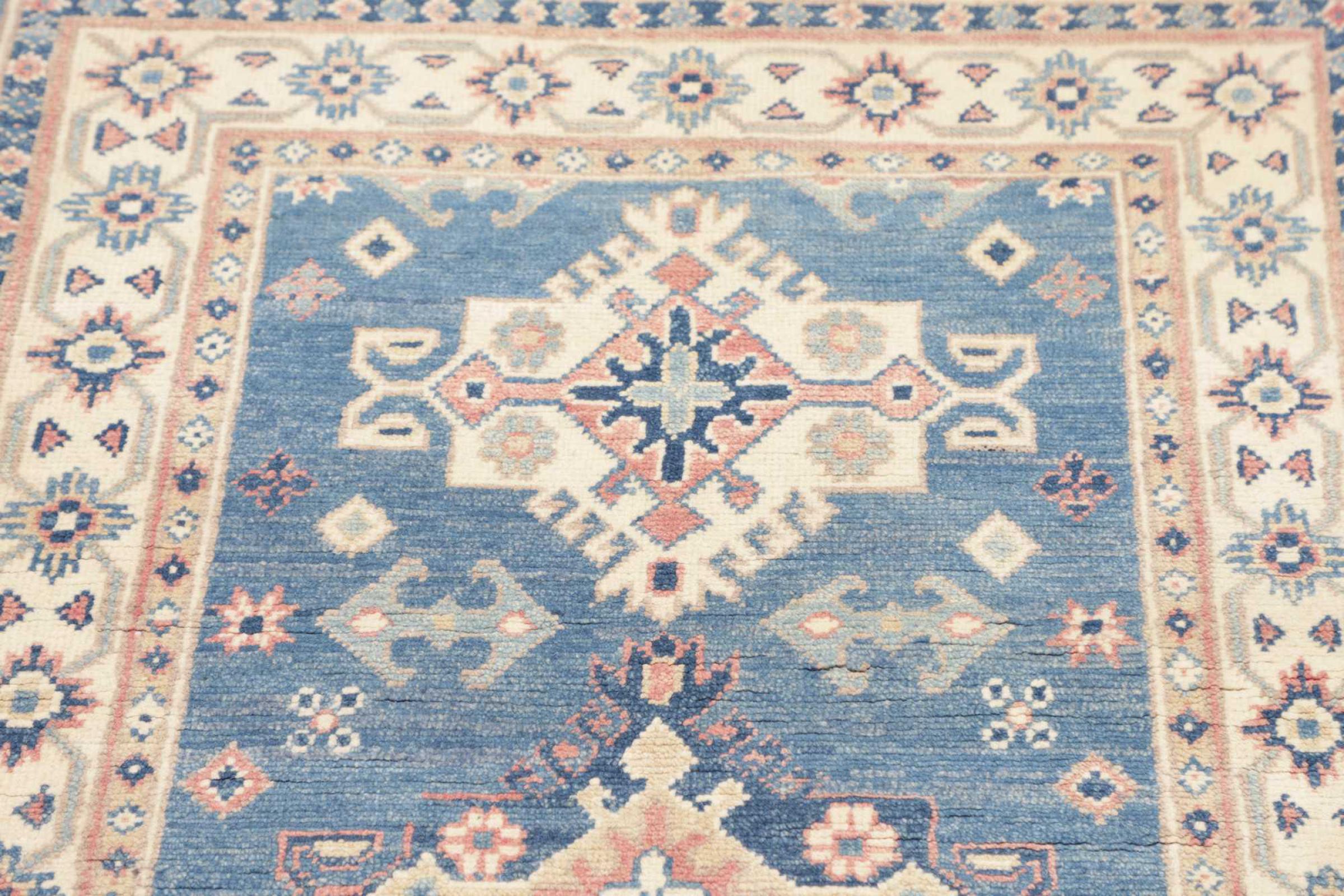 Dieser handgeknüpfte Kazak wurde im Stil der Kaukasus Teppiche von Hand geknüpft und überzeugt mit seiner hohen Robustheit und seinen lebhaften Farbtönen. Somit spiegelt er die Kultur des Kaukasus in einer wunderschönen Komposition wider. Eine Kultur, die seit Jahrhunderten die Kunst des Teppichknüpfens beherrscht und mit reizvoll schlichten Formen in beeindruckend lebendigen Farben nach Außen trägt.