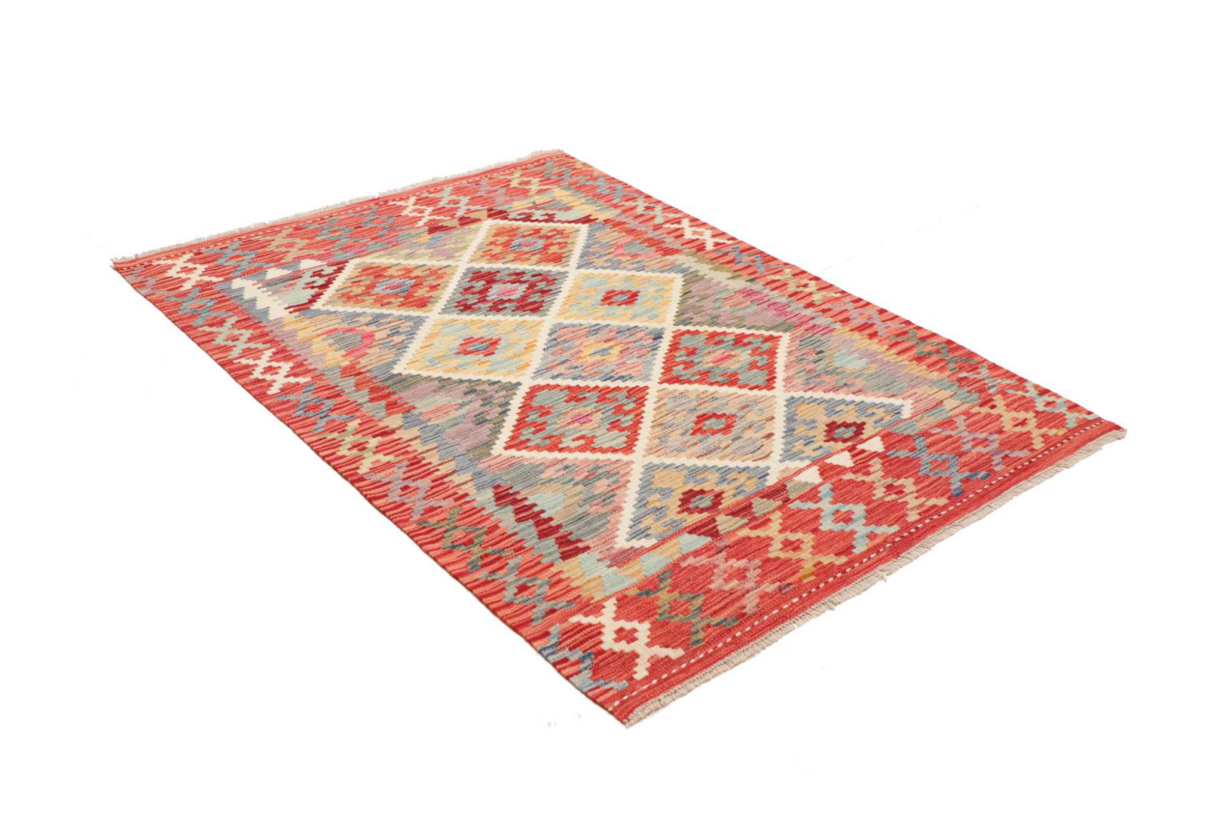 Diese Kelim Teppiche weisen einen entscheidenden Unterschied zu handgeknüpften Teppichen auf - sie werden von Hand gewebt. So besitzen sie keinen hochstehenden Flor aus Wolle und sind oft flacher und rauer als geknüpfte Wollteppiche. Ihre Machart ist weniger aufwändig und so sind sie in der Regel auf deutlich kostengünstiger. Als Vorteil sind Kelim Teppiche zudem viel leichter und können von der Vorder- und Rückseite ausgelegt werden. Handgewebte Kelims stammen ursprünglich aus dem ehemaligen Persien und werden heute auch viel in Afghanistan gefertigt. Sie haben eher schlichte geradlinige Muster, die durch ihre Webtechnik bedingt sind.