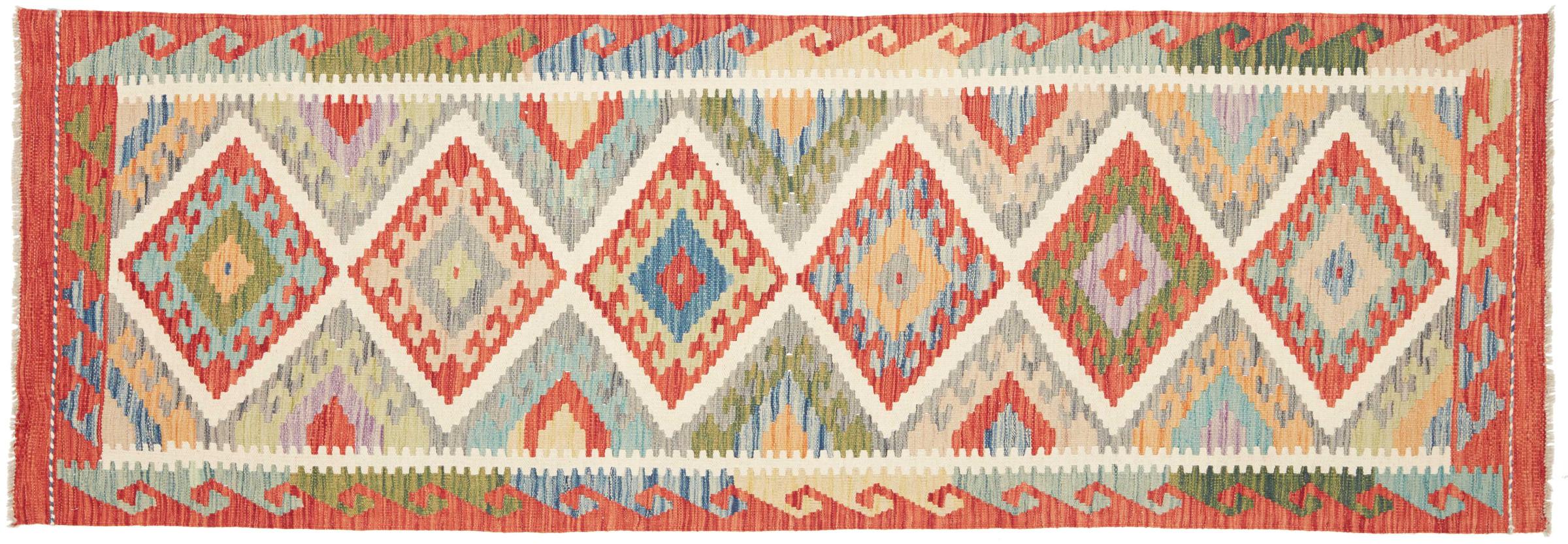 Dieser handgewebte Kelim Afghan ist dank der facettenreichen Farben und des typischen Musters wunderschön. Er wurde in Afghanistan aus 100% Schafswolle von Hand gewebt. Robuster und langlebiger als maschinell produzierte Teppiche ist er dadurch ohne Zweifel. Zudem besitzt dieser Kelim einen ganz eigenen Charakter. Ein Unikat für Sie und ihr Zuhause, das Sie genau so nicht wieder finden werden.