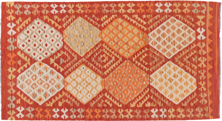 Diese Kelim Teppiche weisen einen entscheidenden Unterschied zu handgeknüpften Teppichen auf - sie werden von Hand gewebt. So besitzen sie keinen hochstehenden Flor aus Wolle und sind oft flacher und rauer als geknüpfte Wollteppiche. Ihre Machart ist weniger aufwändig und so sind sie in der Regel auf deutlich kostengünstiger. Als Vorteil sind Kelim Teppiche zudem viel leichter und können von der Vorder- und Rückseite ausgelegt werden. Handgewebte Kelims stammen ursprünglich aus dem ehemaligen Persien und werden heute auch viel in Afghanistan gefertigt. Sie haben eher schlichte geradlinige Muster, die durch ihre Webtechnik bedingt sind.