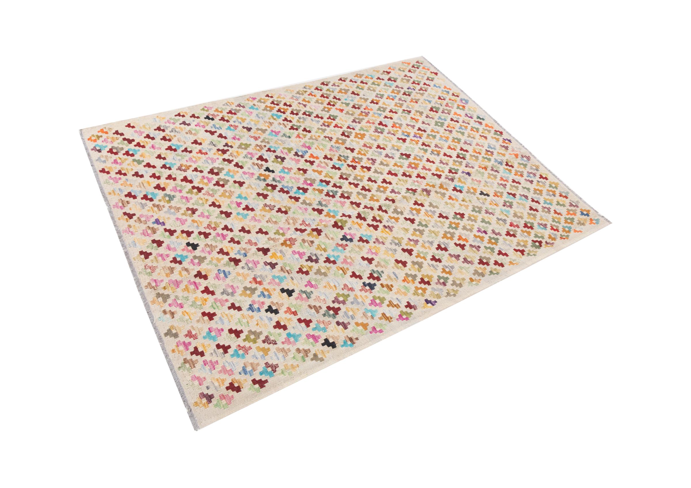 Dieser Kelim Teppich ist ganz besonders, denn er wurde nicht nur von Hand gewebt, sondern seine Wolle wurde auch von Hand gesponnen. Die Kelim Heritage Kollektion bietet ein höchst modernes Design in Pastellfarben und in Kombination mit dem traditionellsten Kunsthandwerk aus dem Orient. Von hohem Wert und absolut erschwinglich. Ein solches Einzelstück finden Sie in der Art nicht wieder.