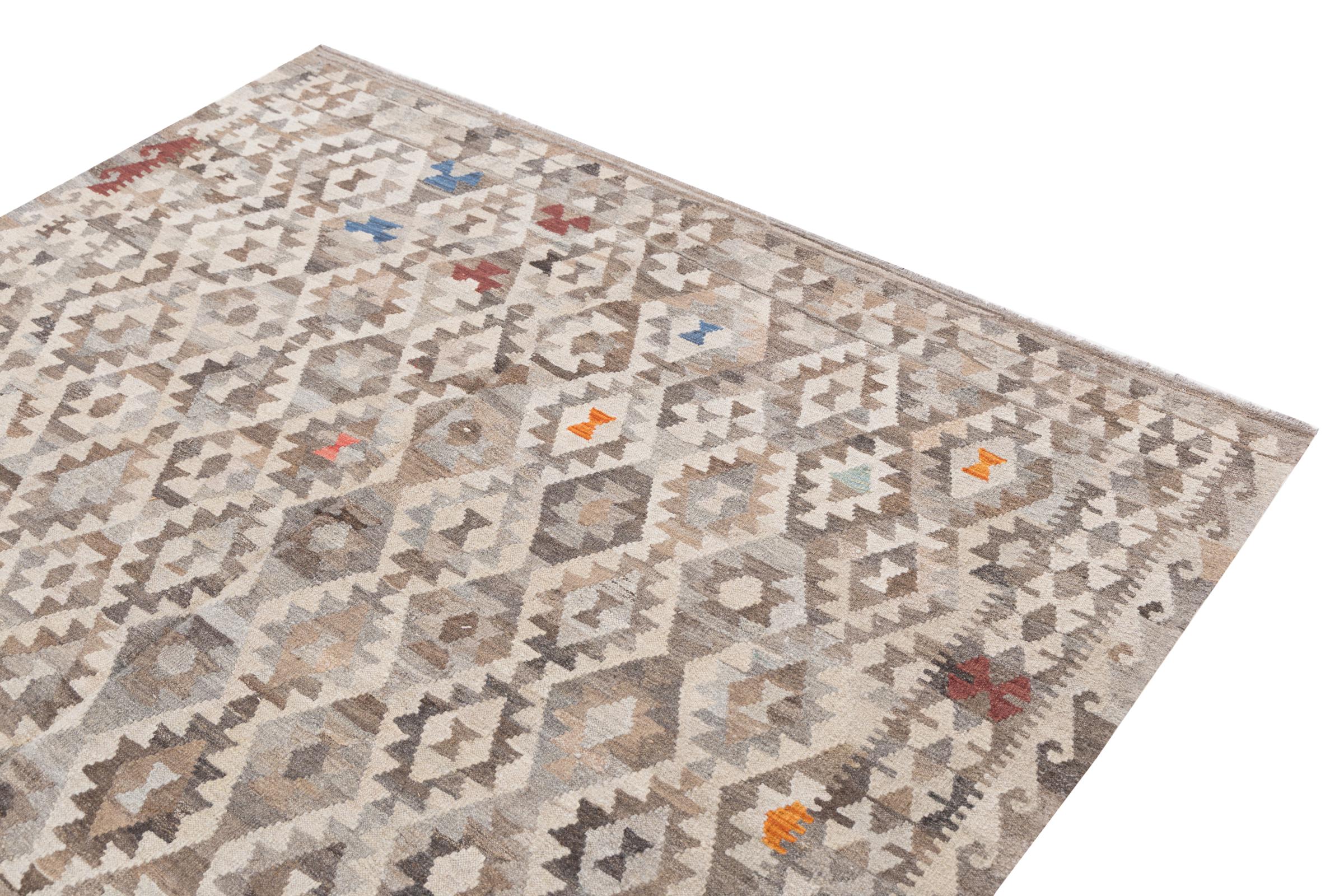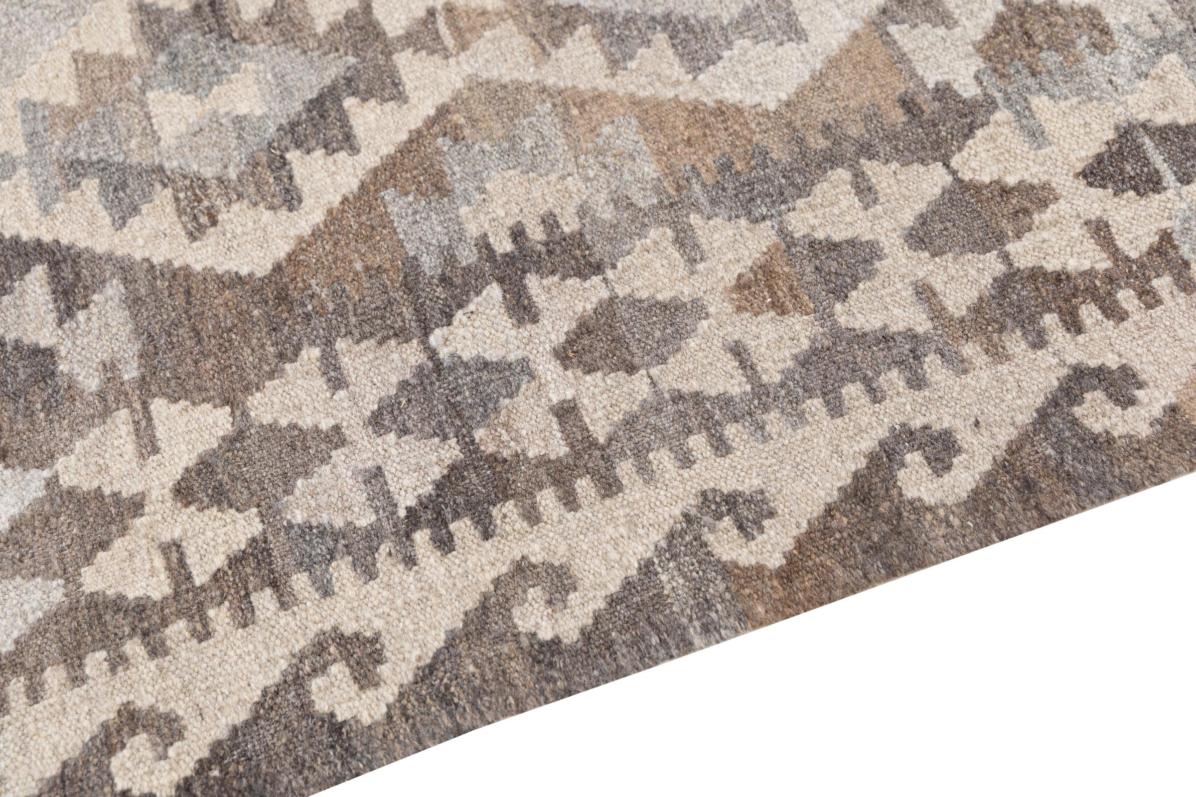 Dieser Kelim Teppich ist ganz besonders, denn er wurde nicht nur von Hand gewebt, sondern seine Wolle wurde auch von Hand gesponnen. Die Kelim Heritage Kollektion bietet ein höchst modernes Design in Pastellfarben und in Kombination mit dem traditionellsten Kunsthandwerk aus dem Orient. Von hohem Wert und absolut erschwinglich. Ein solches Einzelstück finden Sie in der Art nicht wieder.