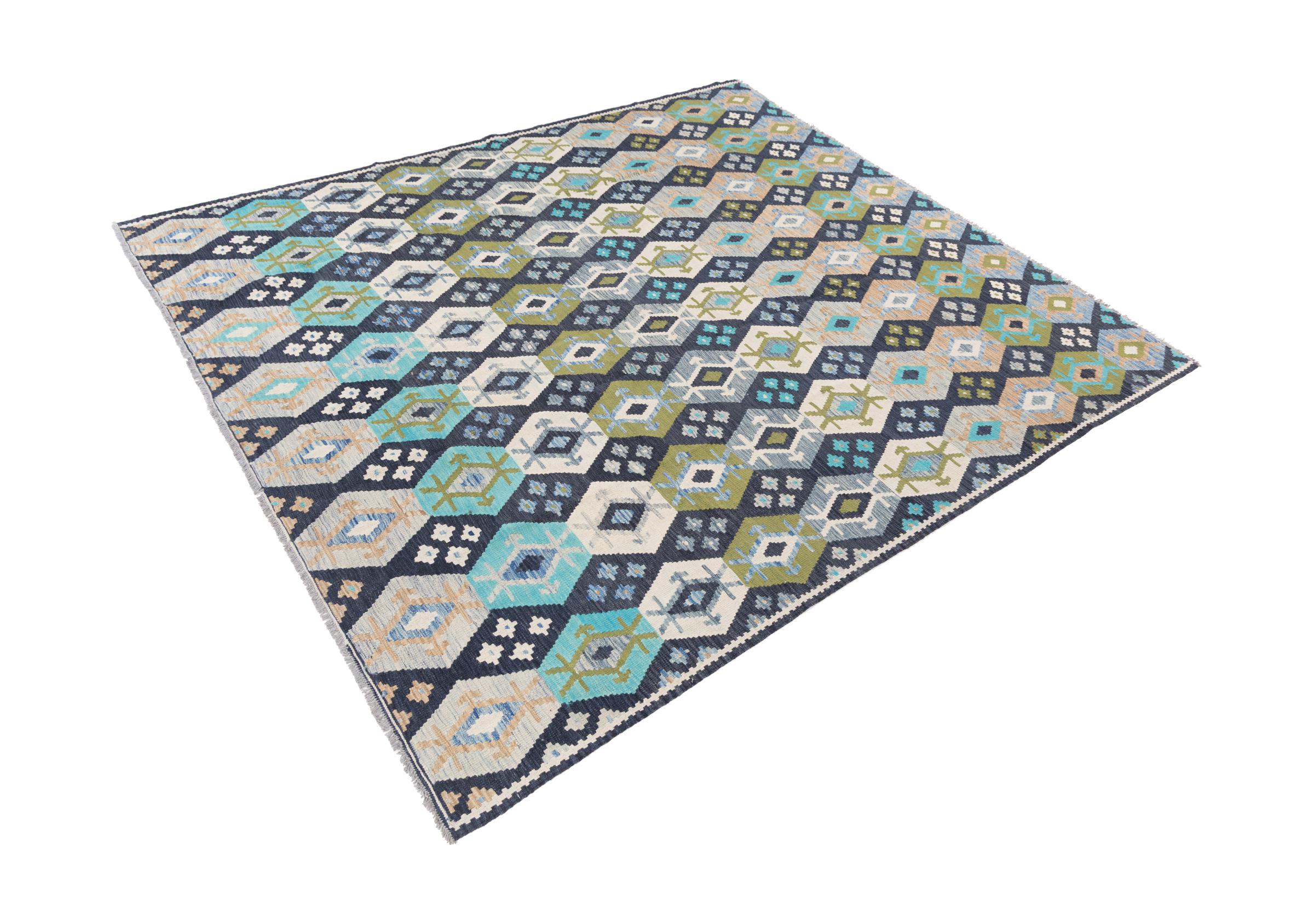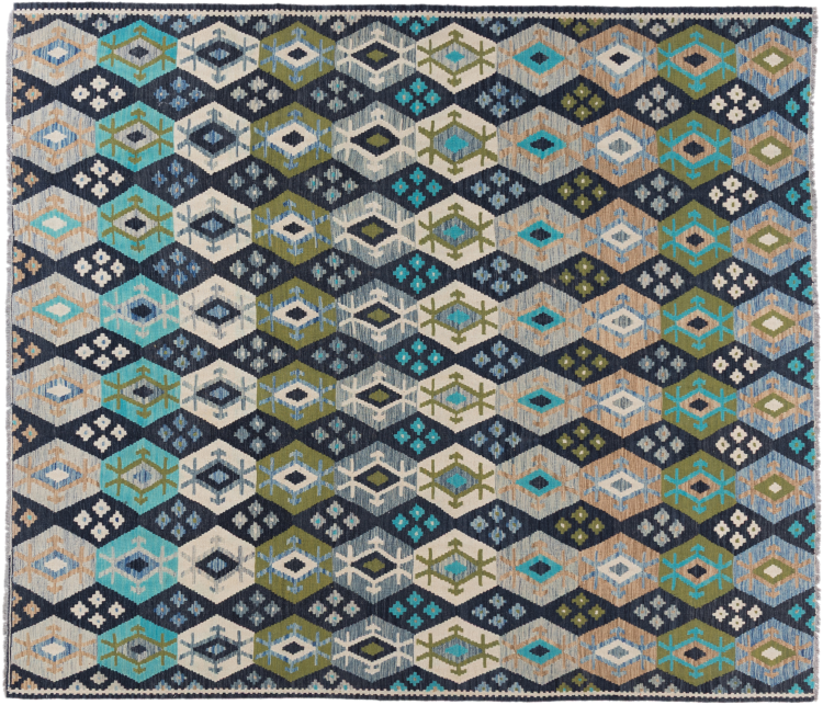 Teppich-Nr.: 2950290050816 Größe: 9'8"x8'5" ft Dicke: ca. 0.12 in Verarbeitung: Handgewebt Flor: Handgesponnene Wolle Kette: Natürliche Wolle Ursprung: Afghanistan Alter: Neu Gewicht: ca. 24 lb Auch bekannt als Kilim, Qilim, Chilim, Afgan, Afghán Anzahl auf Lager: Unikat - Nur 1 auf Lager